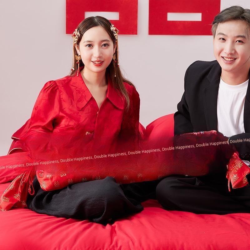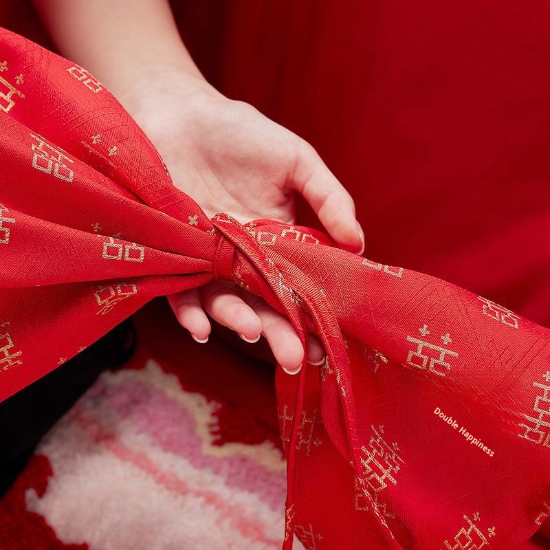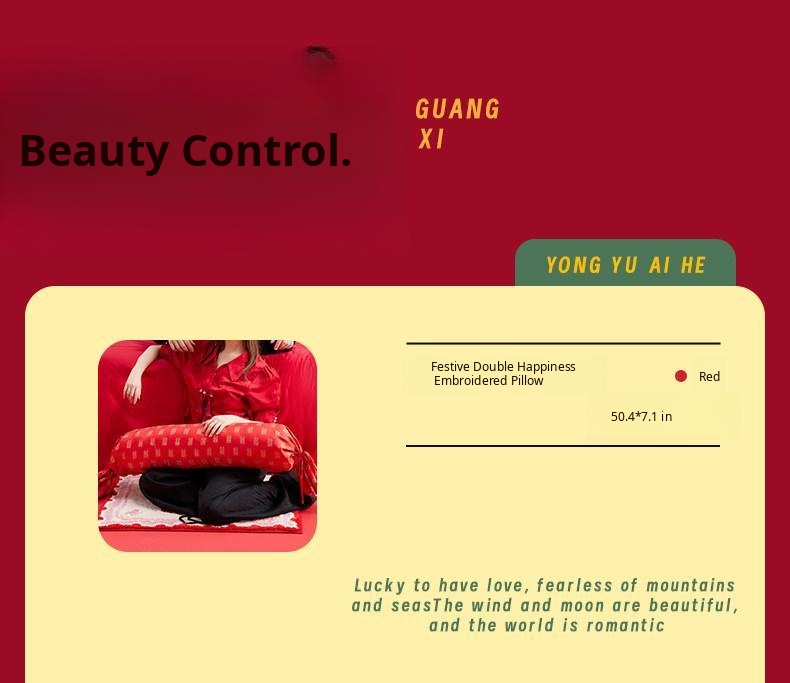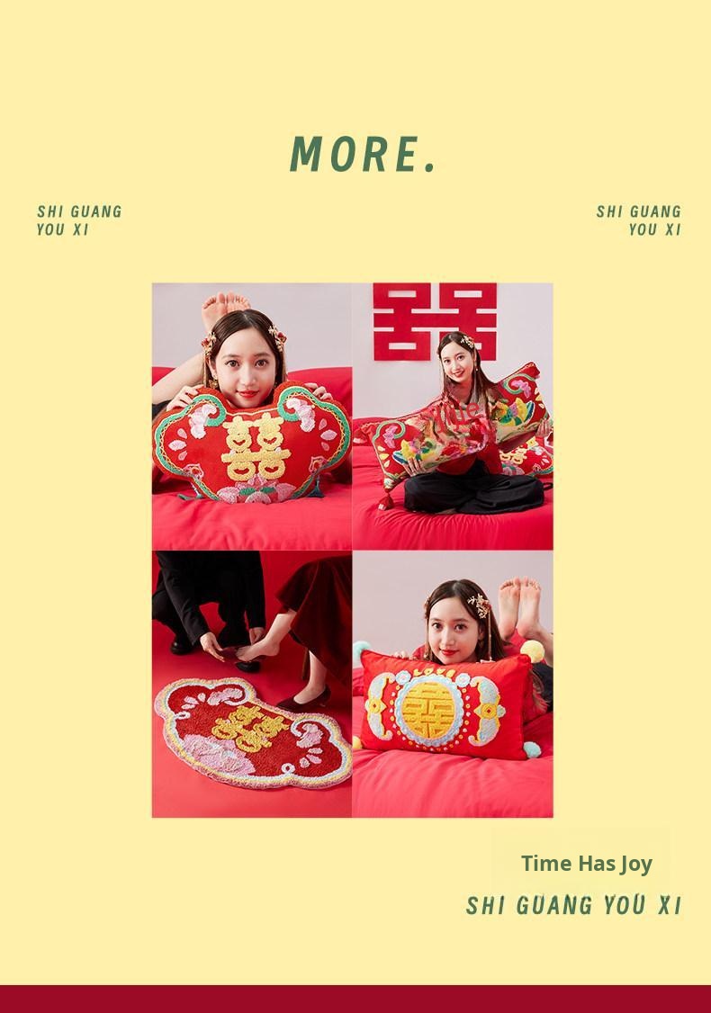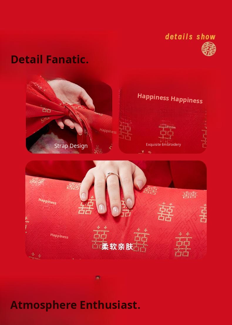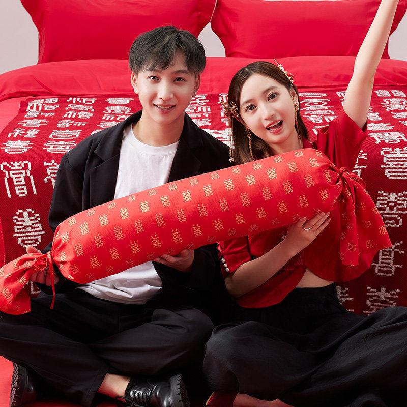Traditional Chinese Style Festive Red Long Pillow Cover - Perfect for Wedding Decor, Bed Atmosphere, and Sofa Cushion with Double Happiness Emblem