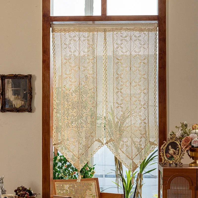 アメリカンカントリー風 2026年新作 半カーテン 軽やかで高級感溢れるレースファブリック リビングルーム用仕切りカーテン 家庭用窓カーテン