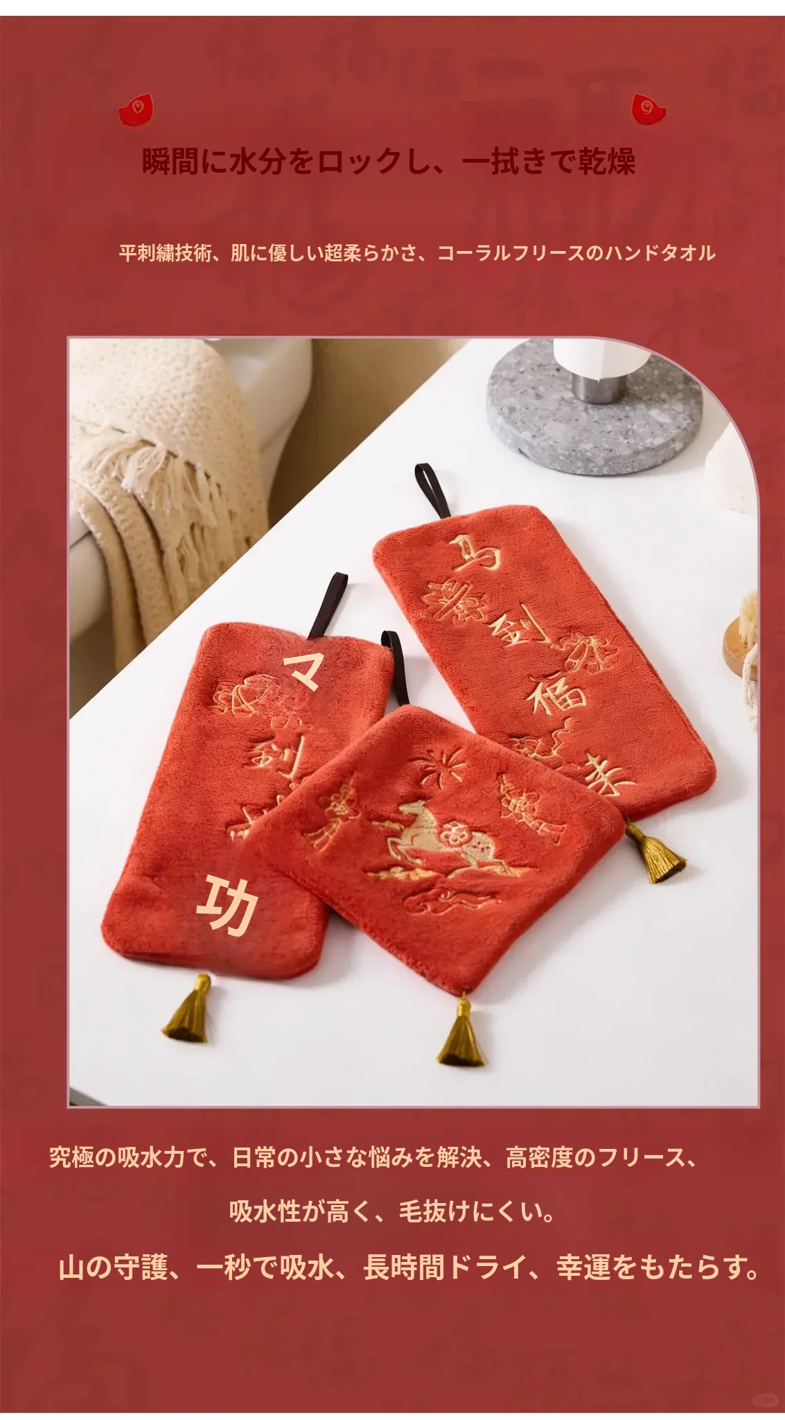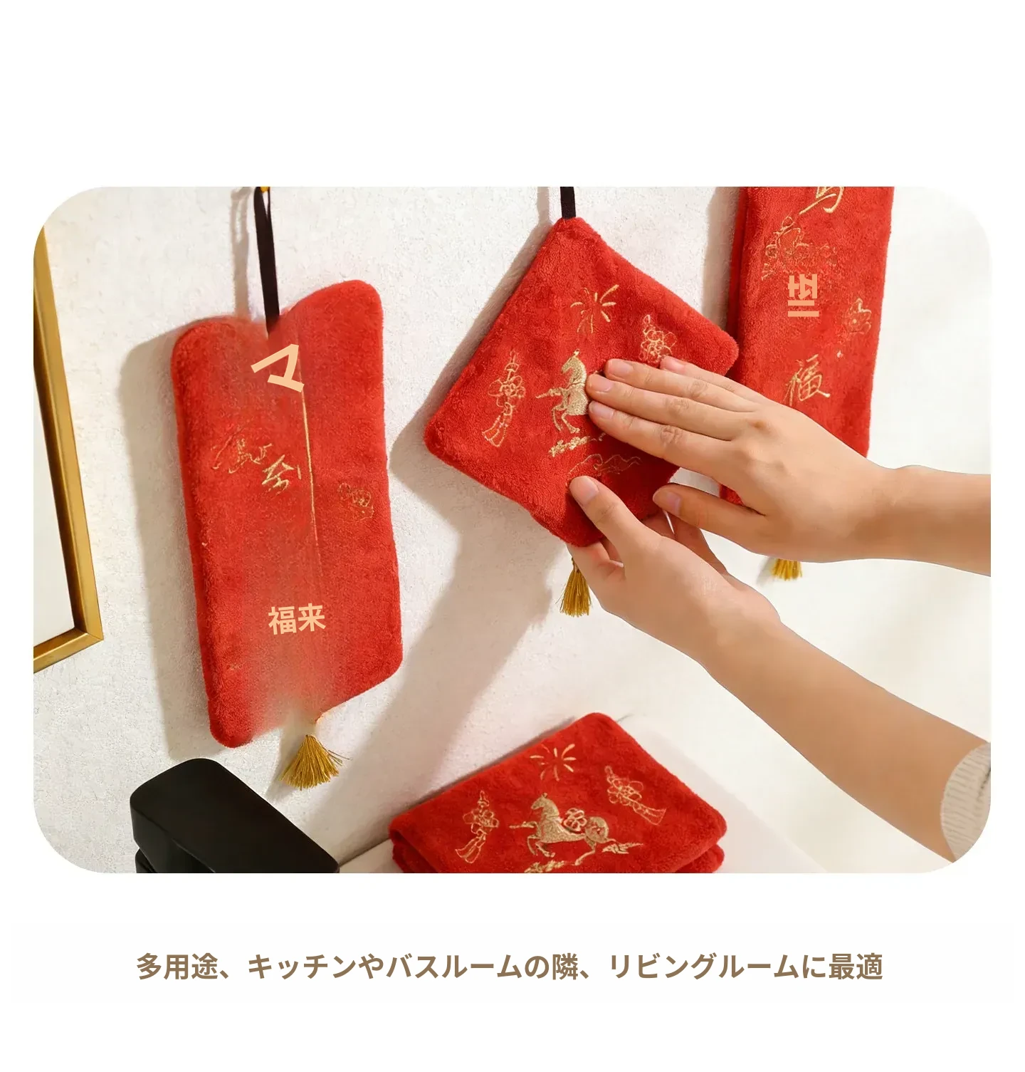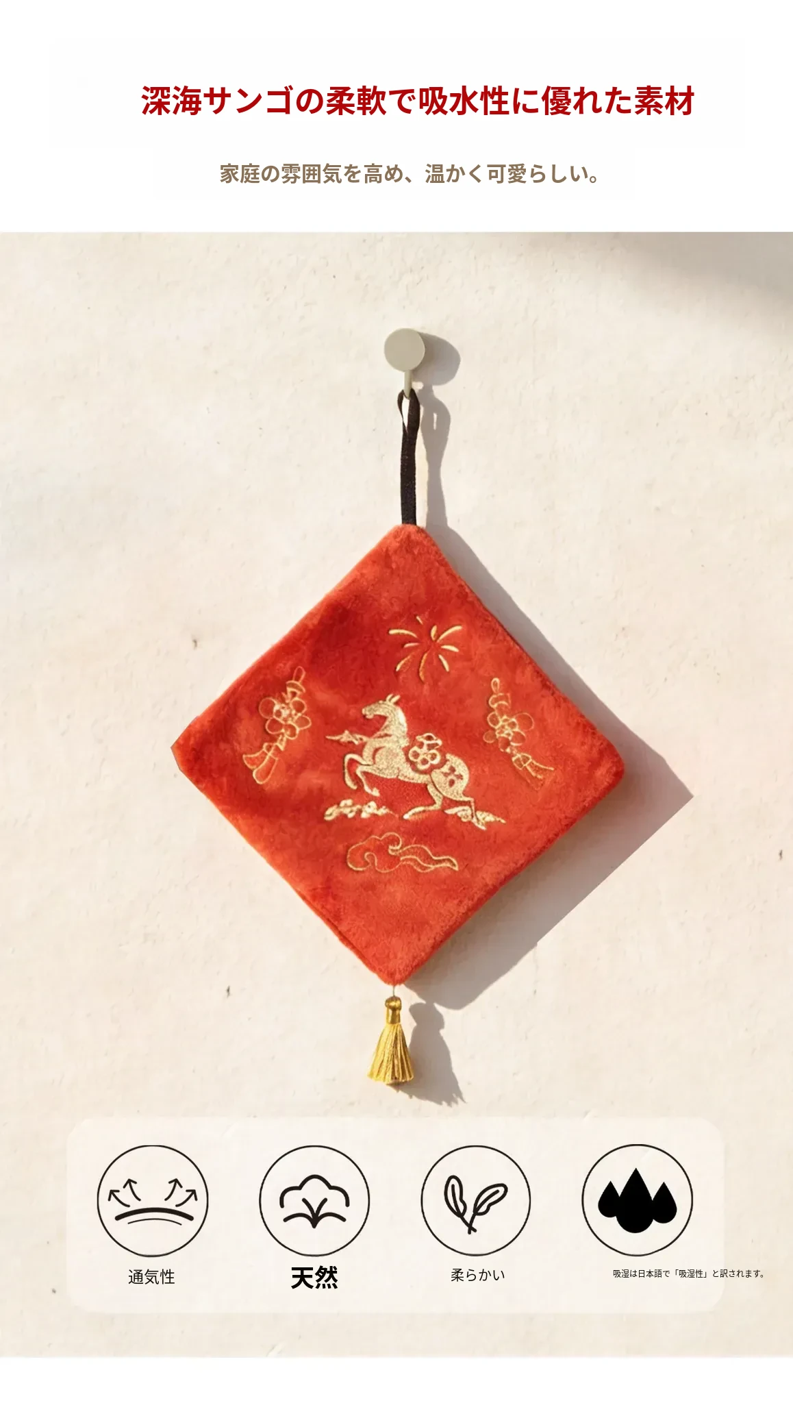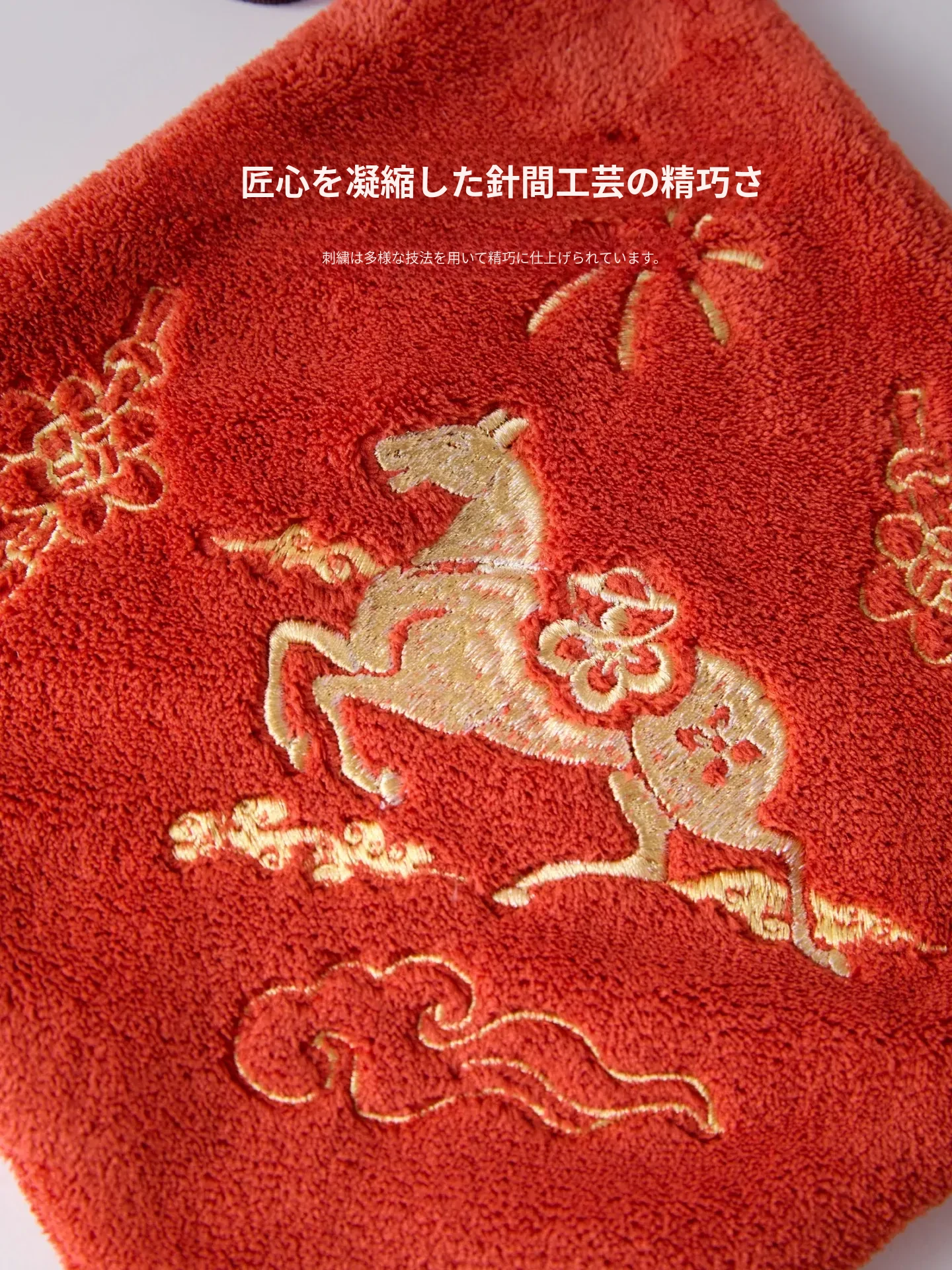 吸水性抜群!おしゃれで高級感あふれる馬年新春限定のハンカチ。家庭用にぴったりな可愛いデザインで、毎日の手拭きが楽しくなる!高いデザイン性と実用性を兼ね備えた、小さなハンドタオルです。