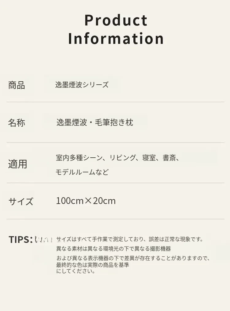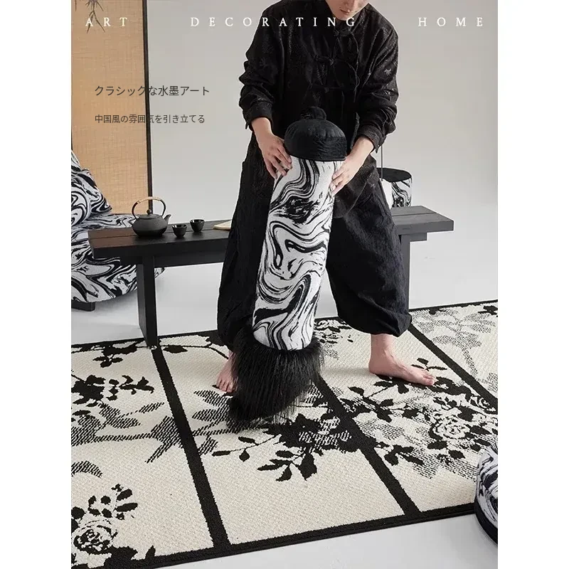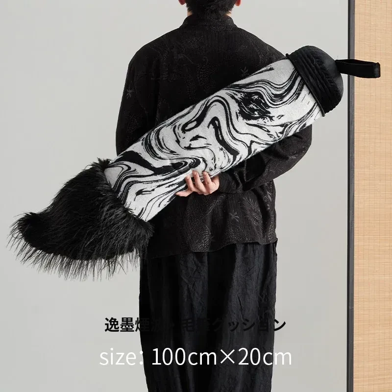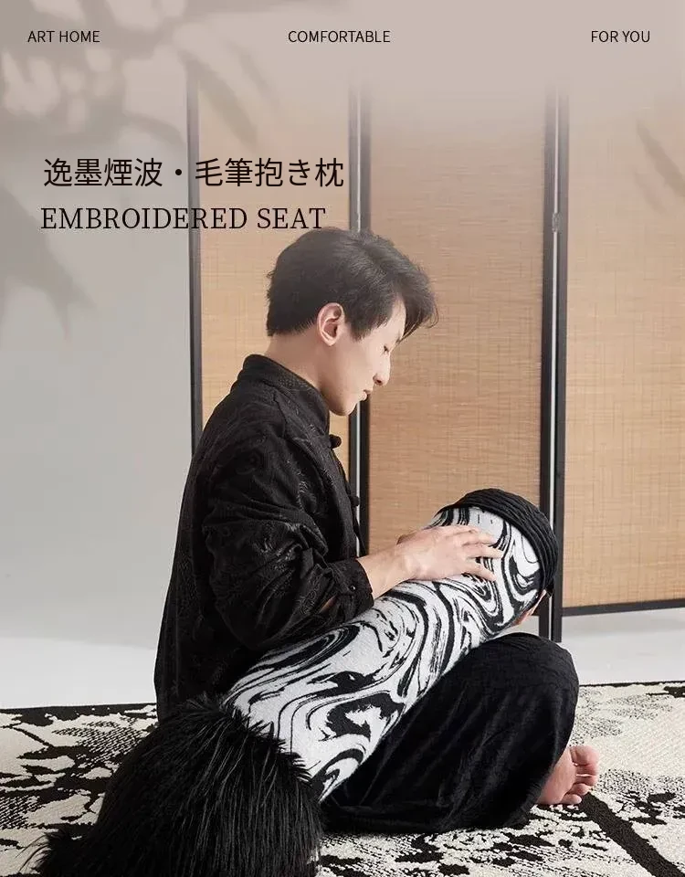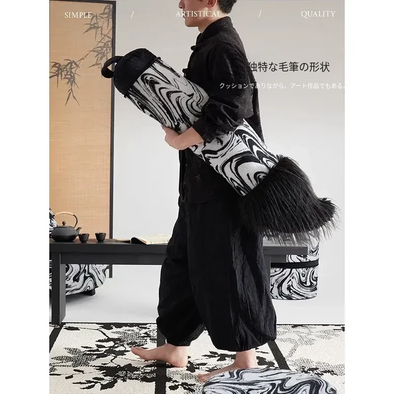 新中式毛筆デザインの抱き枕 - 創造的な黒白色の背もたれクッション、リビングルームや寝室にぴったり!長方形のソファクッションで、スタイリッシュなサポートを提供します。