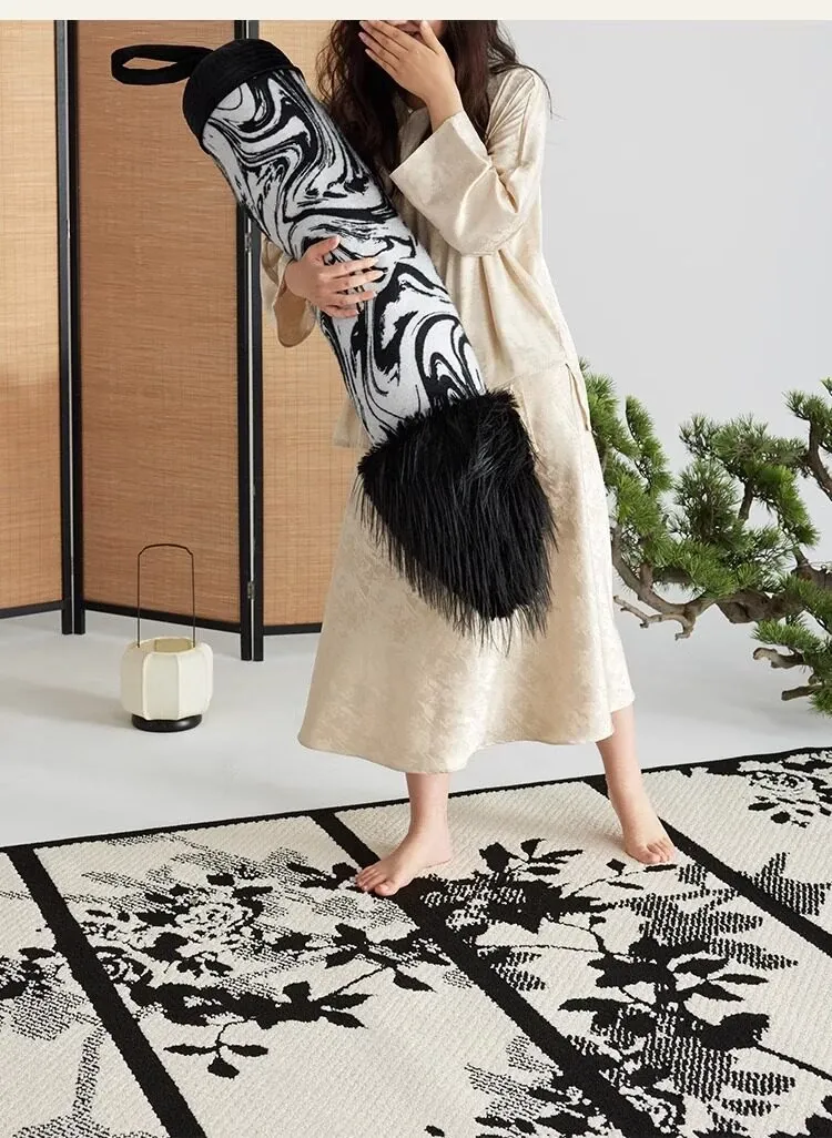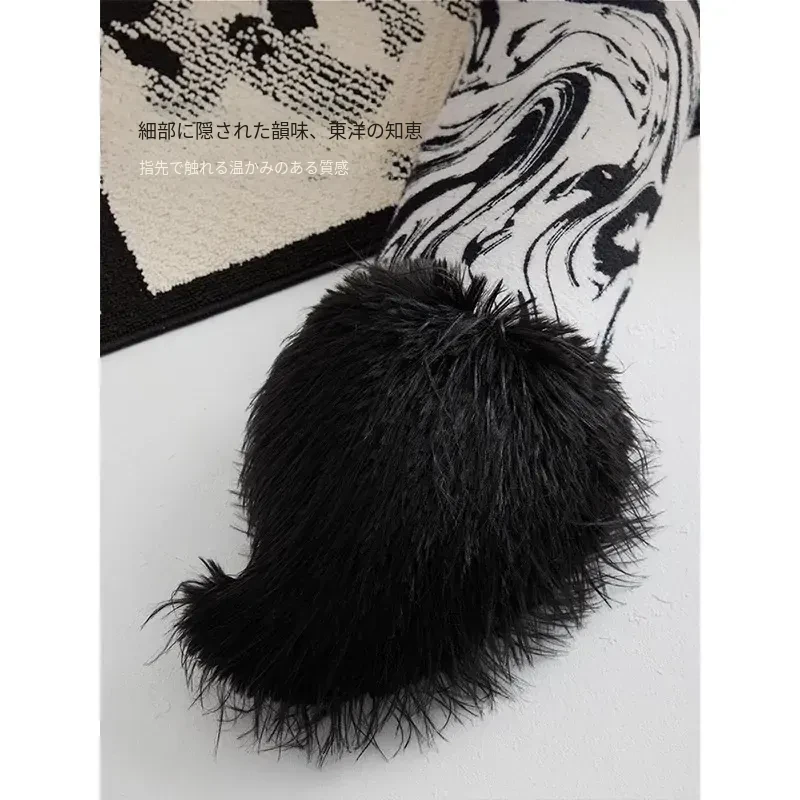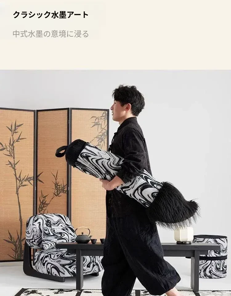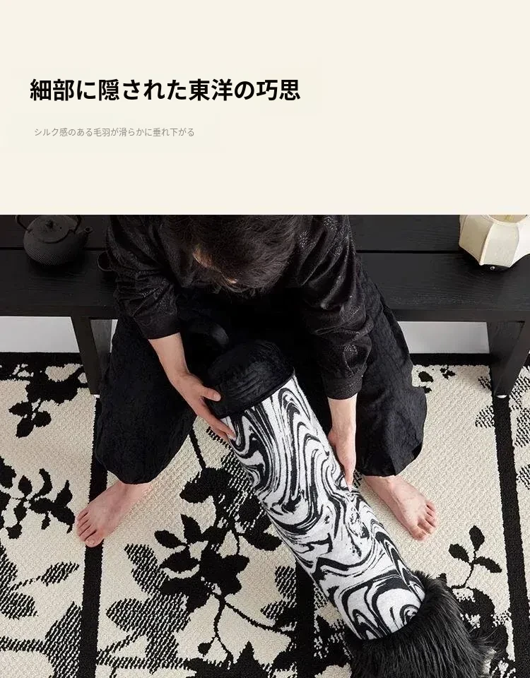 新中式毛筆デザインの抱き枕 - 創造的な黒白色の背もたれクッション、リビングルームや寝室にぴったり!長方形のソファクッションで、スタイリッシュなサポートを提供します。