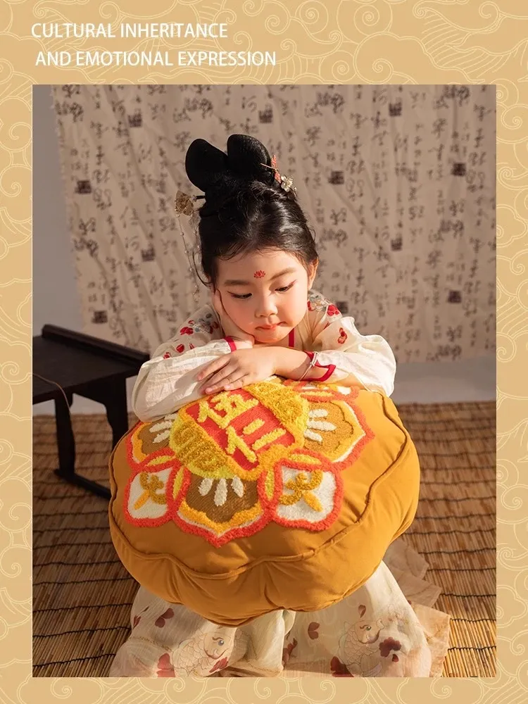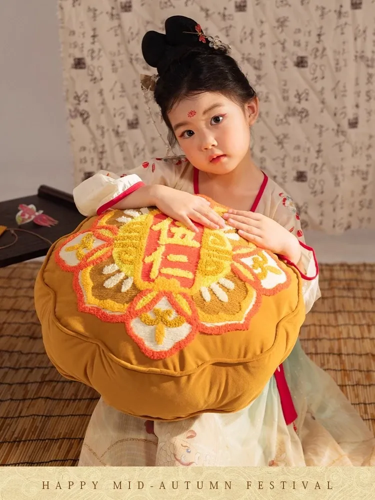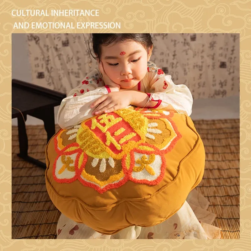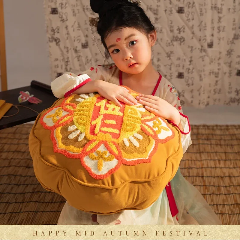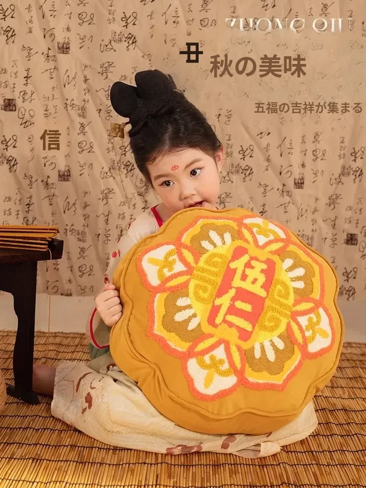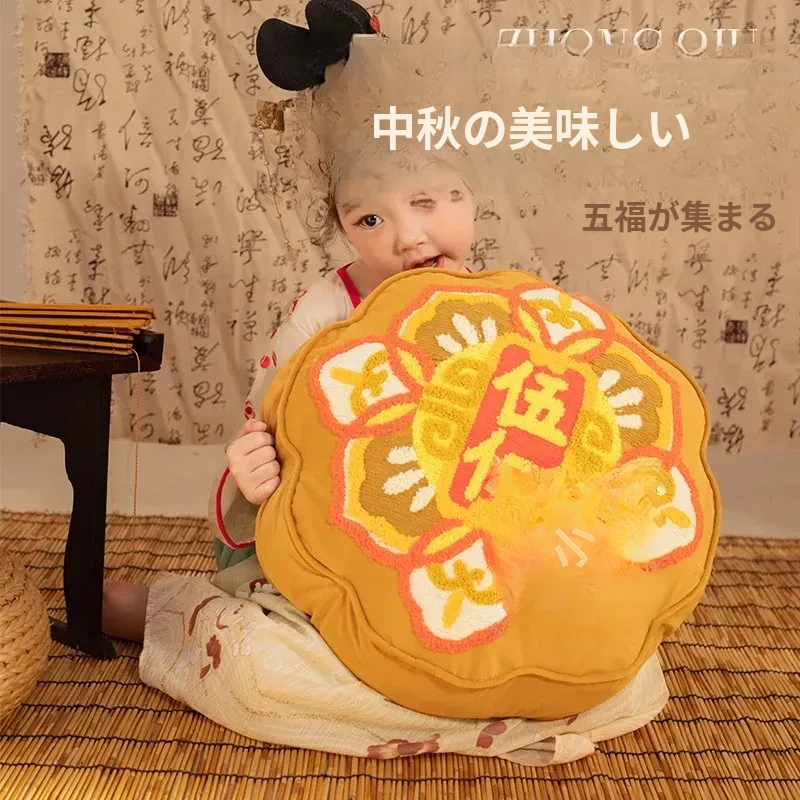 中秋節のクリエイティブ刺繍クッション:五仁月餅デザインで、リビングやソファにぴったり!ギフトにも最適な腰枕として、おしゃれで実用的なインテリアアイテム。心温まる中秋の贈り物にどうぞ!