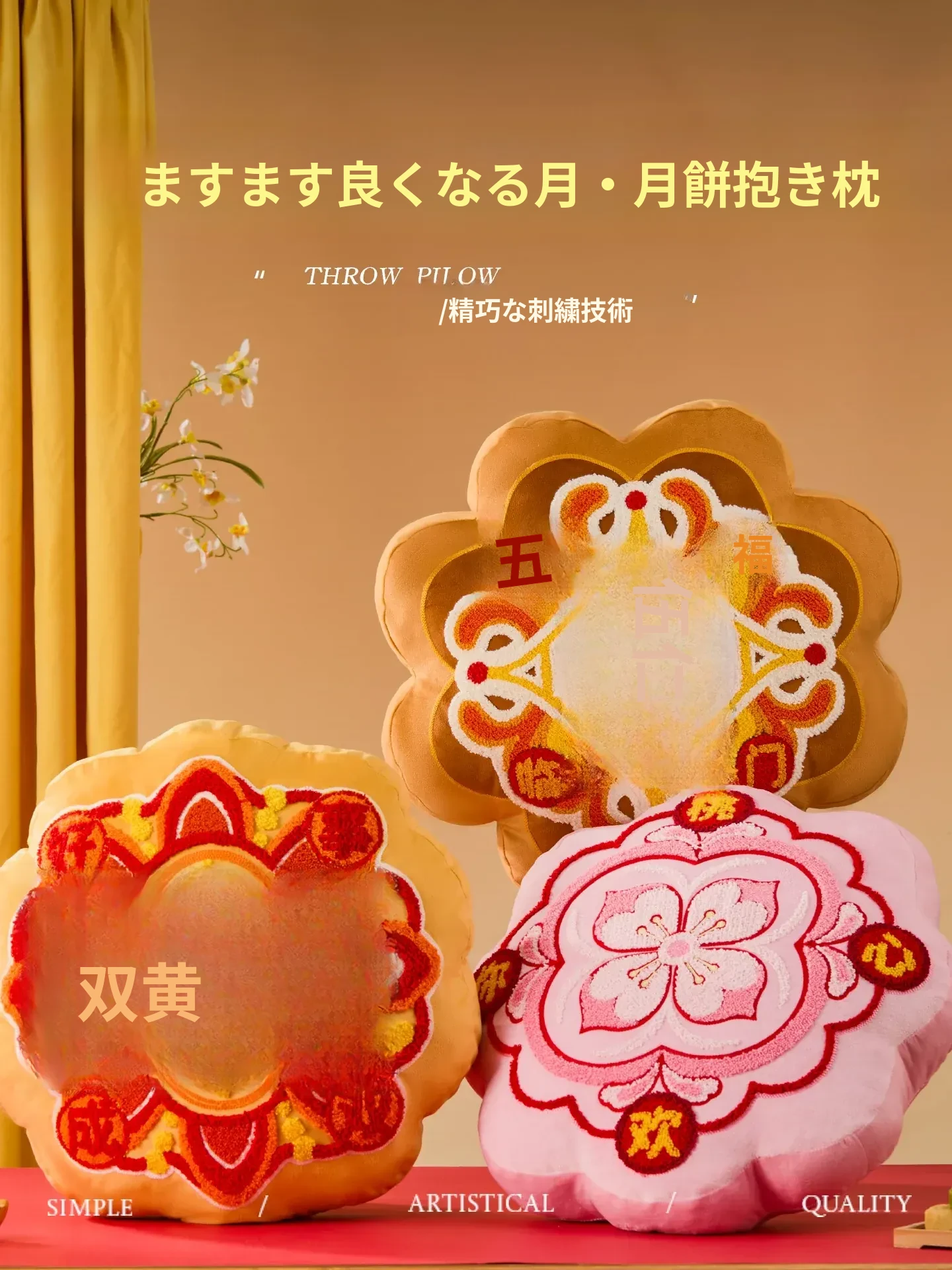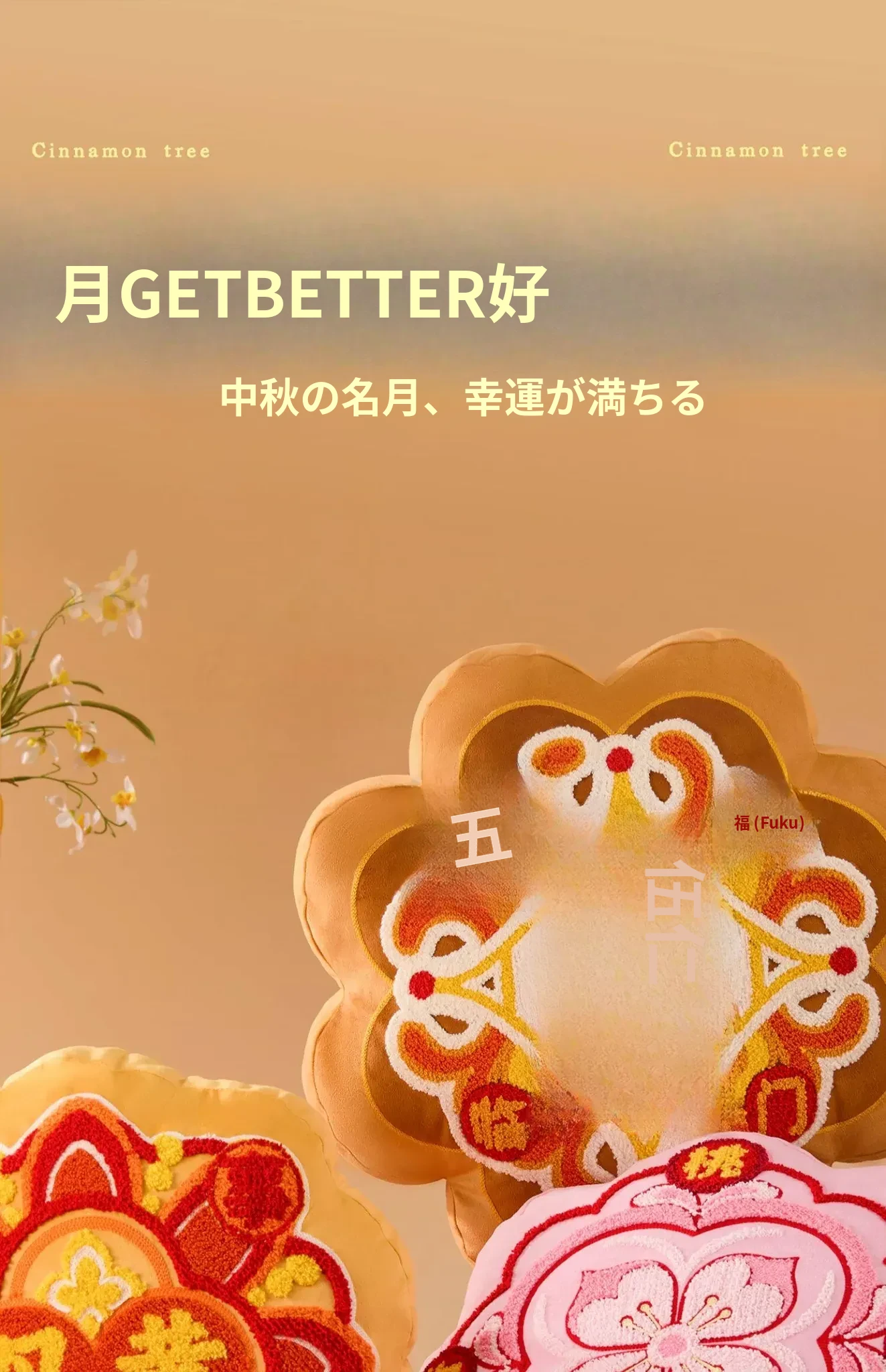 月来越好シリーズ・五つの福が訪れる月餅クッション