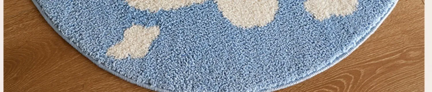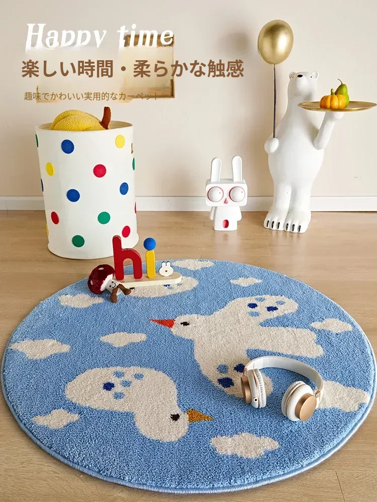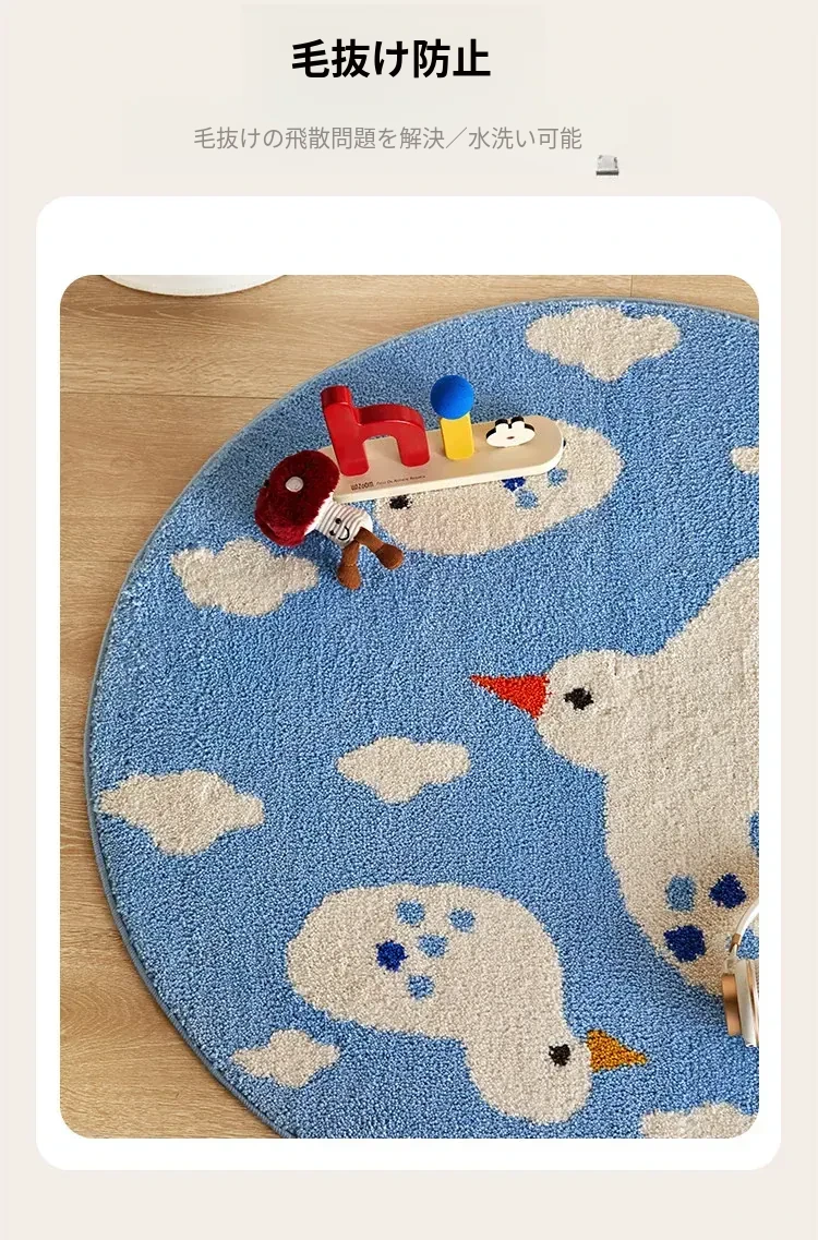 かわいいカートゥーンデザインのラウンドカーペット!厚手のミルクシルク素材で、子供部屋や寝室の読書スペースに最適。お家のベッドサイドにもぴったりなカラフルなマットで、楽しい空間を演出します!