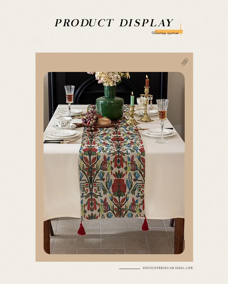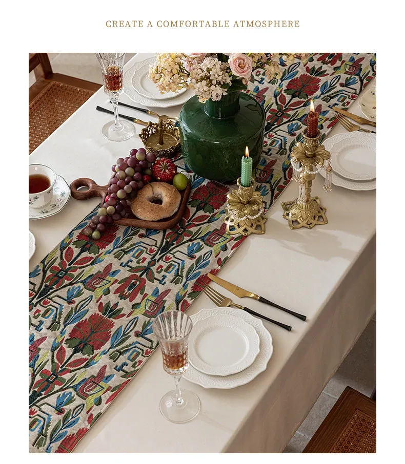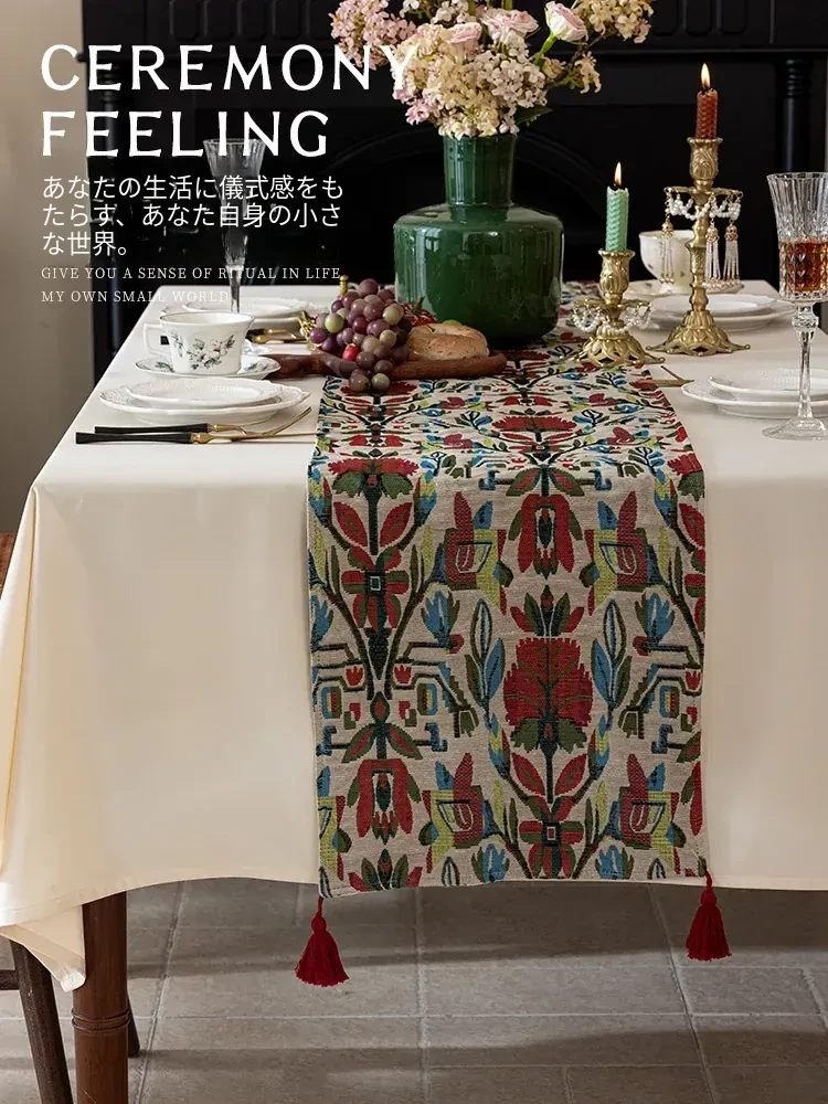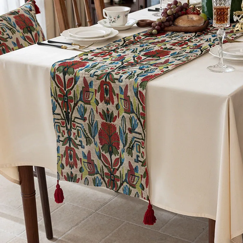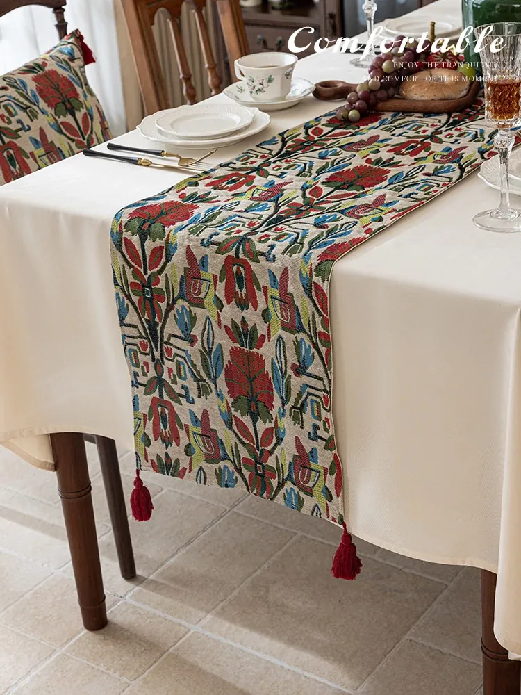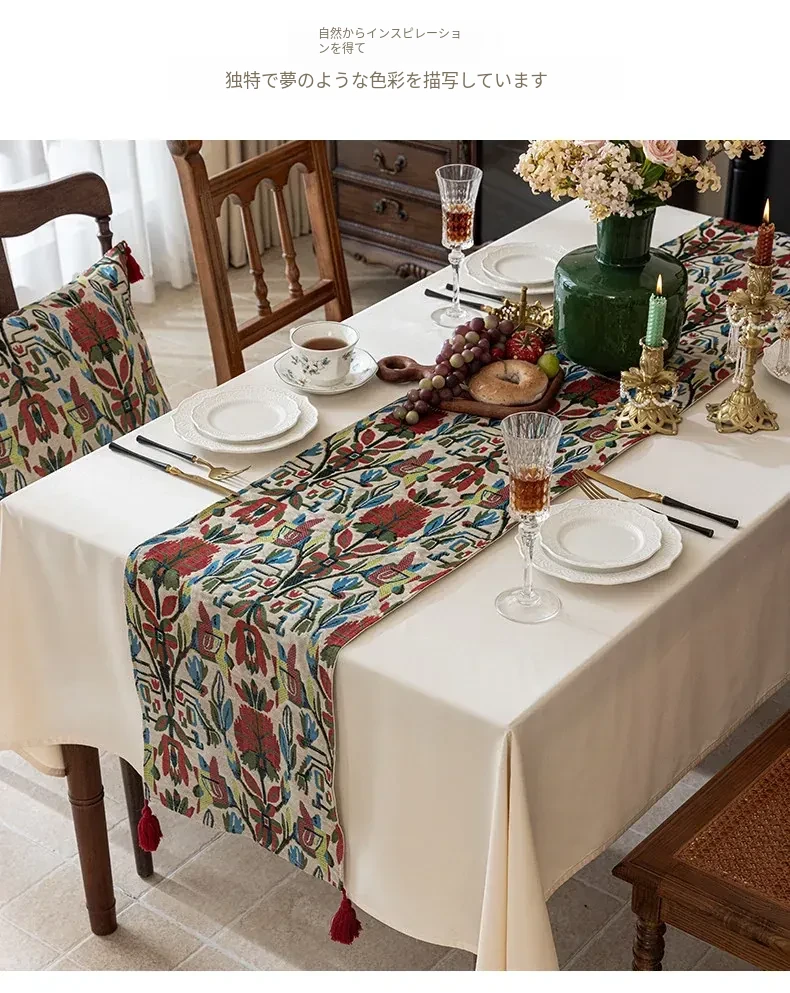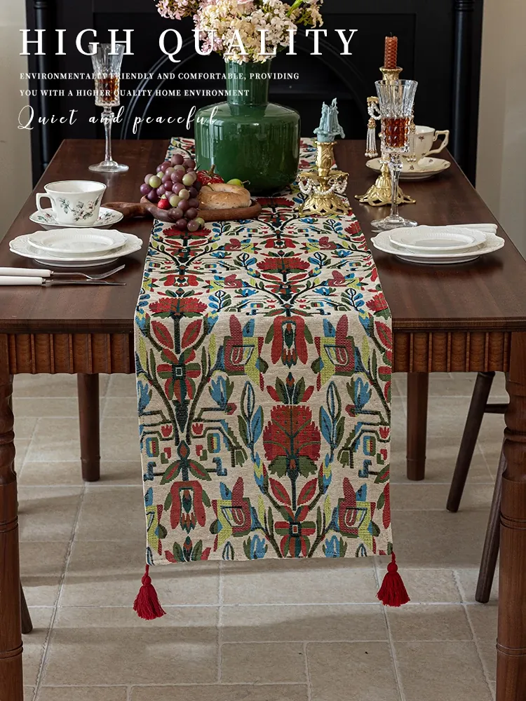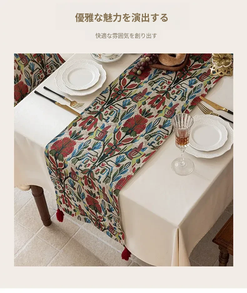 アメリカンスタイルの防水テーブルランナー - 高級感溢れるティーテーブルマット!おしゃれな布製のロングバータイプ、食卓を華やかに演出し、茶席でのひとときを特別に。