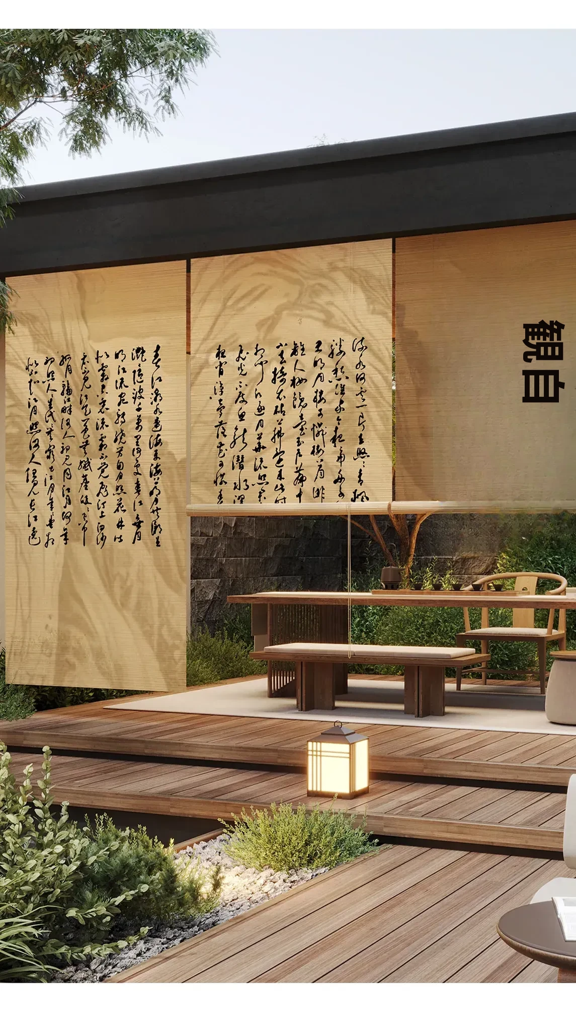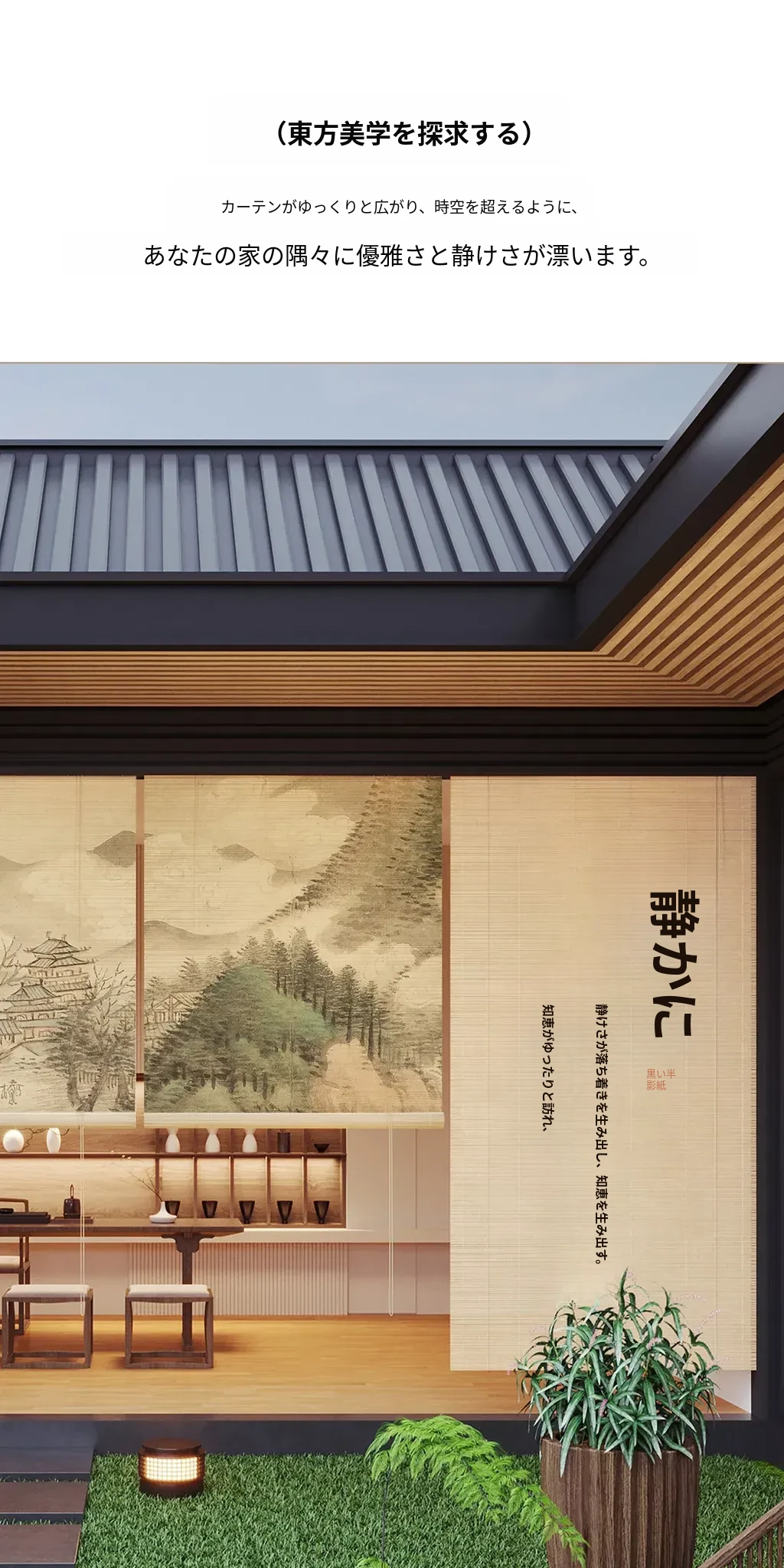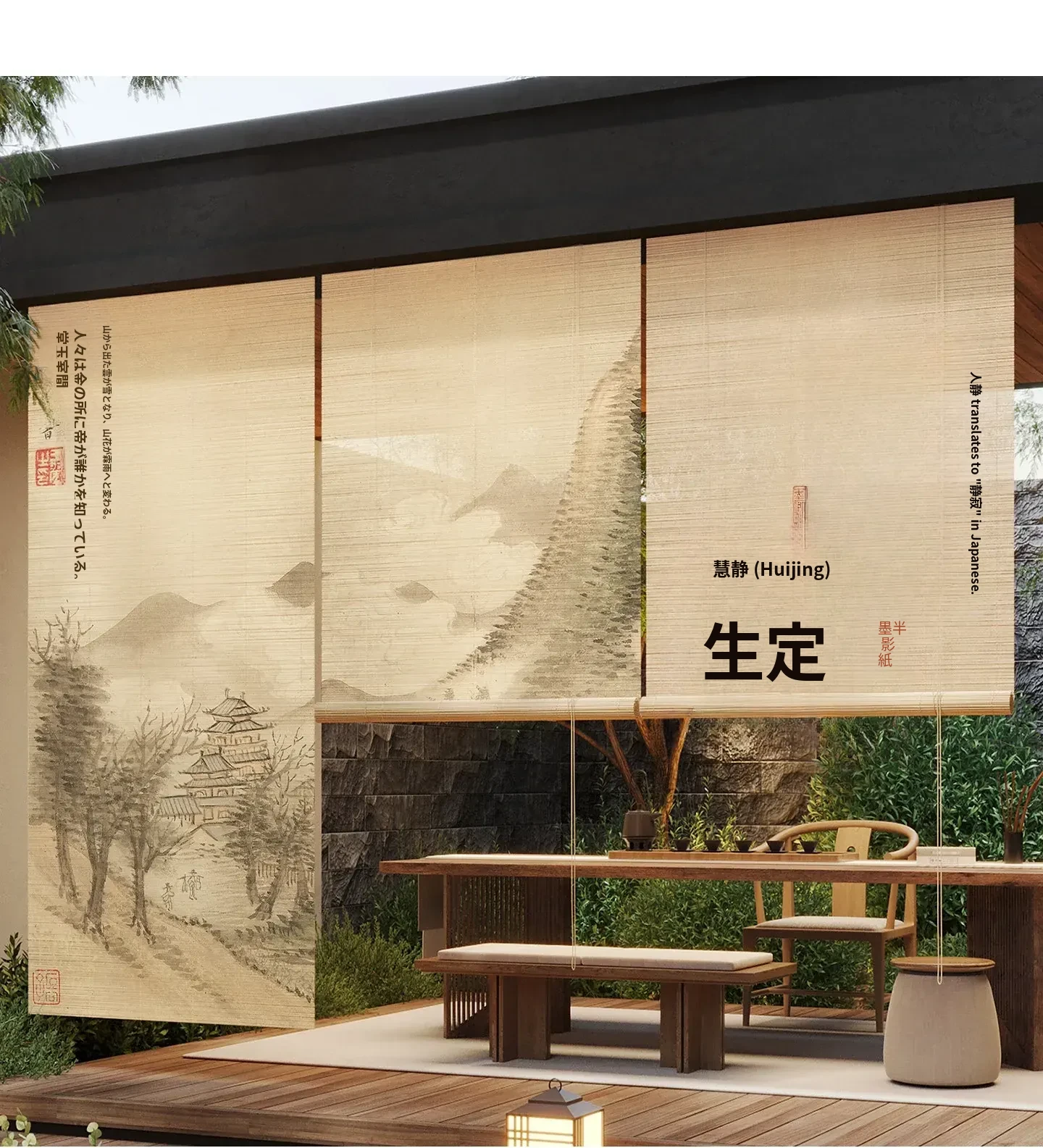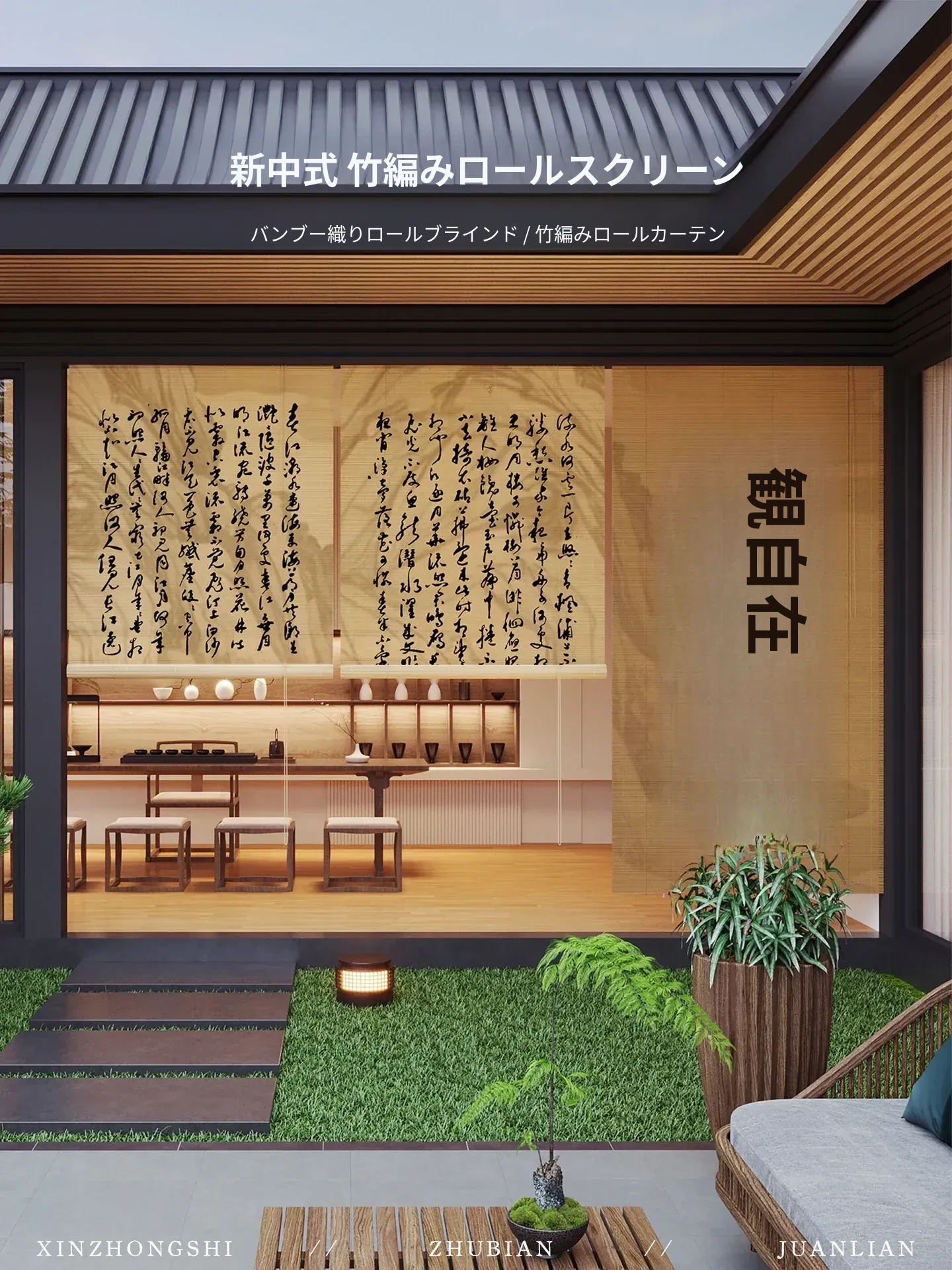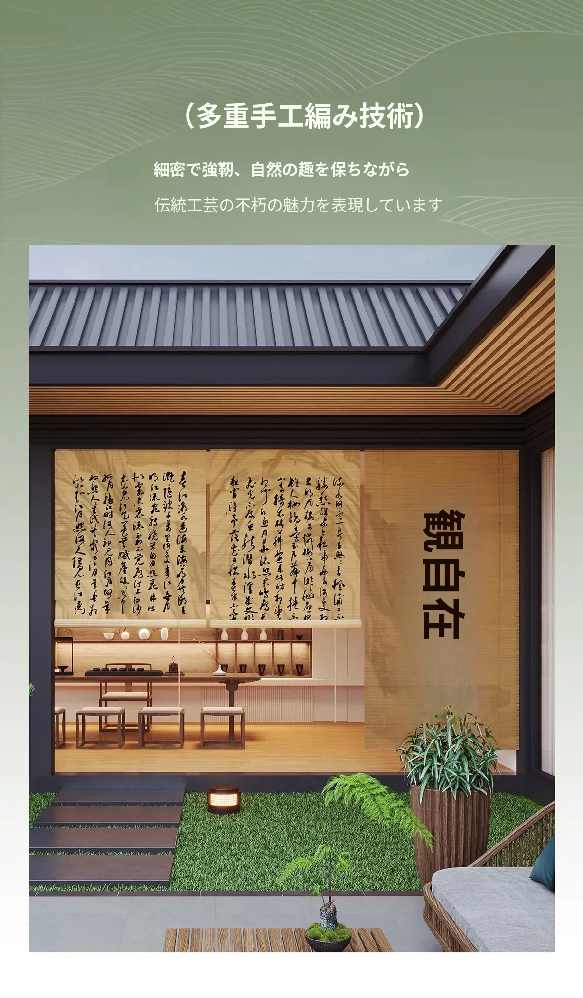 新中式古風竹製ロールカーテン - 宋代美学を感じる茶室にぴったり!遮光・遮熱効果抜群、取り付け簡単で壁を傷つけないデザイン。優雅な雰囲気で空間を演出する竹編みのカーテン。