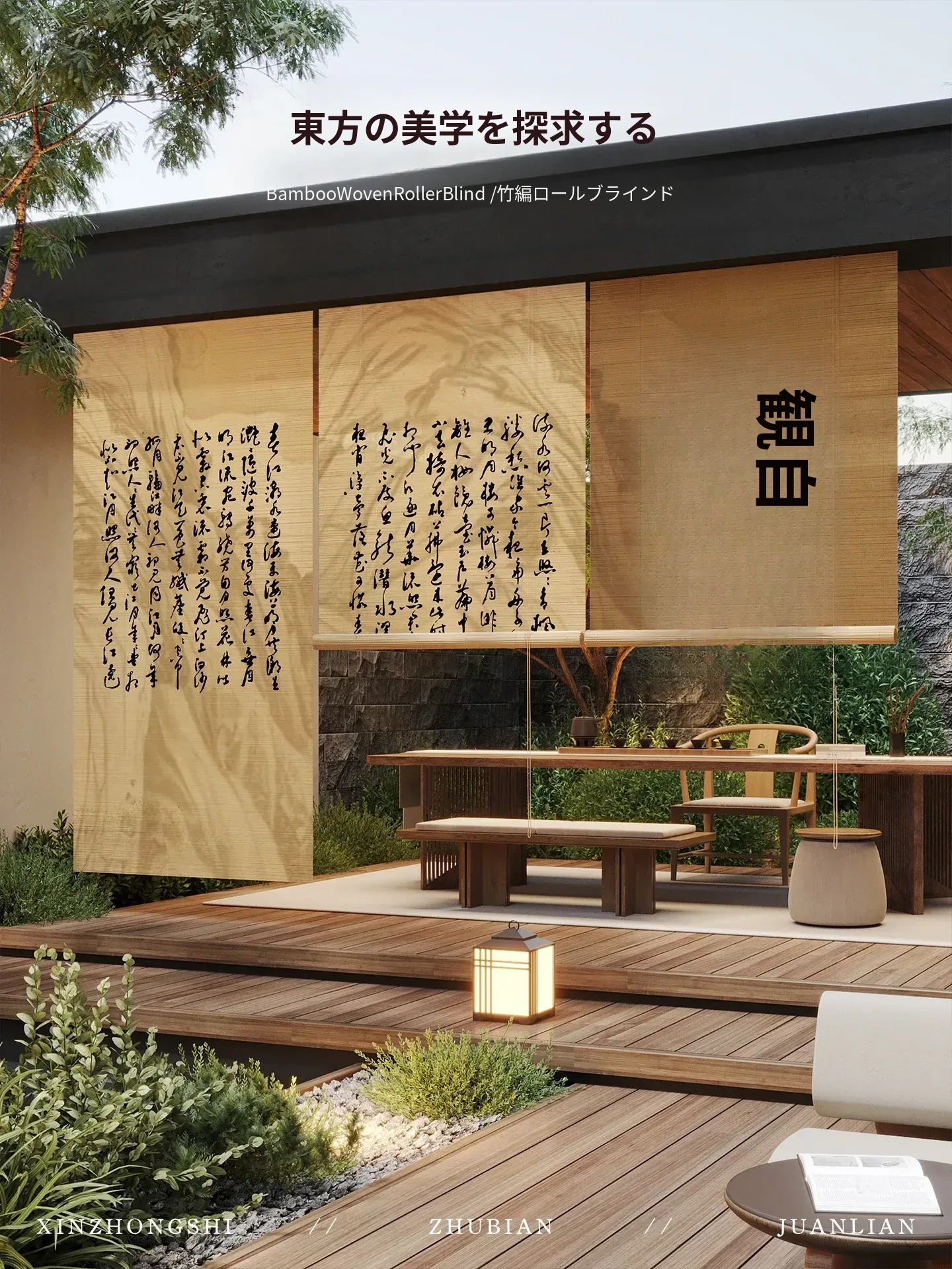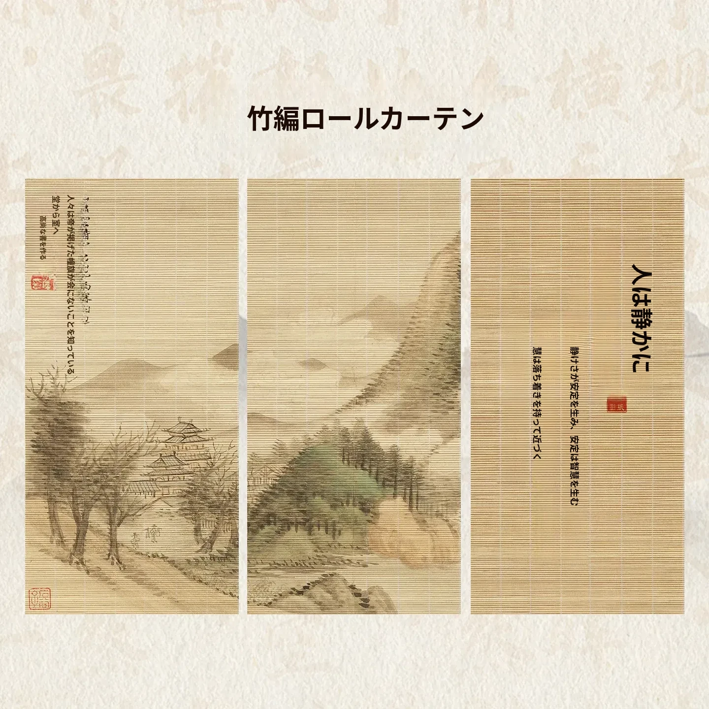 静慧山水巻竹編みロールカーテン 幅 3点セット