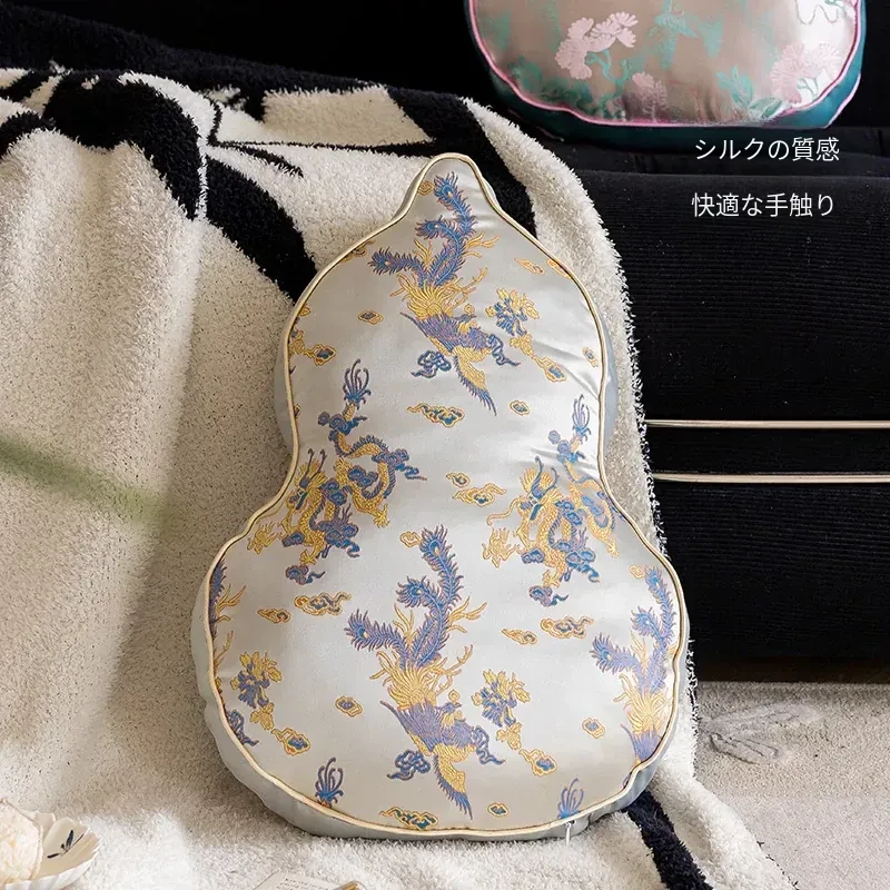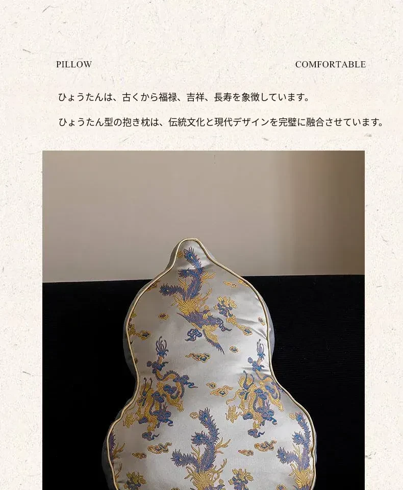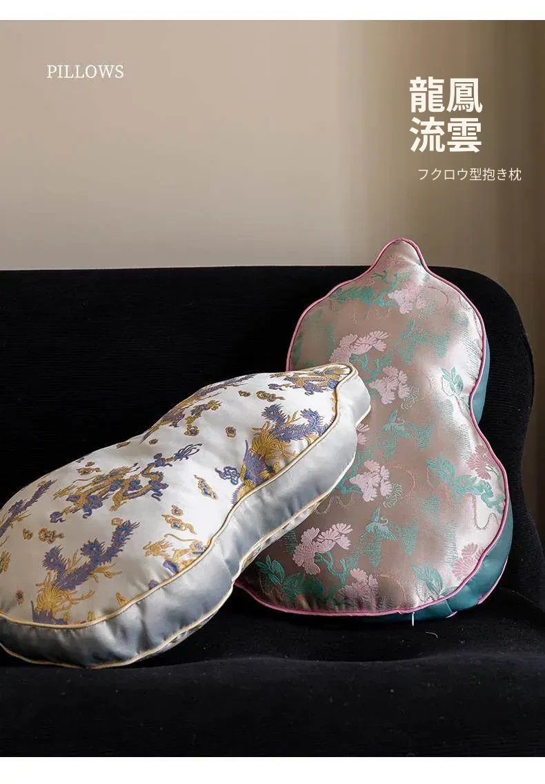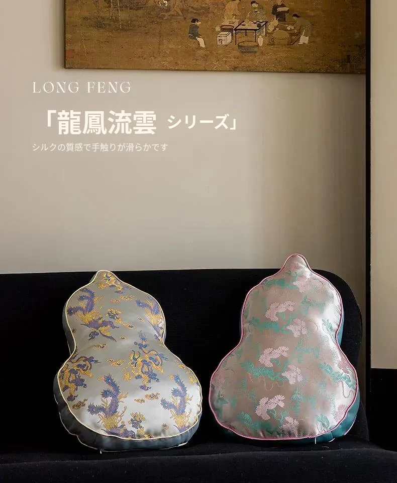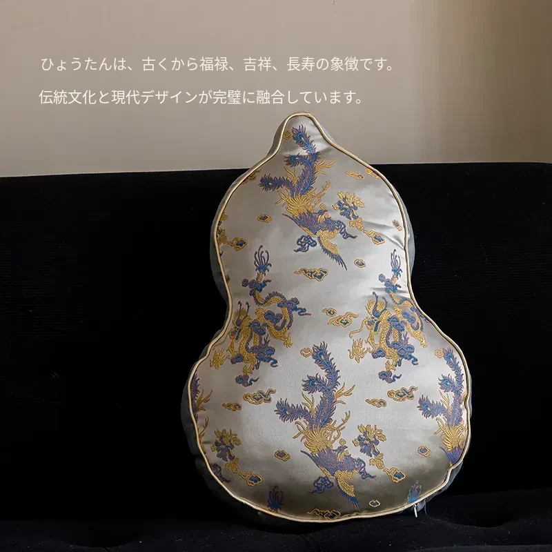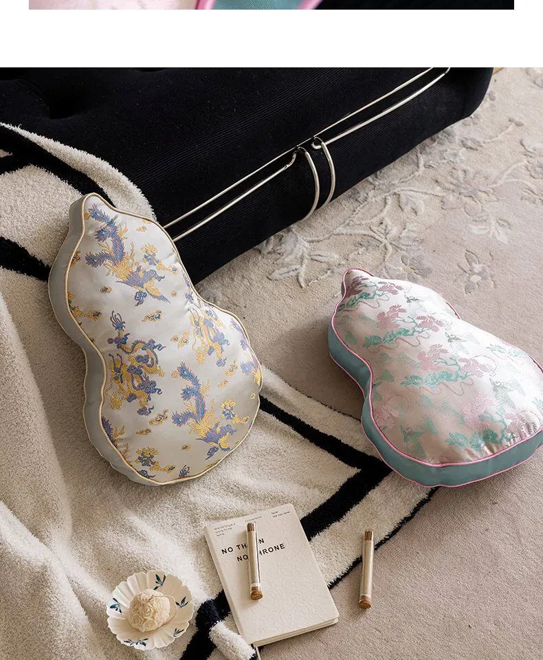 新中式デザインのリビングソファ用クッションカバー、ユニークなひょうたん型、高級感漂うクッションセット!中国風の不規則なデザインで、背もたれサポートも完璧。おしゃれな空間を演出します。