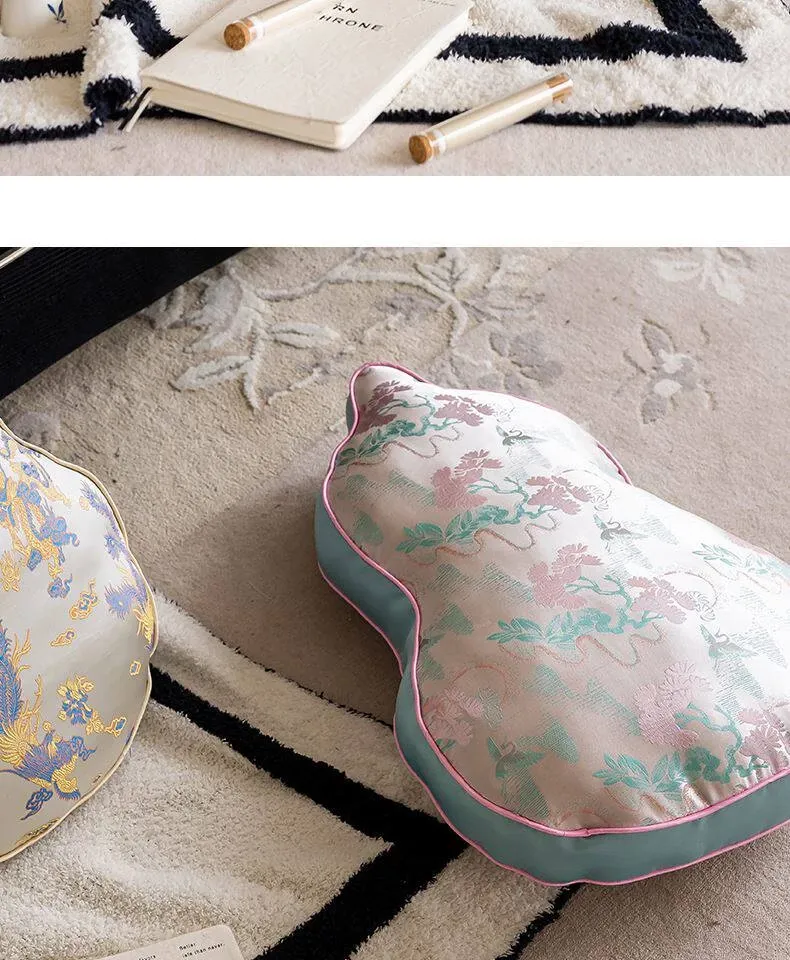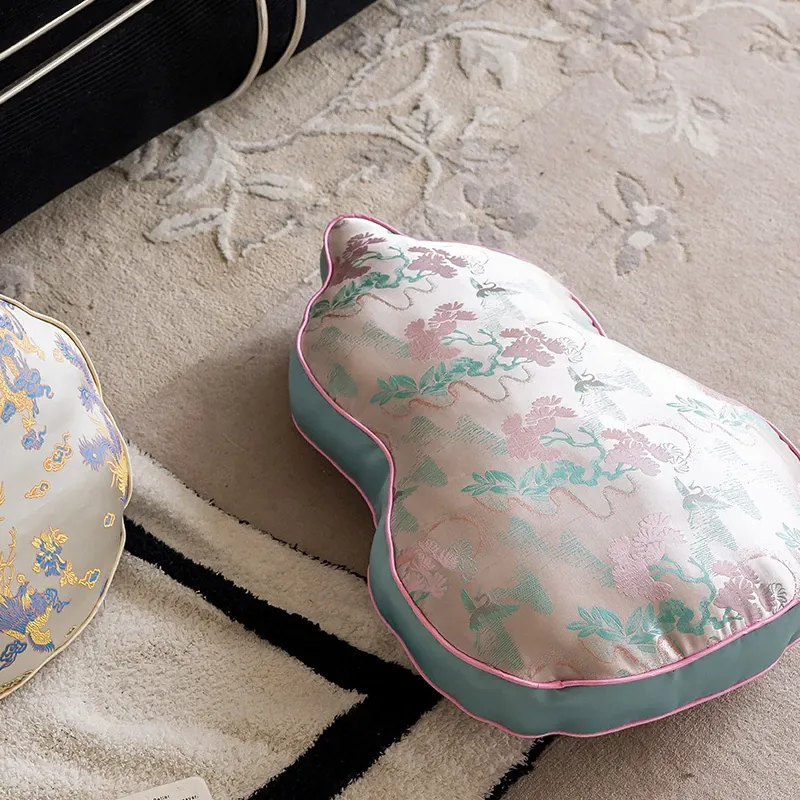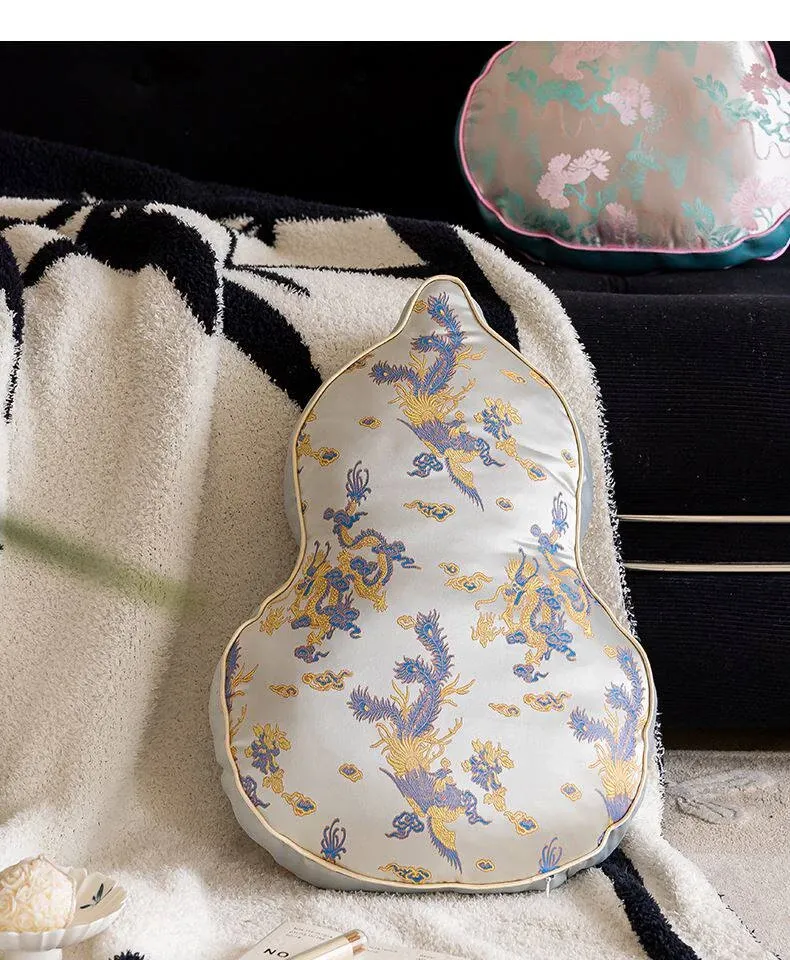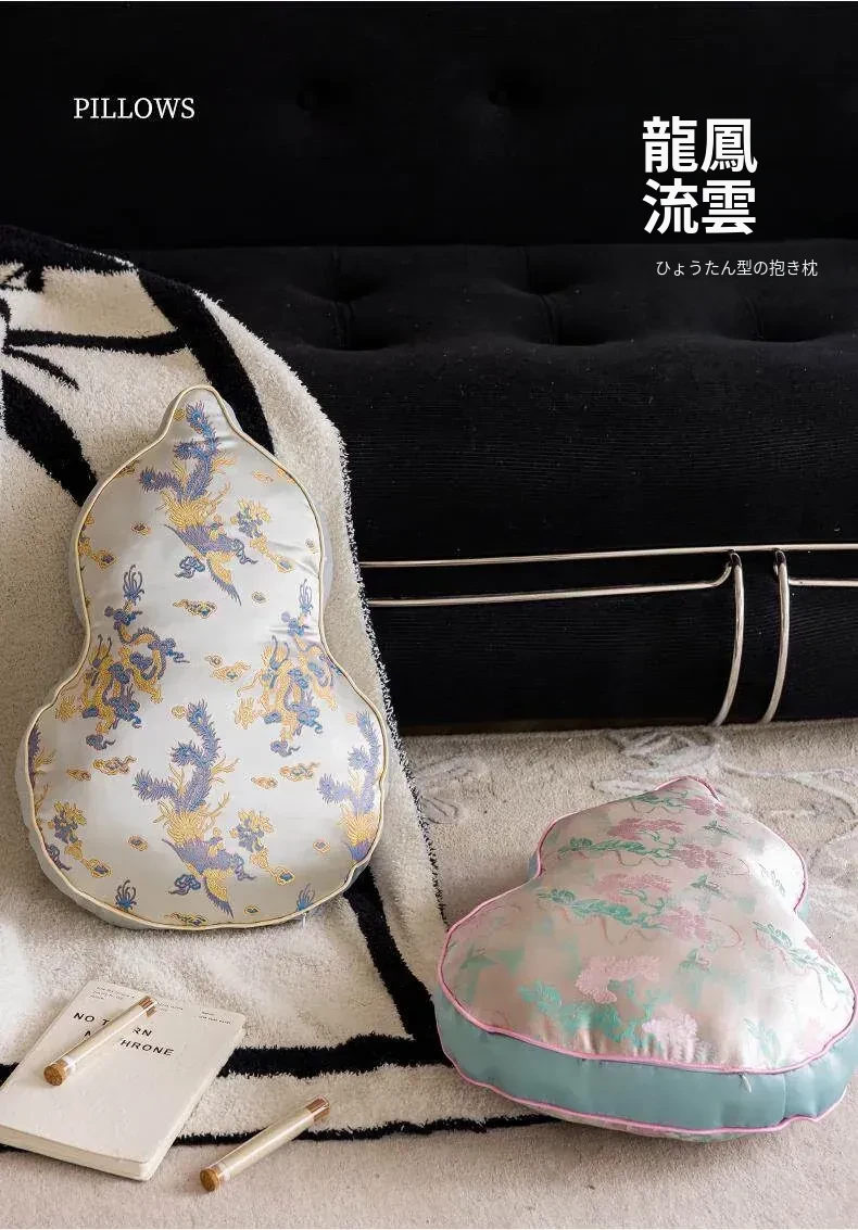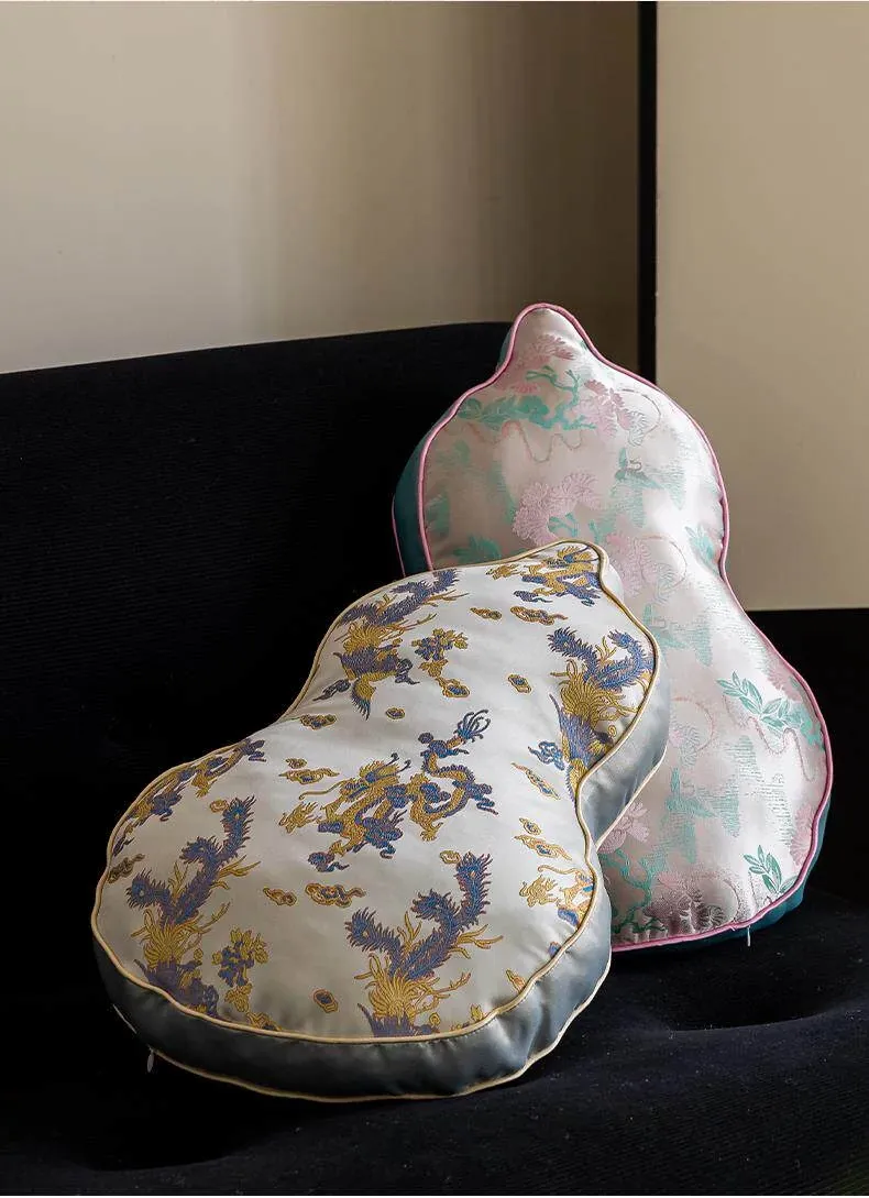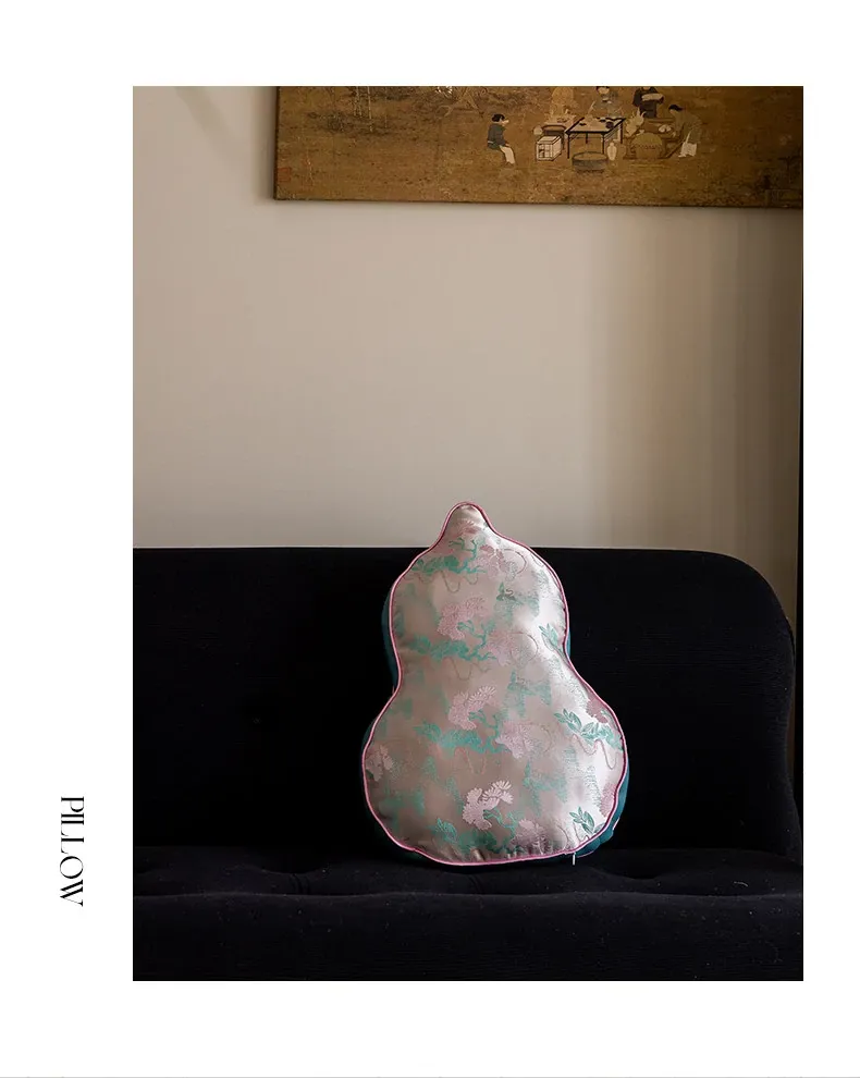 新中式デザインのリビングソファ用クッションカバー、ユニークなひょうたん型、高級感漂うクッションセット!中国風の不規則なデザインで、背もたれサポートも完璧。おしゃれな空間を演出します。