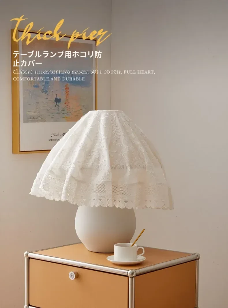おしゃれなレース製のテーブルランプシェードカバー、エアフライヤーや炊飯器、ブレンダー、ティーセットにも最適な多用途防塵カバー。エレガントなヨーロピアンスタイルの円形カバーで、インテリアを引き立てます!