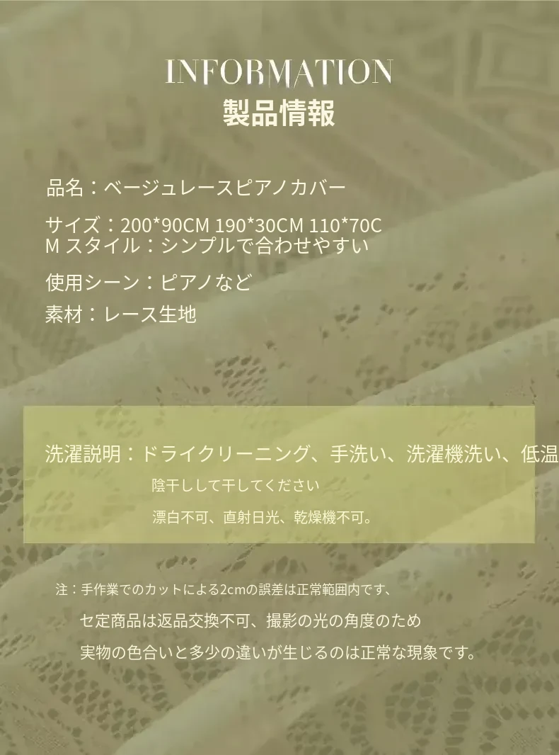 ベージュのレースピアノ鍵盤カバー