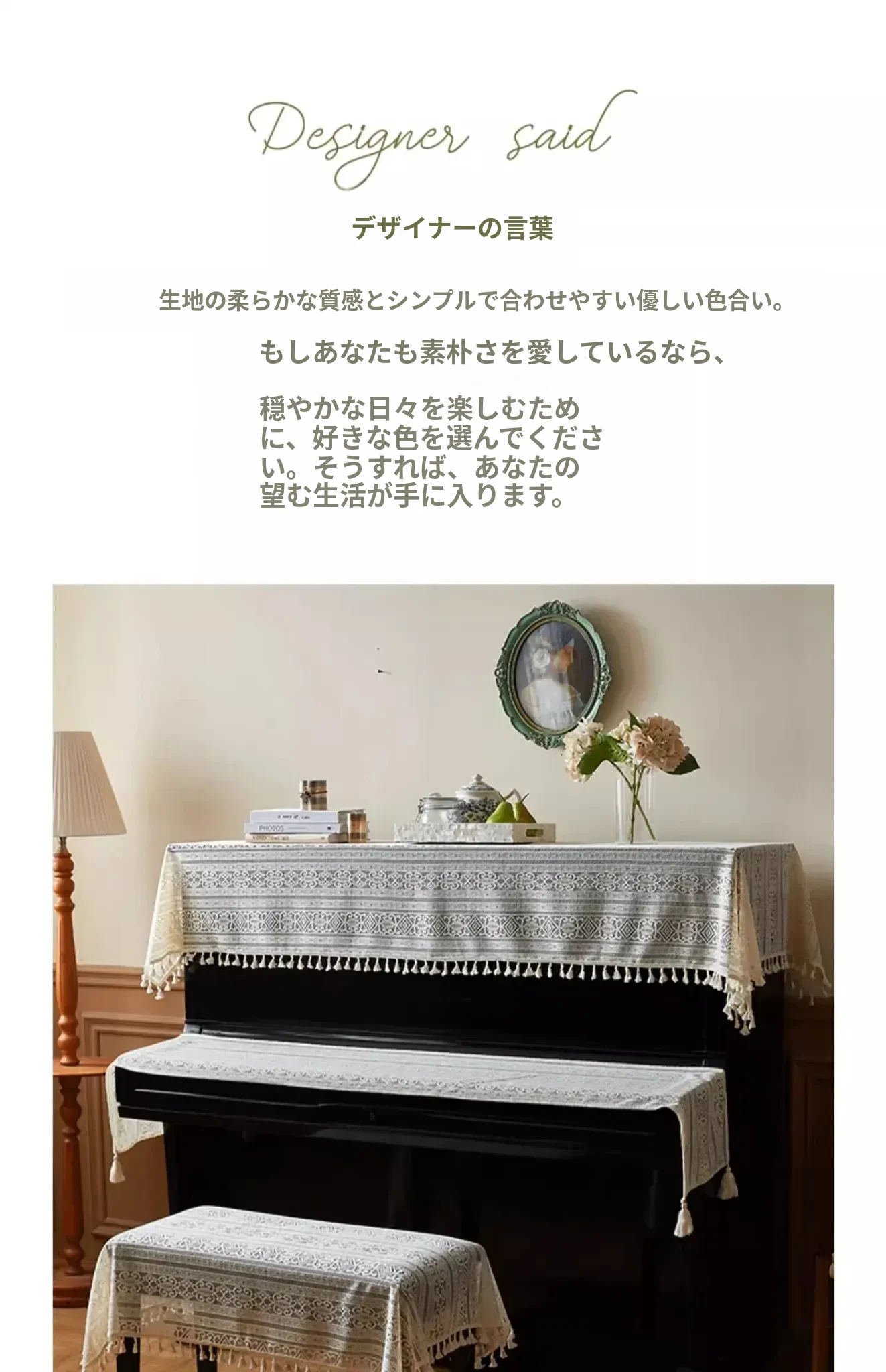 ベージュのレースピアノカバー