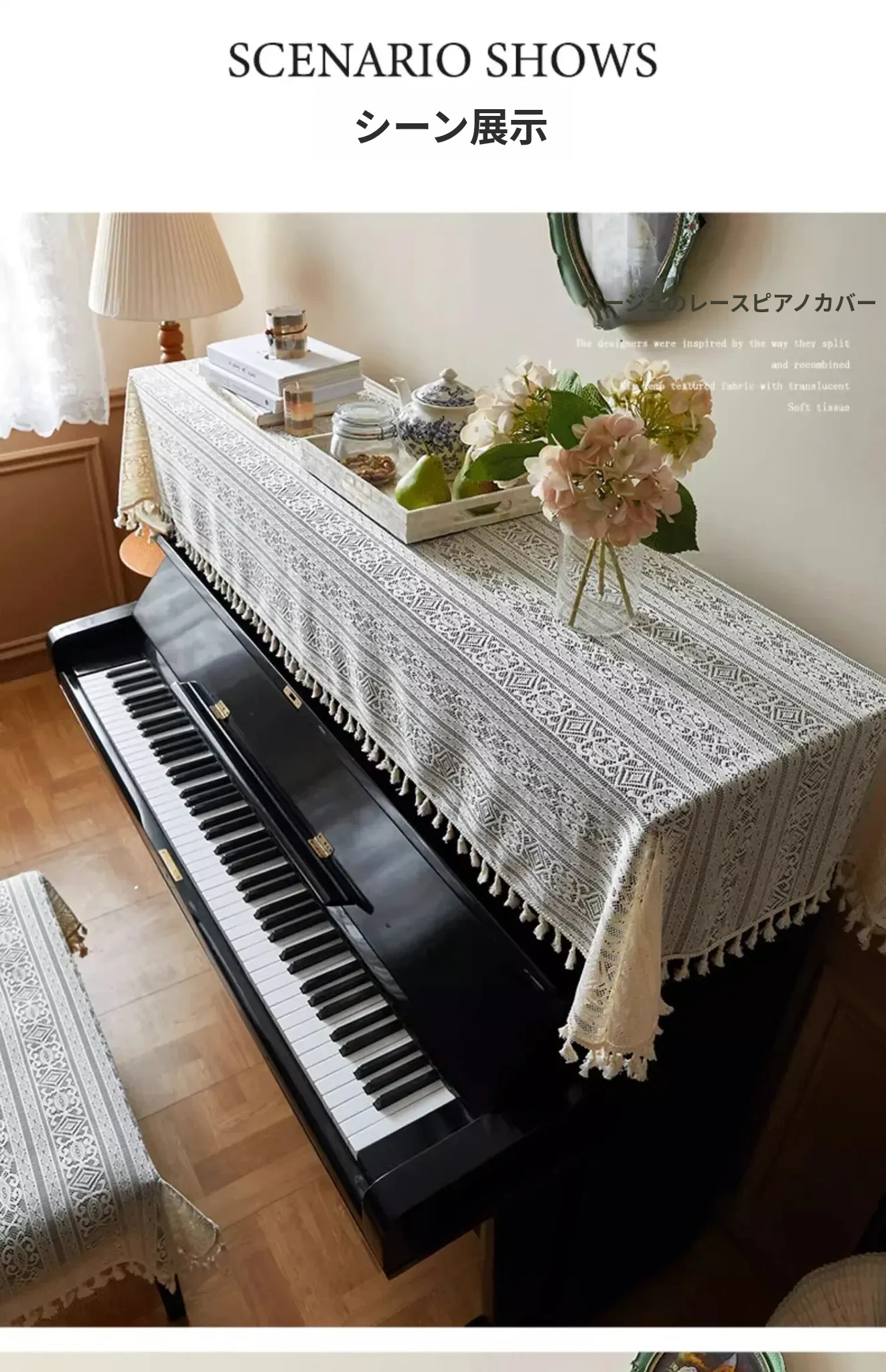 新作!高級感溢れるレースピアノ防塵カバー&電子ピアノ用カバー - おしゃれな椅子カバー付き!2026年モデルで、あなたの楽器を美しく守ります。