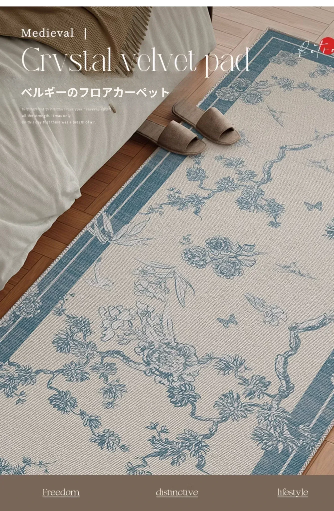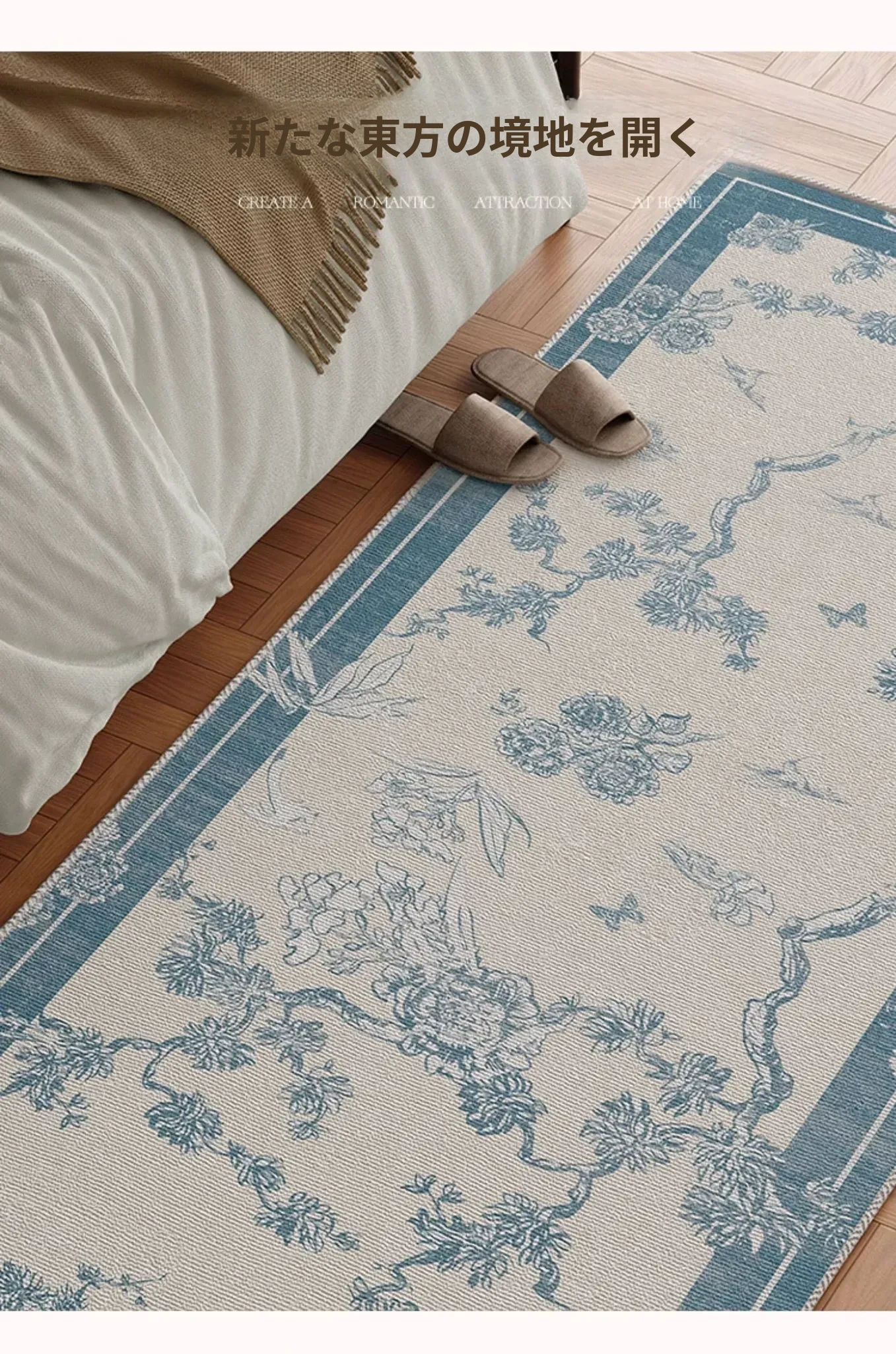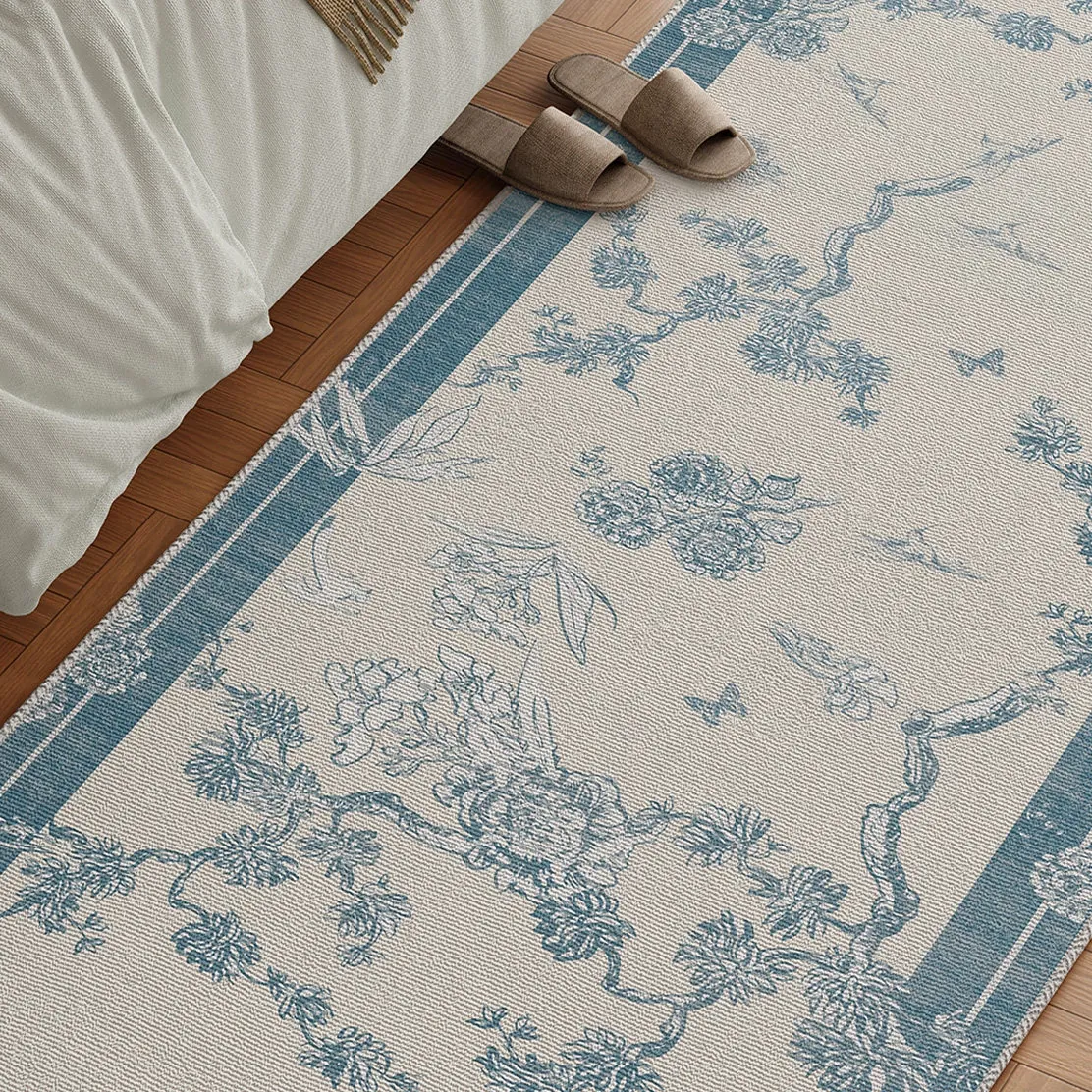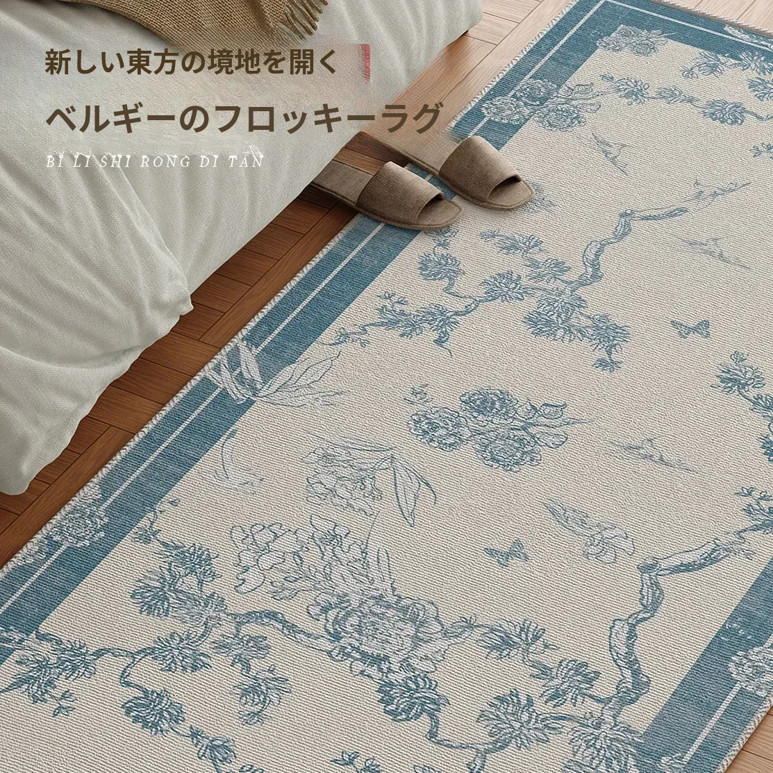 新中式スタイルのベッドサイドラグ - 高級感溢れるフランス風デザイン!主寝室にぴったりな魅力的な床マット。ベッドの足元を美しく演出し、優雅な空間を実現します。