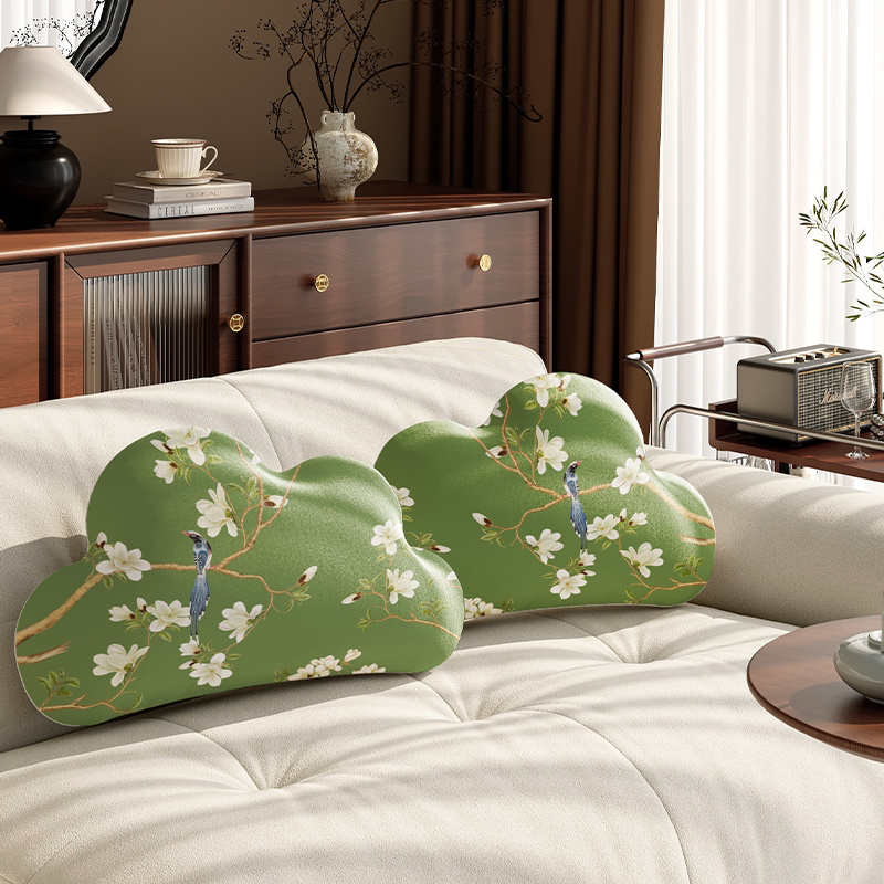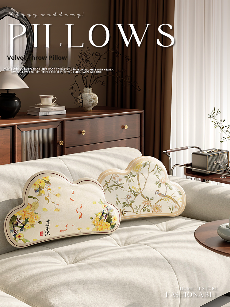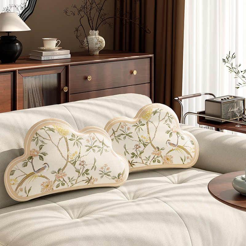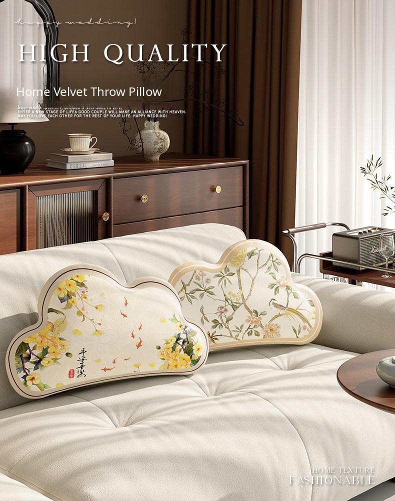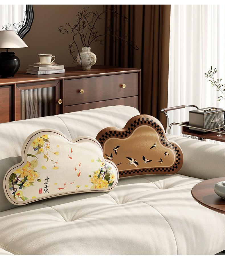 Elegant New Chinese Style Cloud-Shaped Throw Pillow for Living Room Sofa – Luxurious French-Inspired Headboard Cushion with a Touch of Chinese Aesthetics