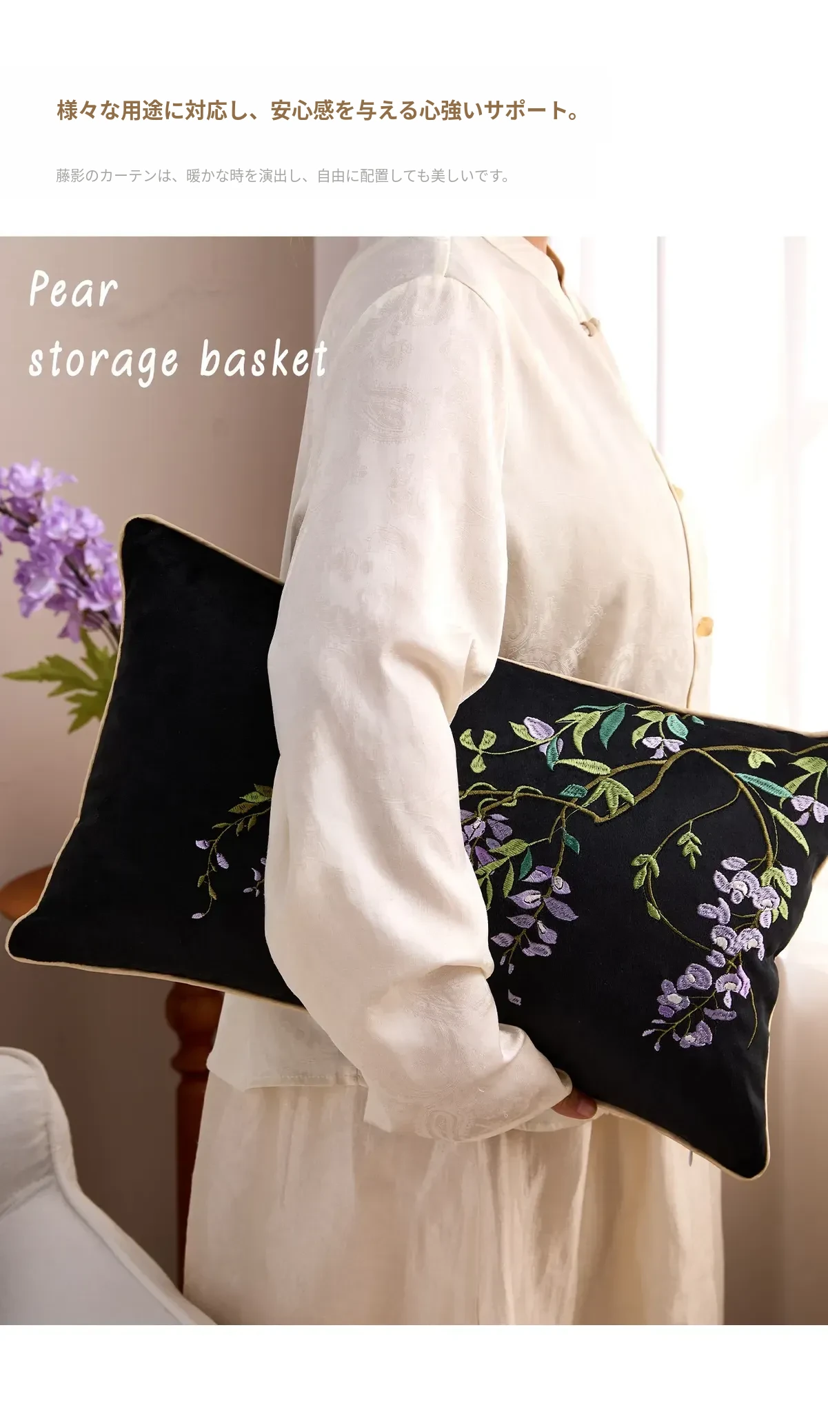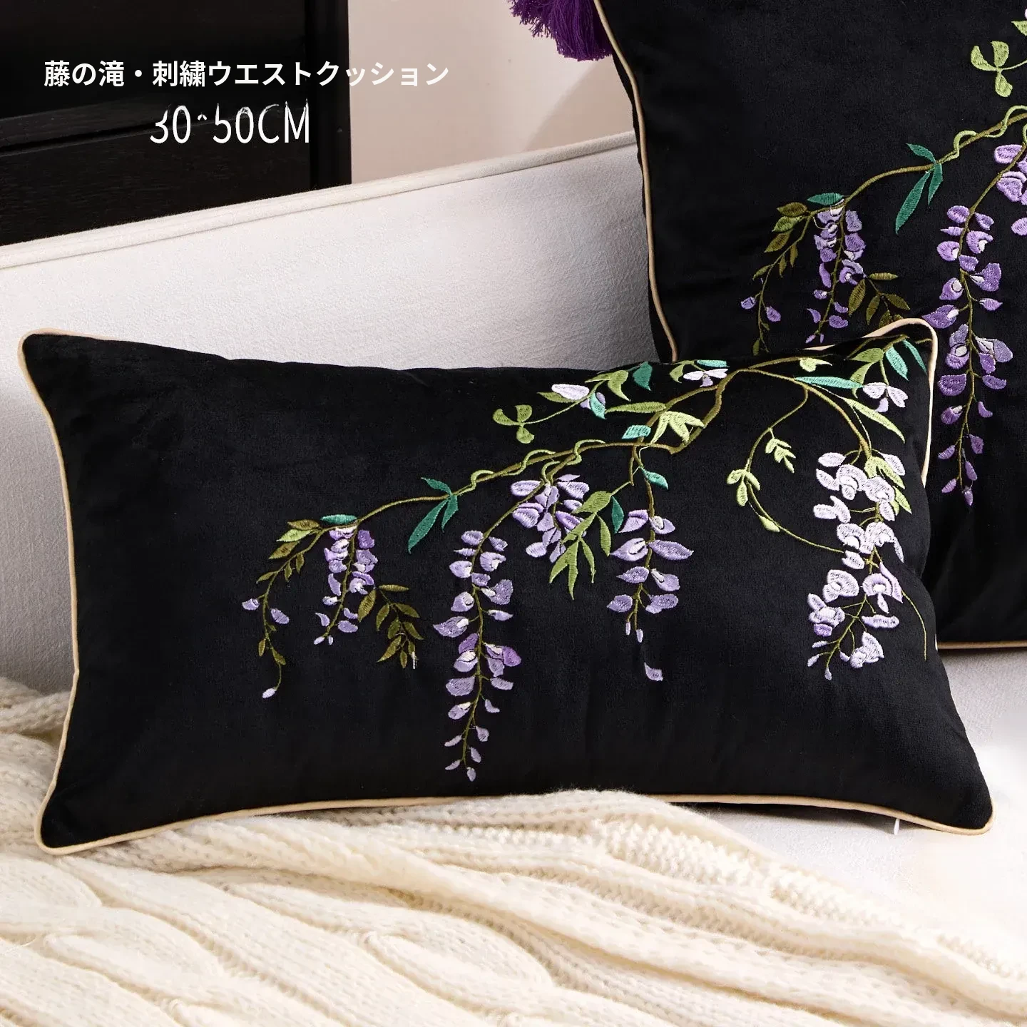紫藤の滝刺繍腰クッション【30*50cmカバー+クッション芯】