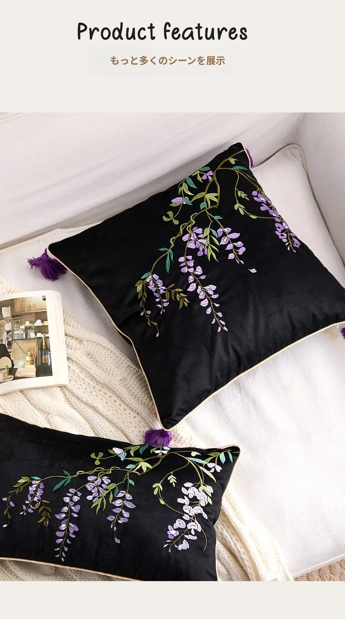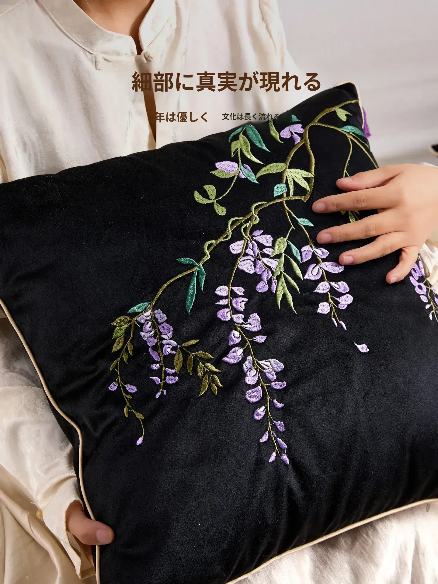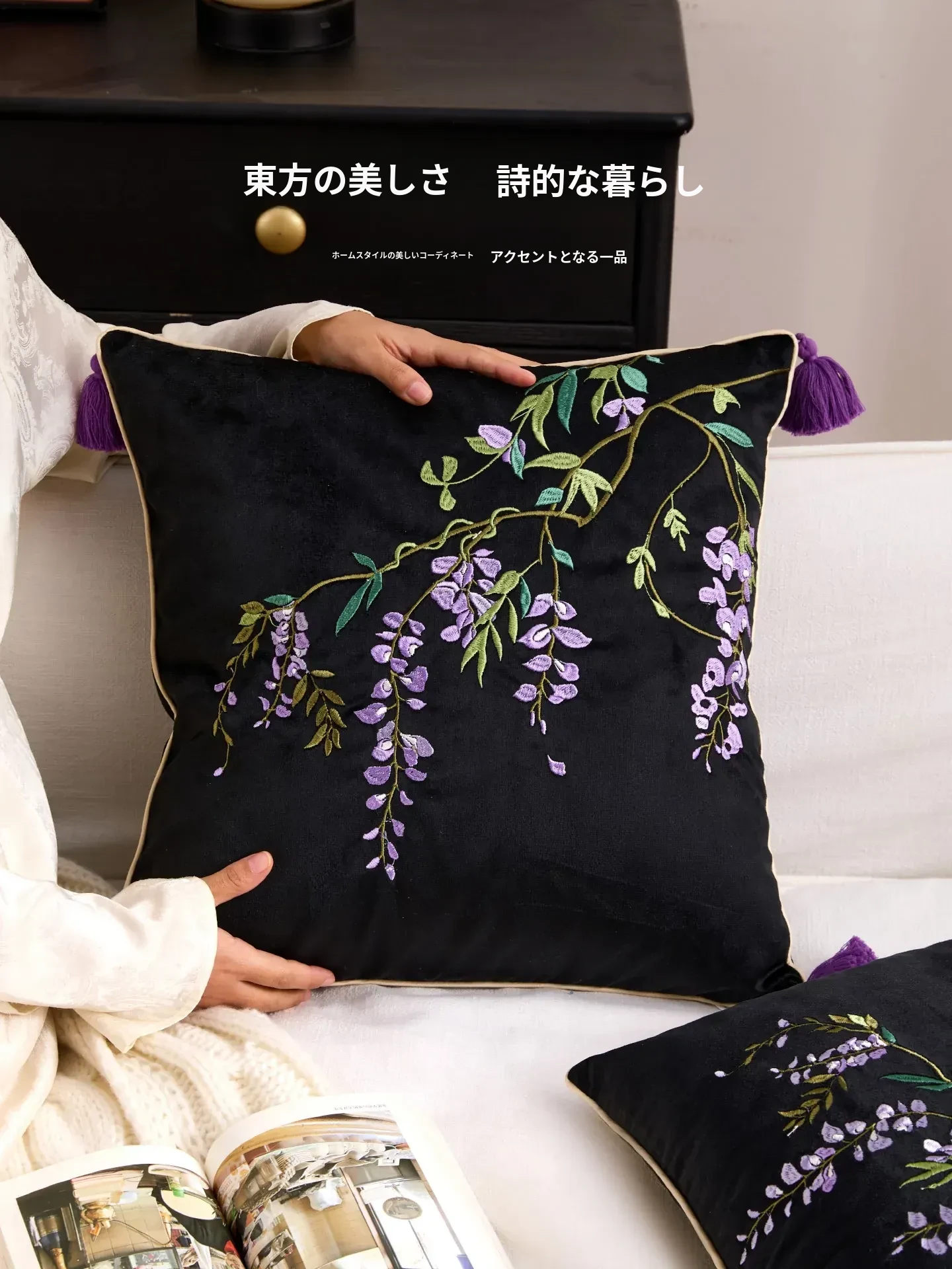 紫藤の滝刺繍クッション【45*45cmカバー+クッション芯】