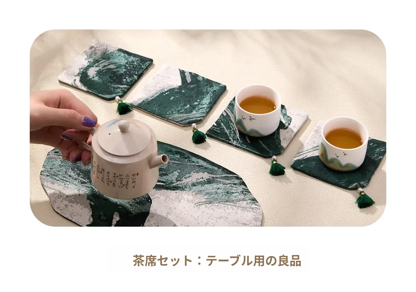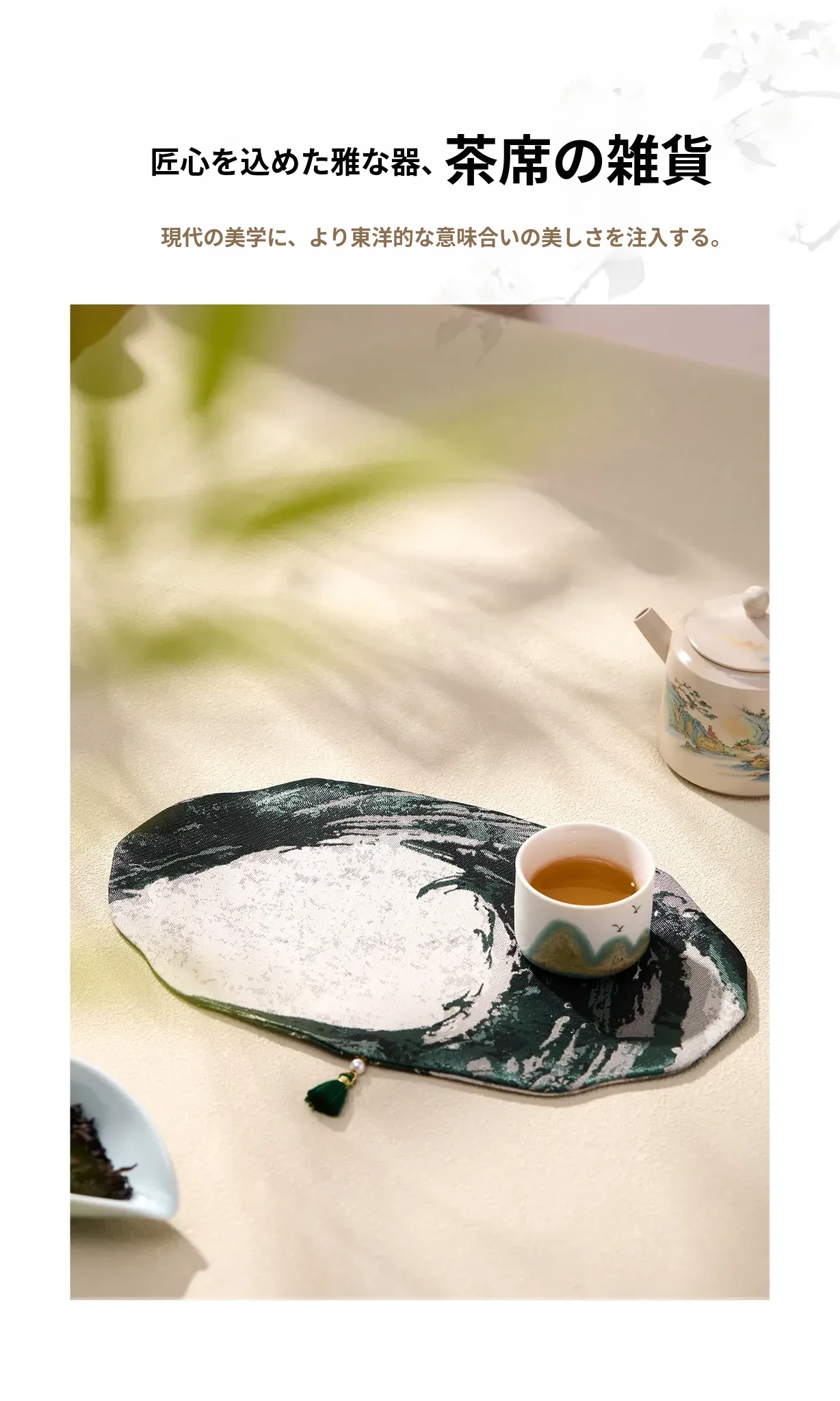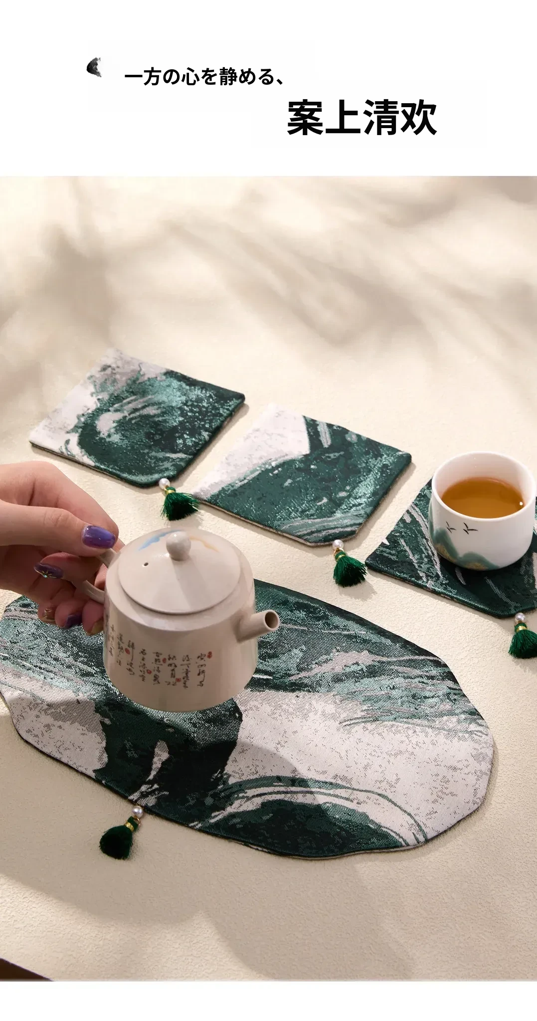 新中式茶道セット|高級感あふれる古風デザインの茶托・茶席・茶盤・カップマット|防水・テーブルを守る美しい布マットで、贅沢なティータイムを演出します!