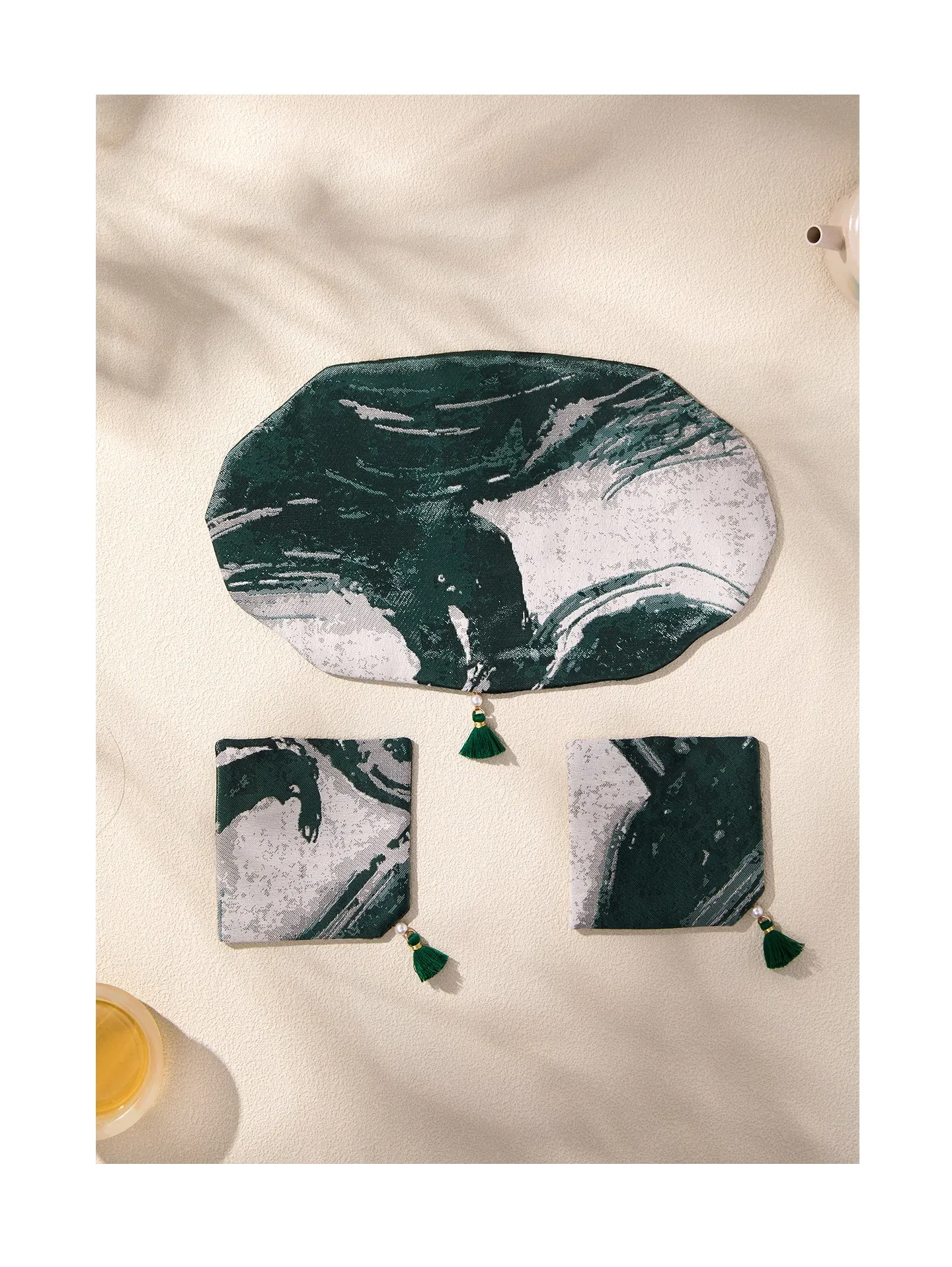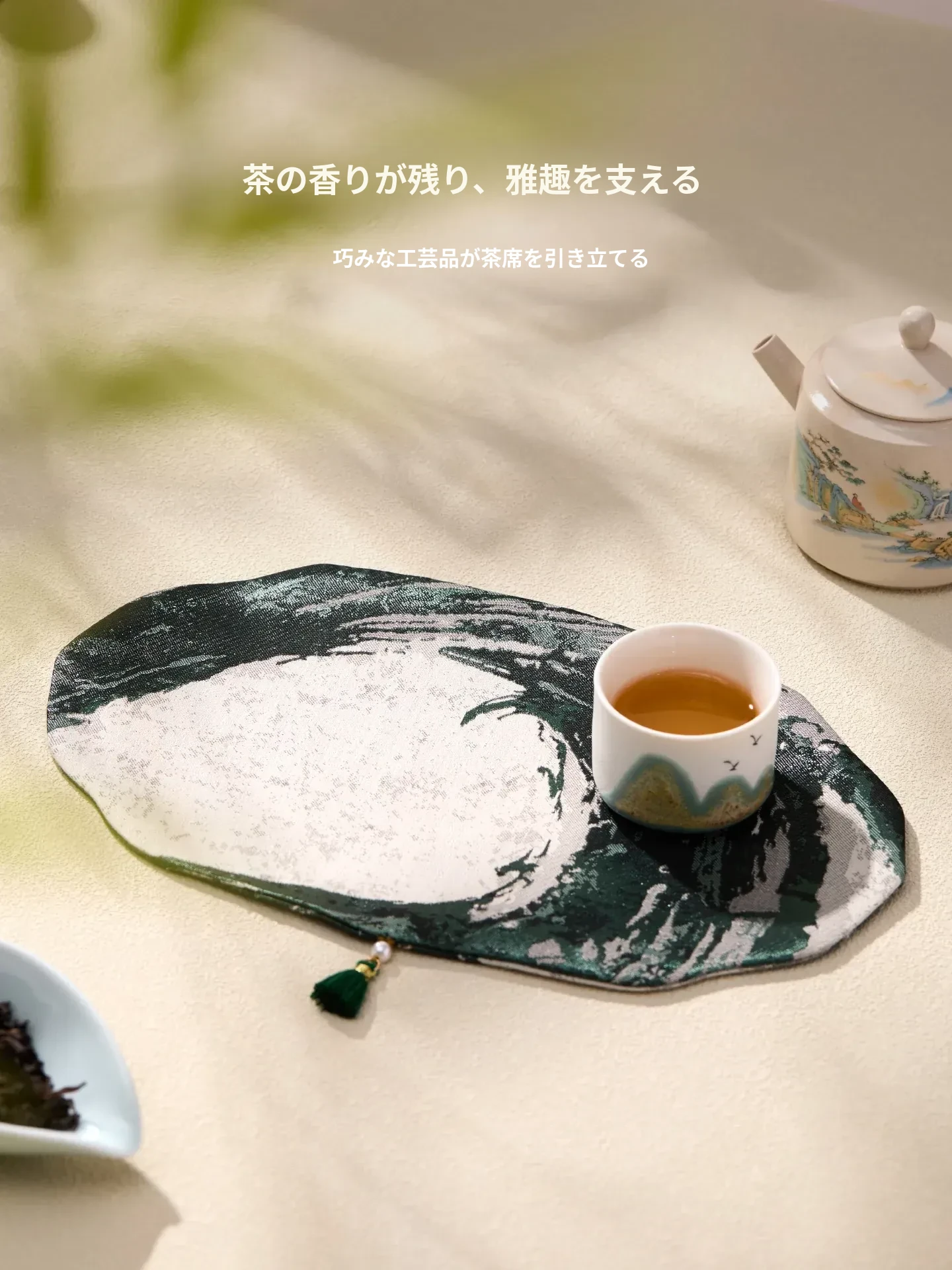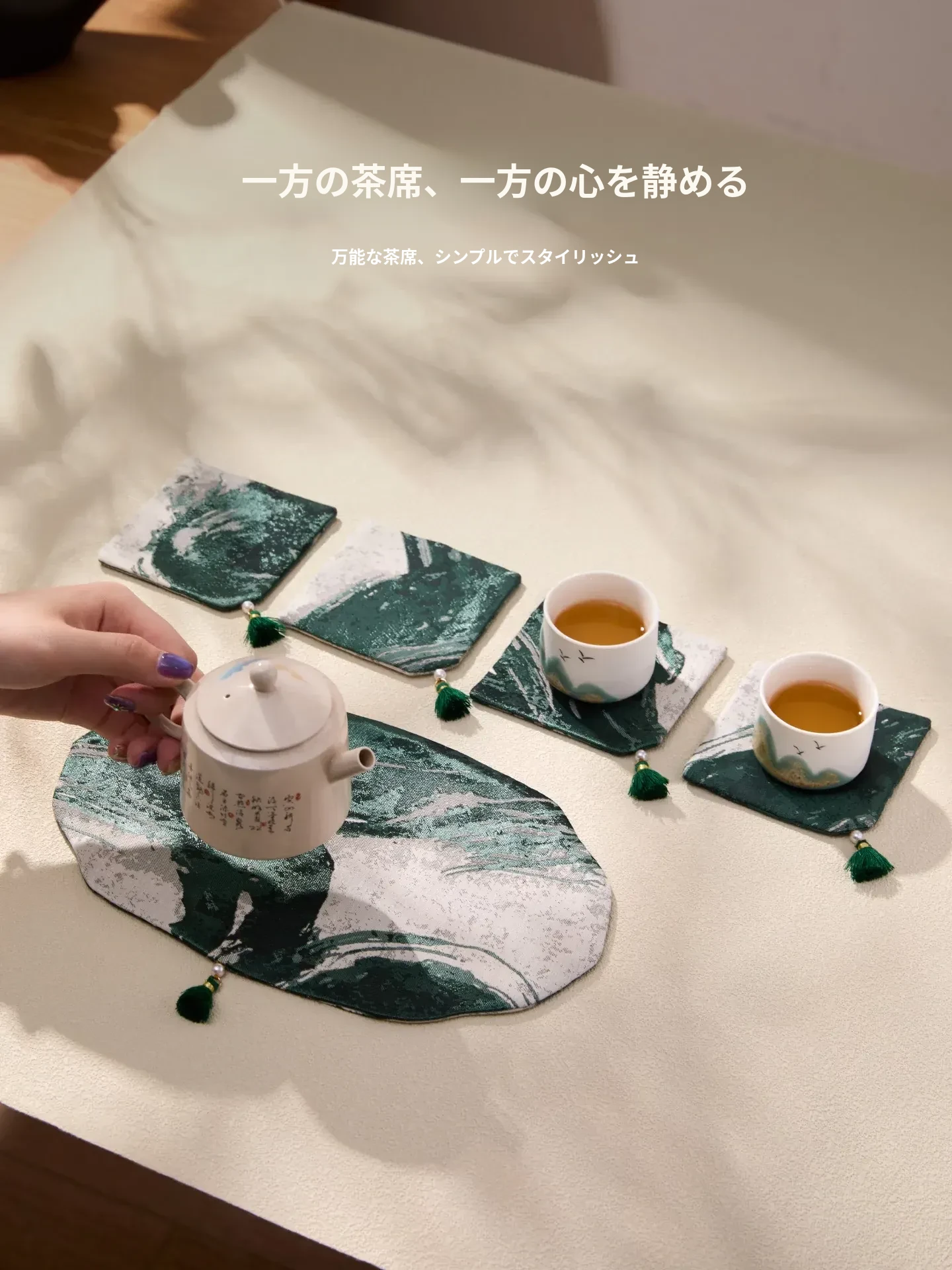 新中式茶道セット|高級感あふれる古風デザインの茶托・茶席・茶盤・カップマット|防水・テーブルを守る美しい布マットで、贅沢なティータイムを演出します!