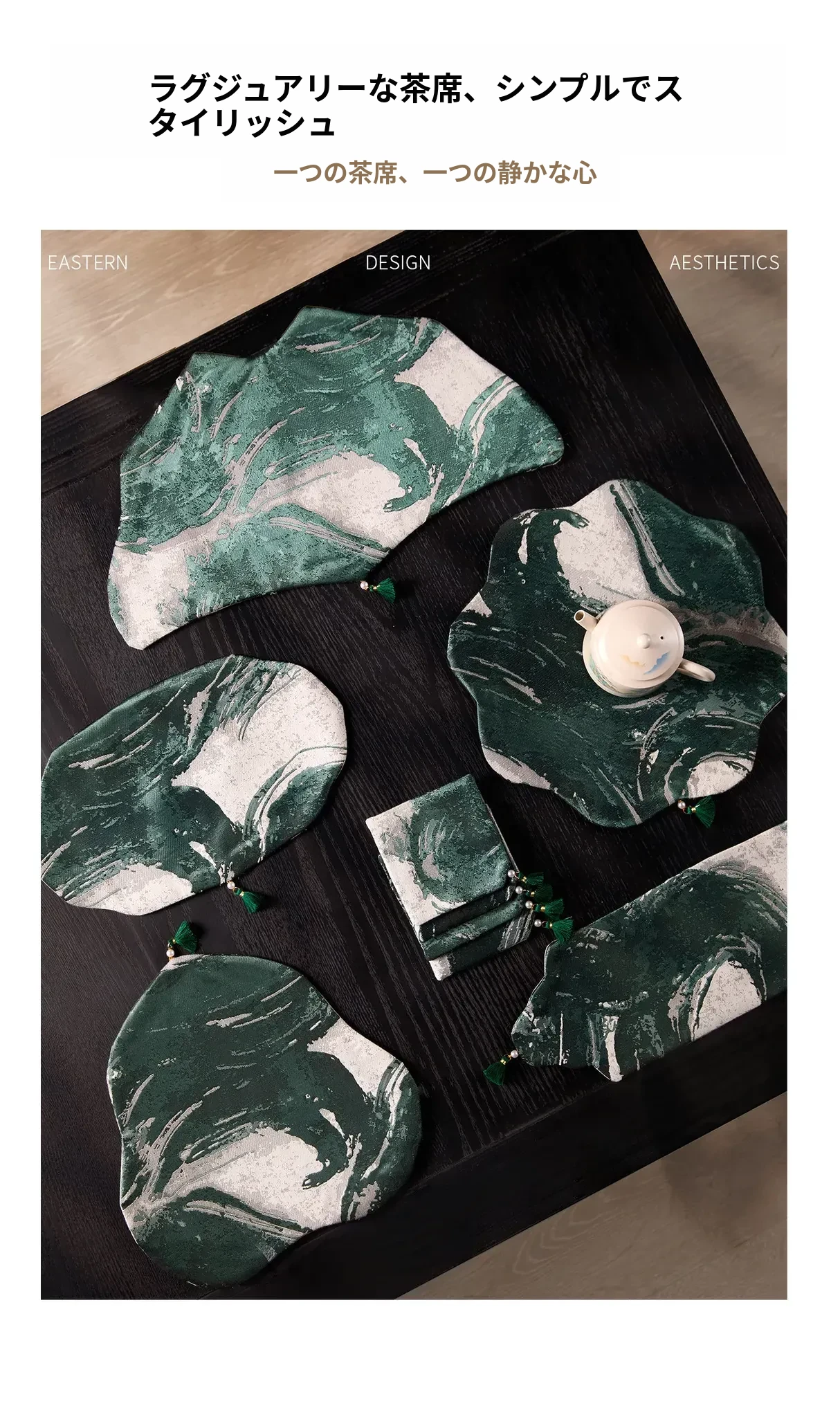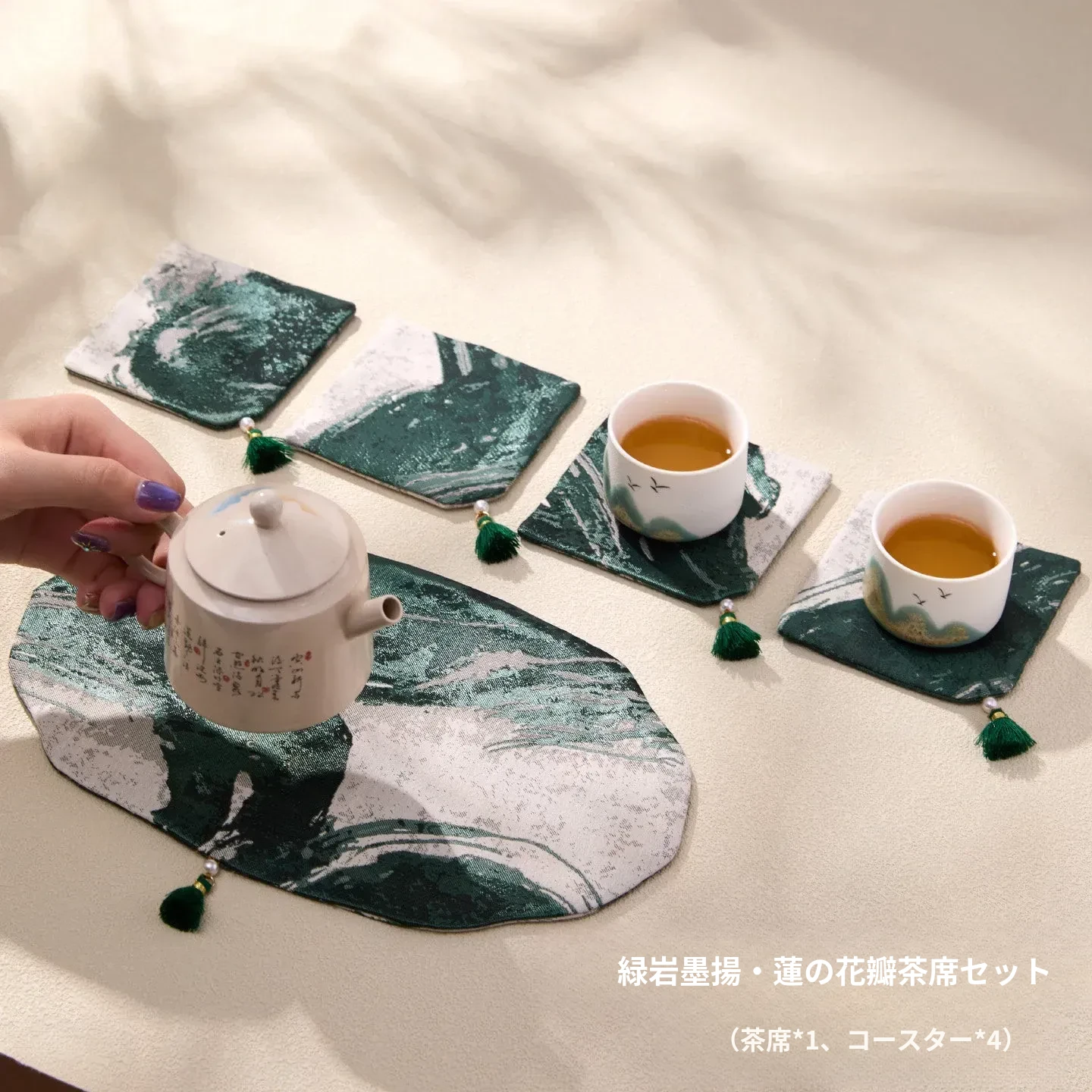 緑硯墨揚蓮瓣茶席セット二【26*16cm+9*9cm4個】