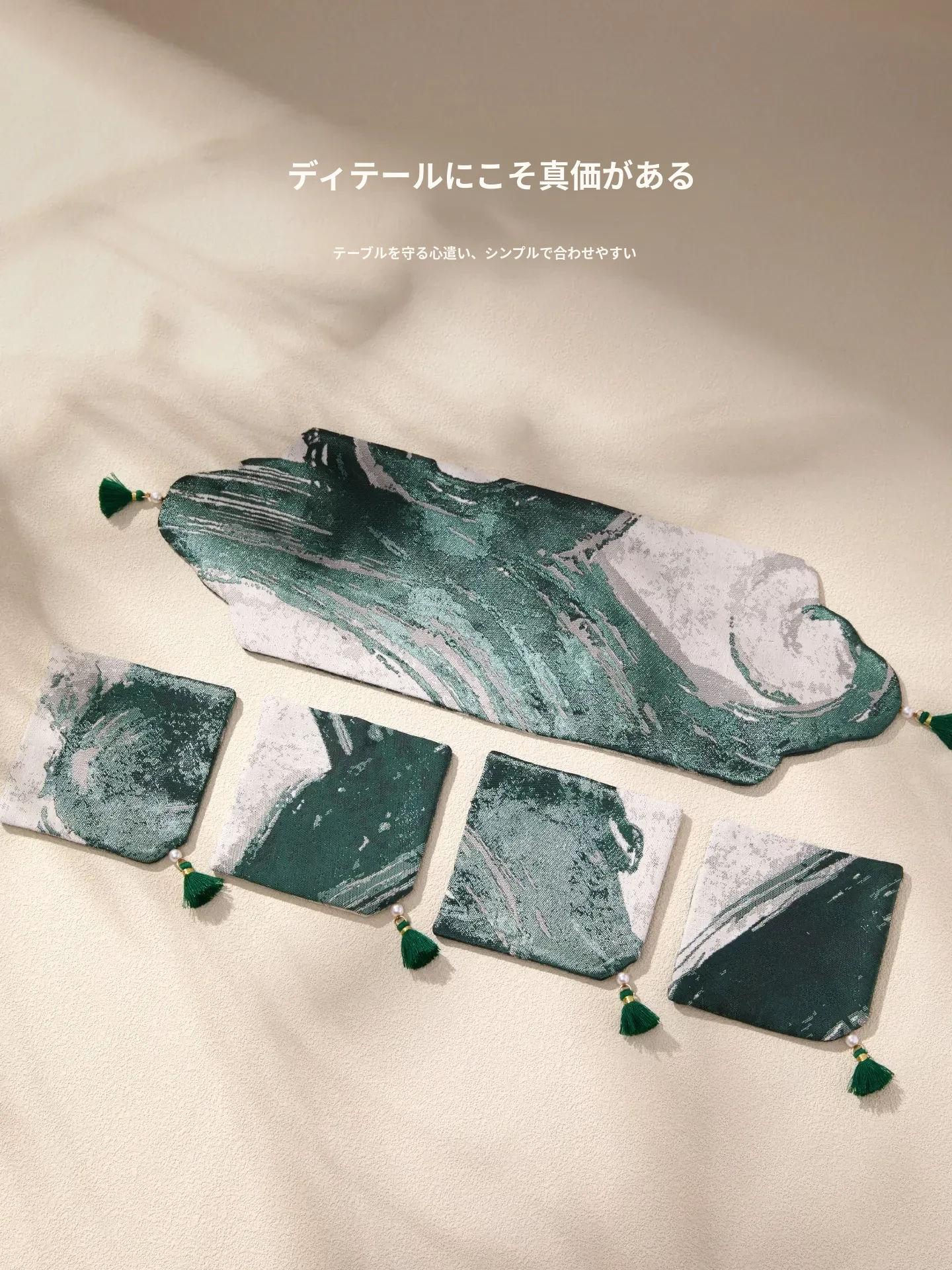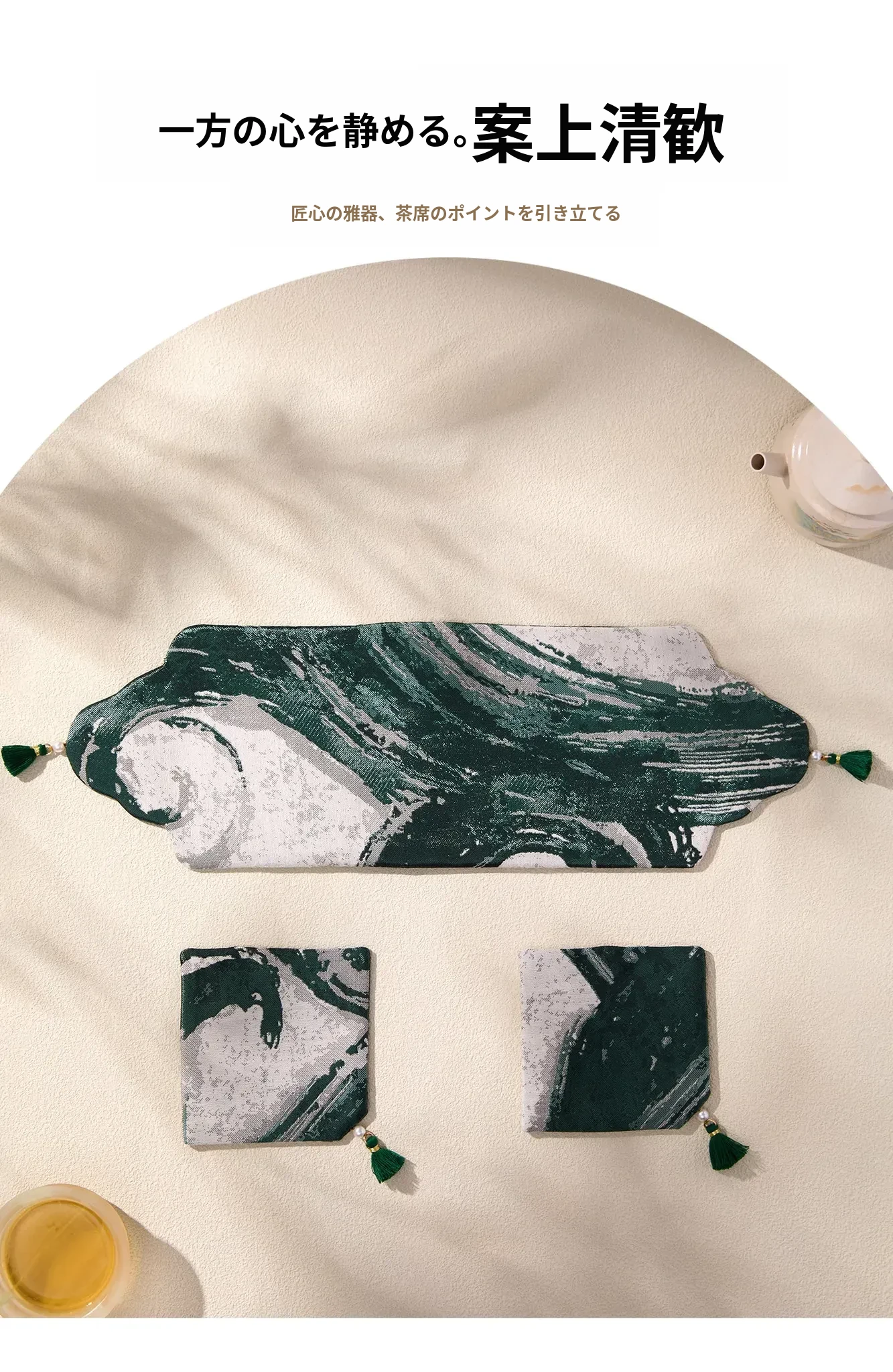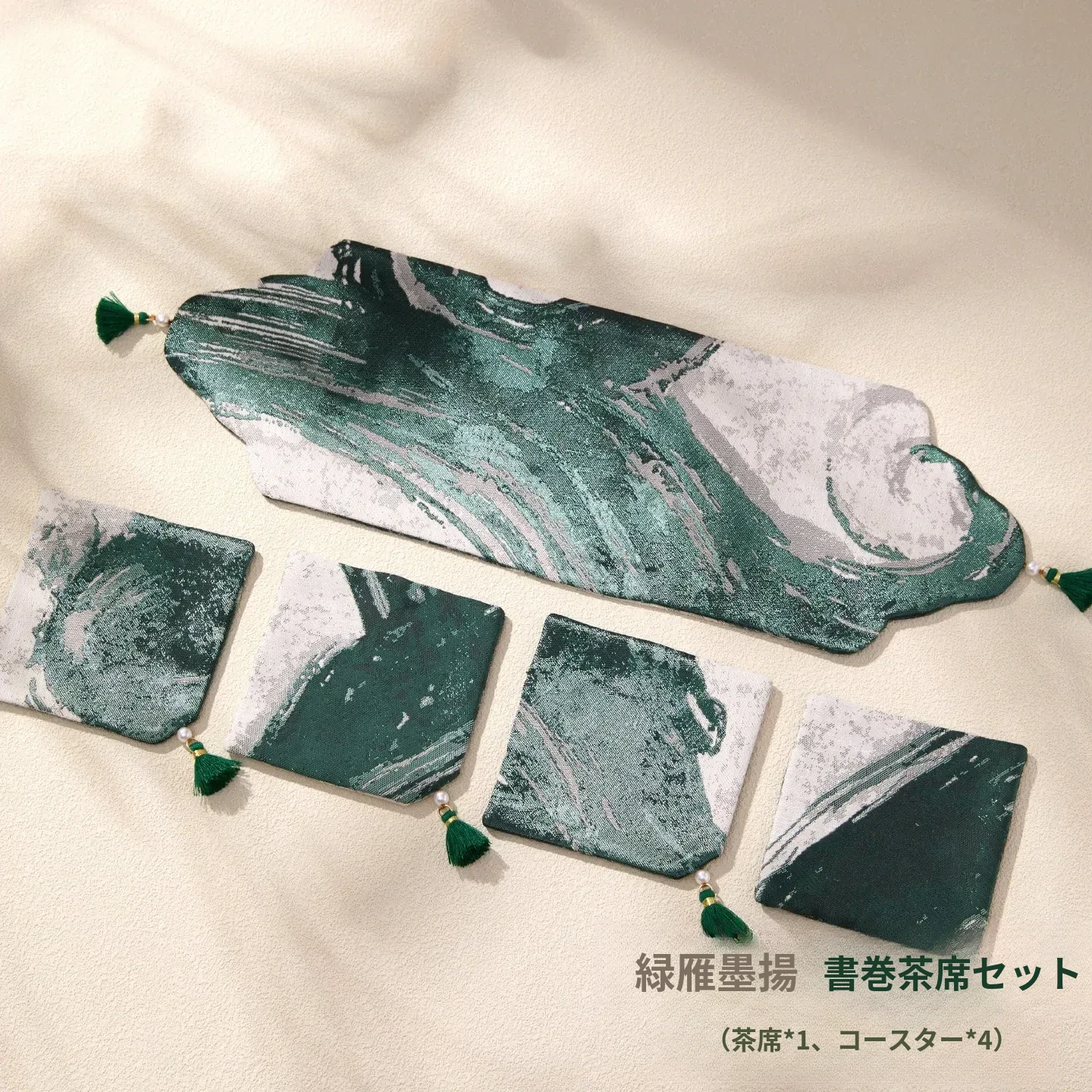 緑硯墨揚書巻茶席セット【35*11.5cm+9*9cm4個】