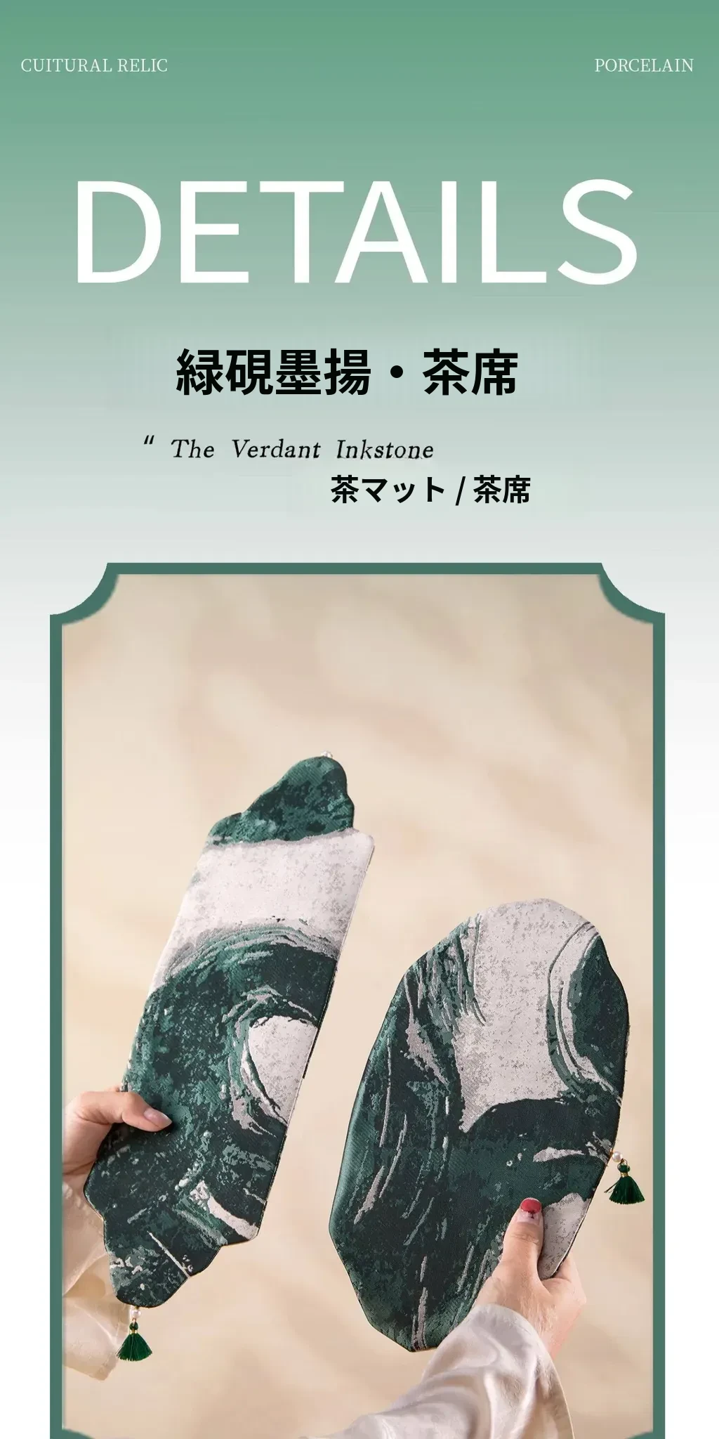 緑硯墨揚茶席セット【35*11.5cm+26*16cm】