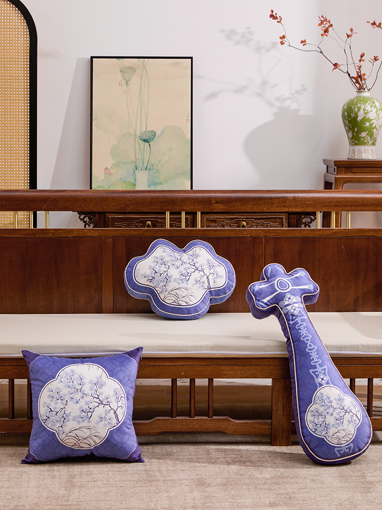 Blue and White Jade Pine Brocade Pillow-Xiangyun Shape