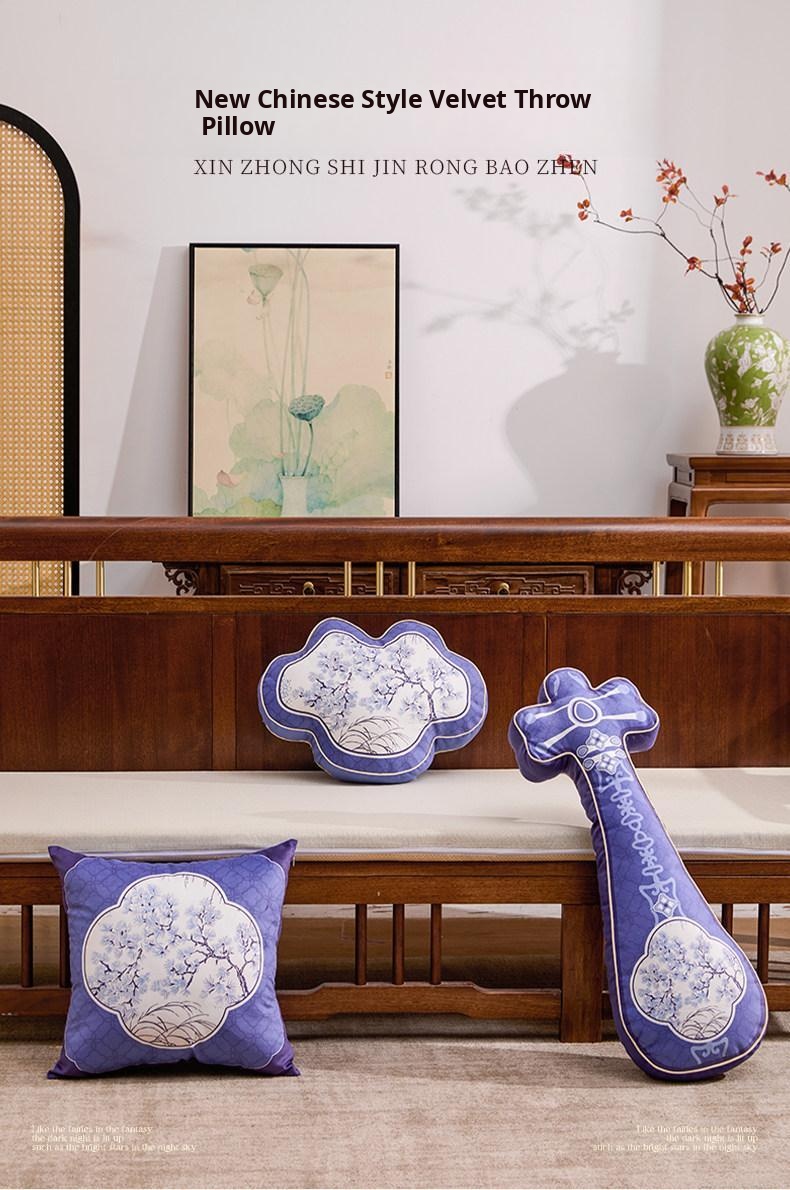 Elegant Retro Chinese Style Cloud Pattern Throw Pillow - Unique Shaped Waist Cushion for Living Room Sofa, Luxurious Bedroom and Study Decor, Perfect Back Support for a Touch of Sophistication