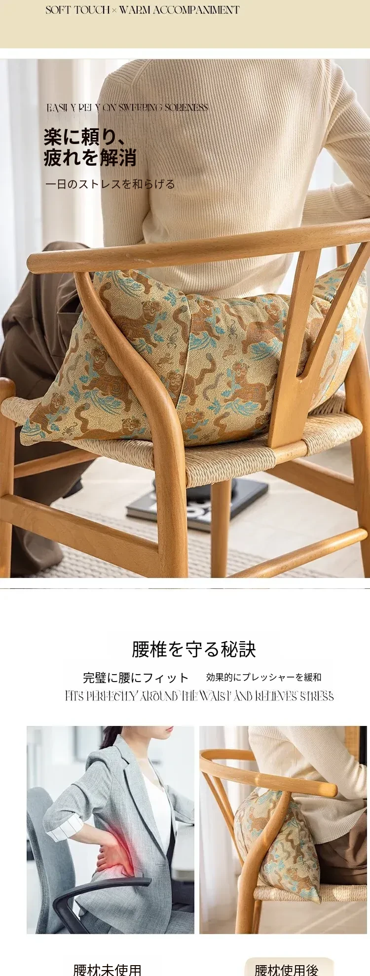 腰と首をしっかりサポート!オフィス用快適クッション - デスクワークをもっと楽にする、リラックスできるお昼寝枕付き。あなたの椅子にぴったりフィット!