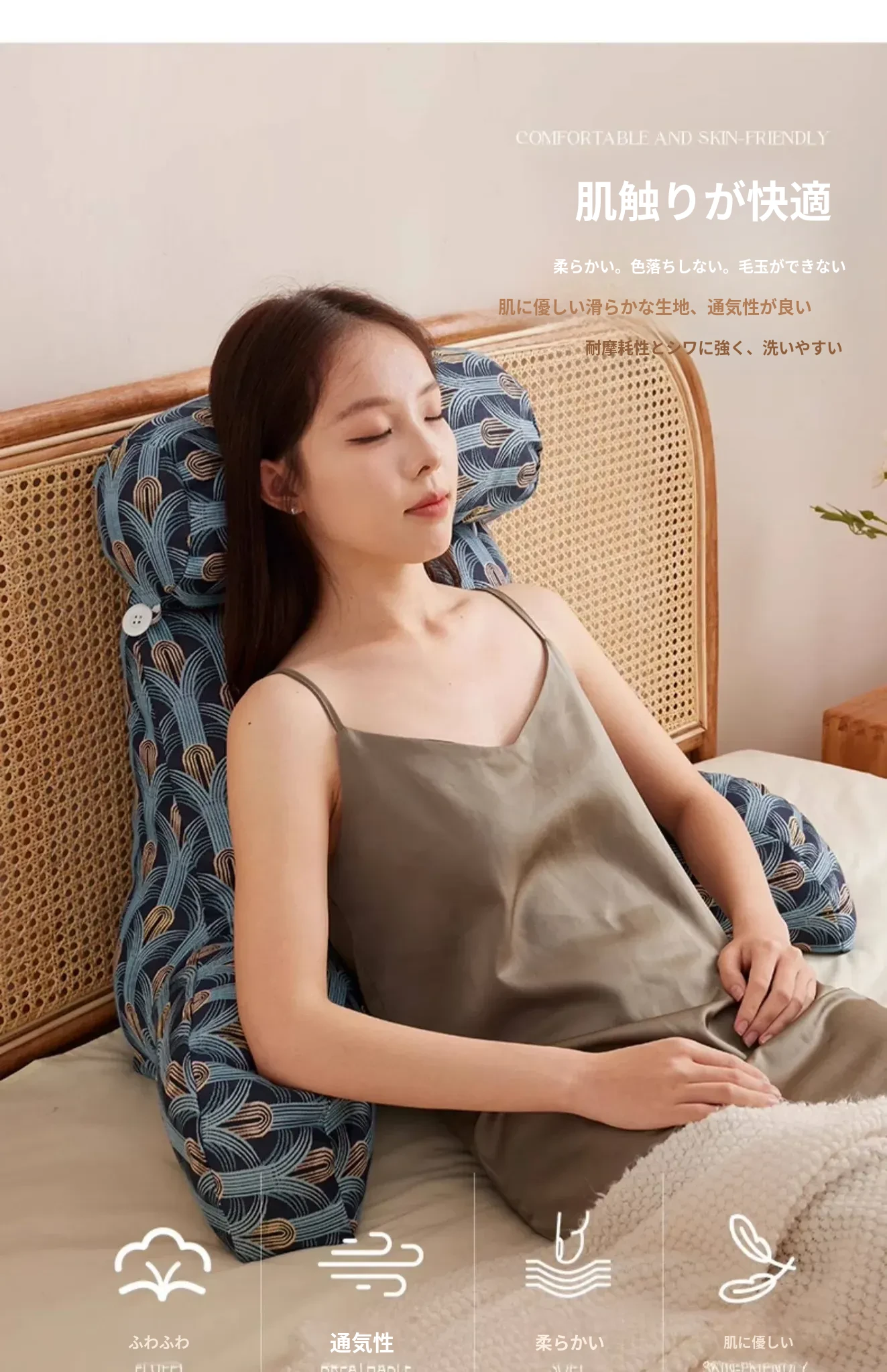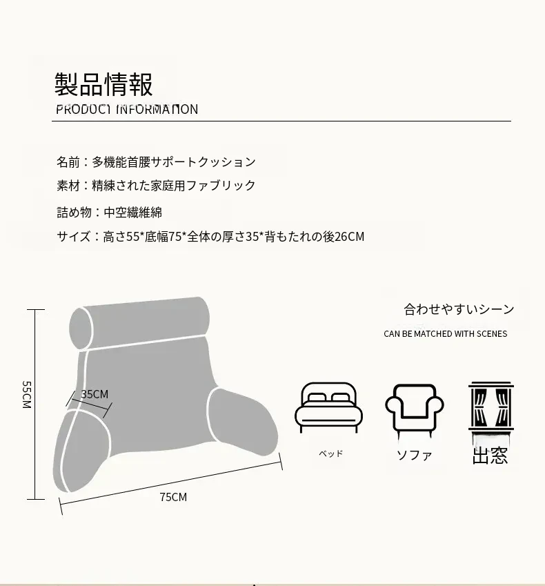 超大サイズの柔らかいベッドサイドクッション - 首と腰を守る、斜めに寄りかかれるデザイン!ソファやベッドにぴったりの抱き枕、快適なひとときをお届けします。