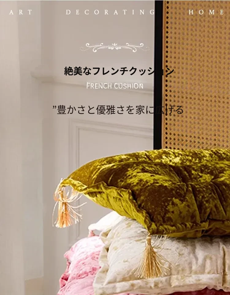 シルクベルベットフランス風クッションゴールド