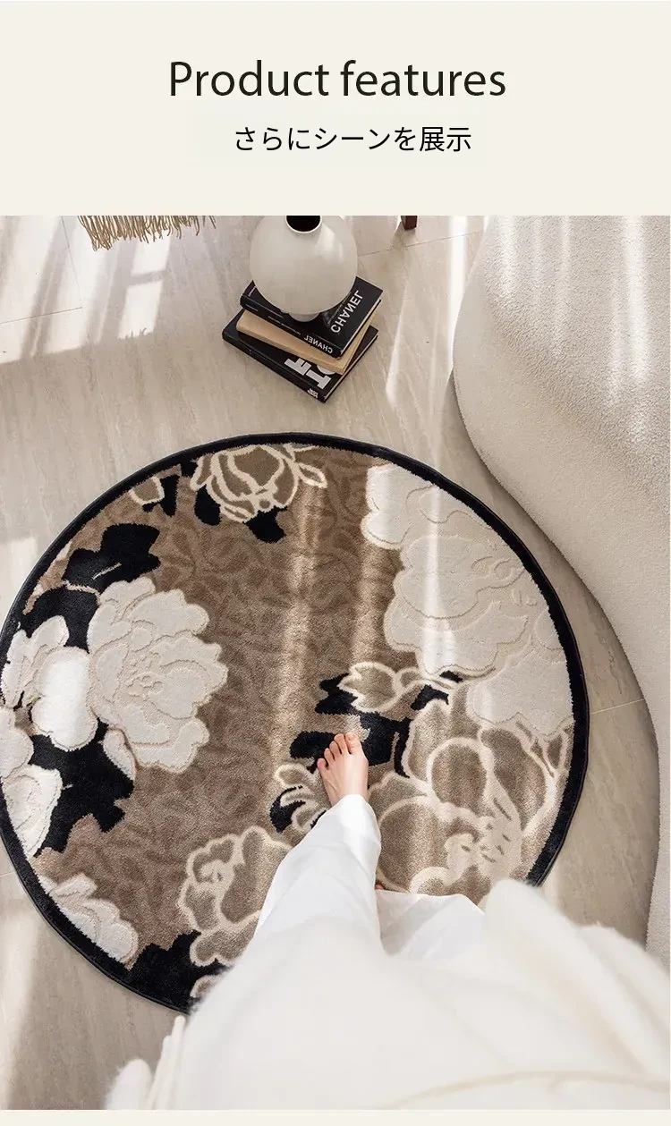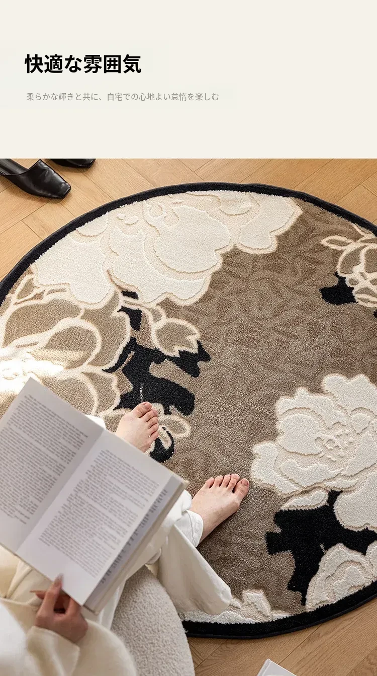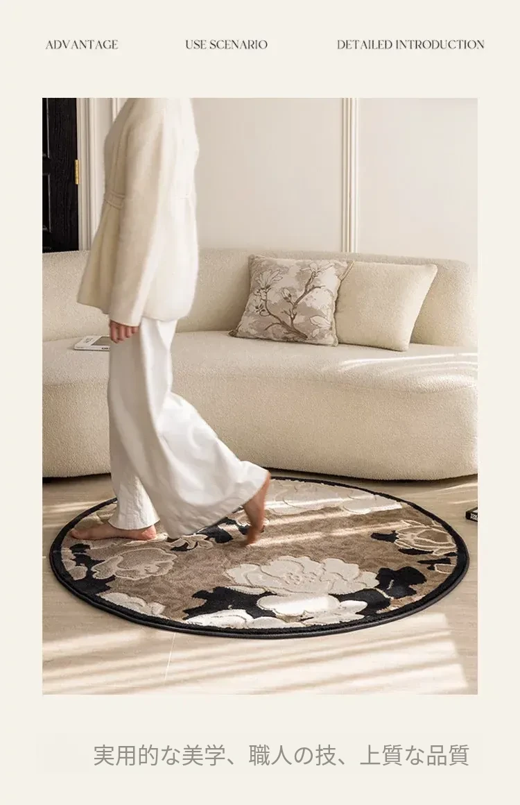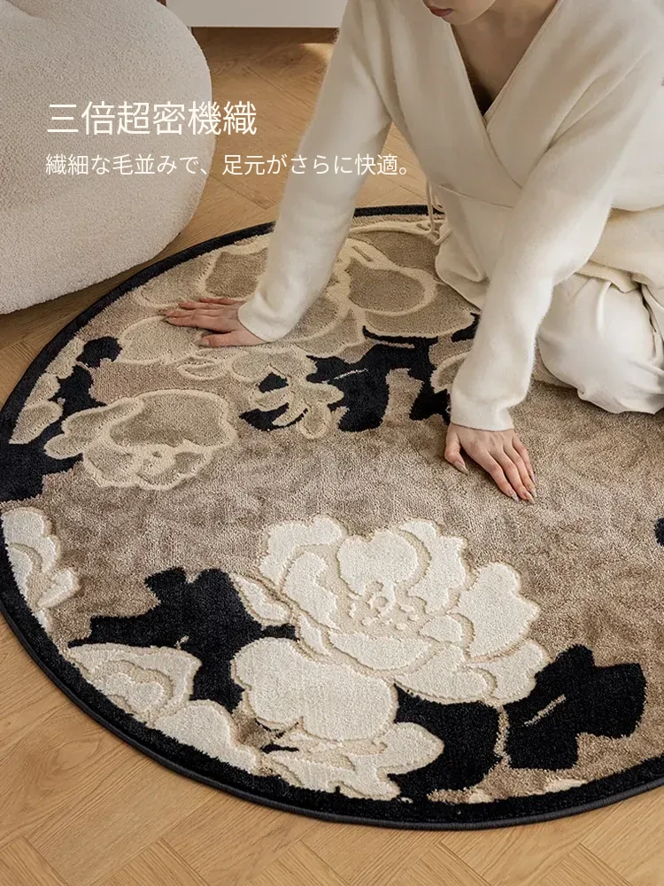 フレンチヴィンテージ円形ラグ|高級感溢れるベッドサイドマット|耐久性抜群のリビングソファ・テーブル用カーペット|椅子やバルコニーにぴったり!おしゃれな空間を演出します。
