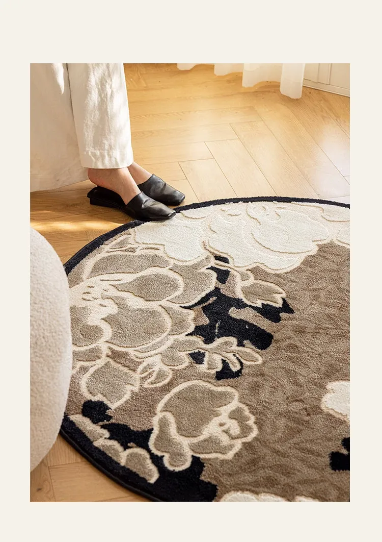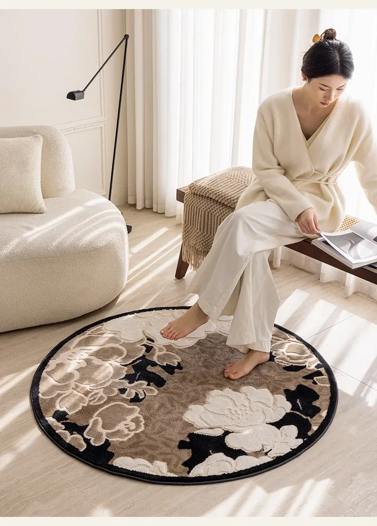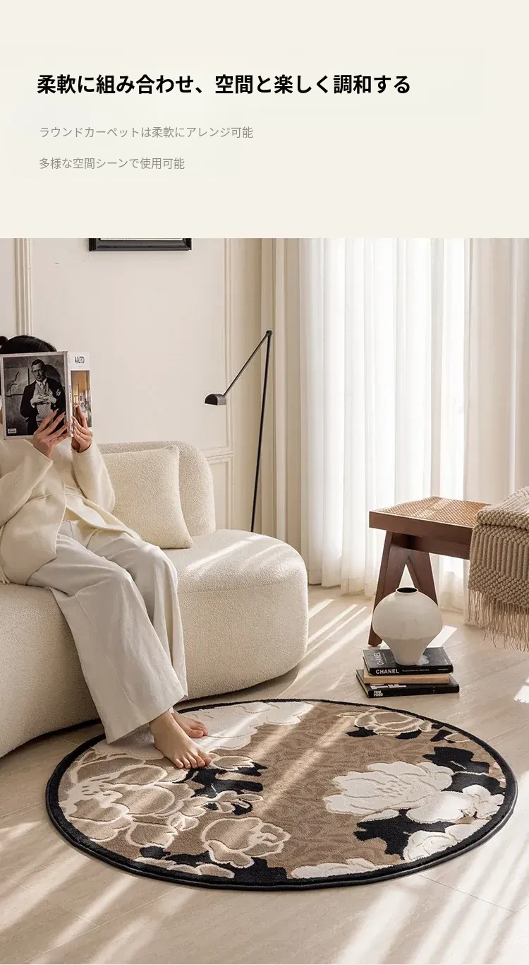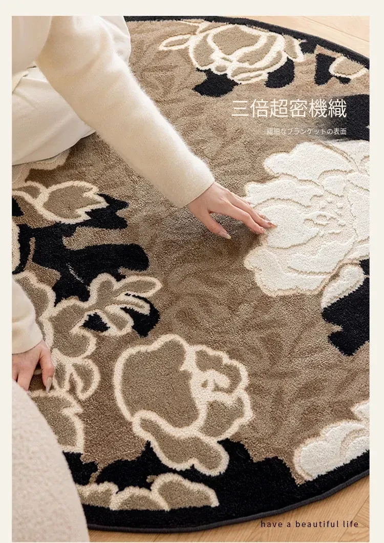 フレンチヴィンテージ円形ラグ|高級感溢れるベッドサイドマット|耐久性抜群のリビングソファ・テーブル用カーペット|椅子やバルコニーにぴったり!おしゃれな空間を演出します。