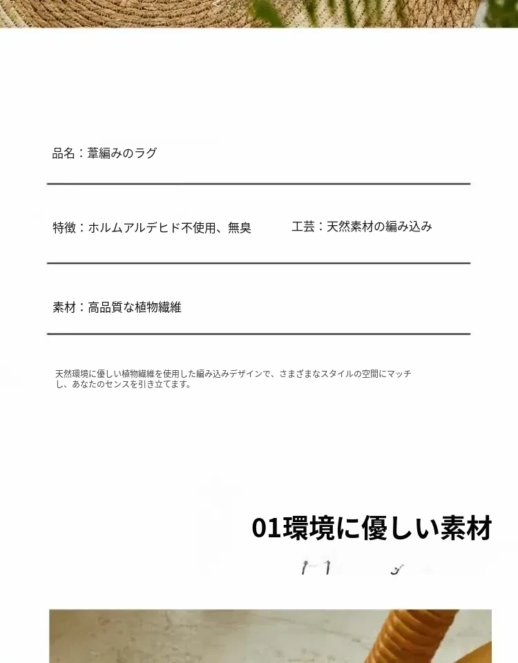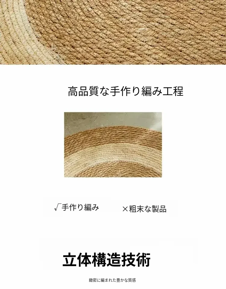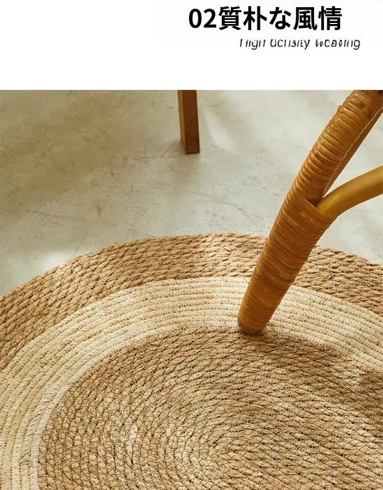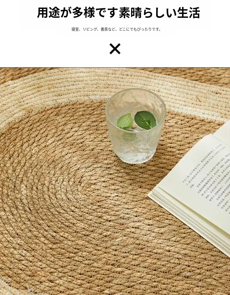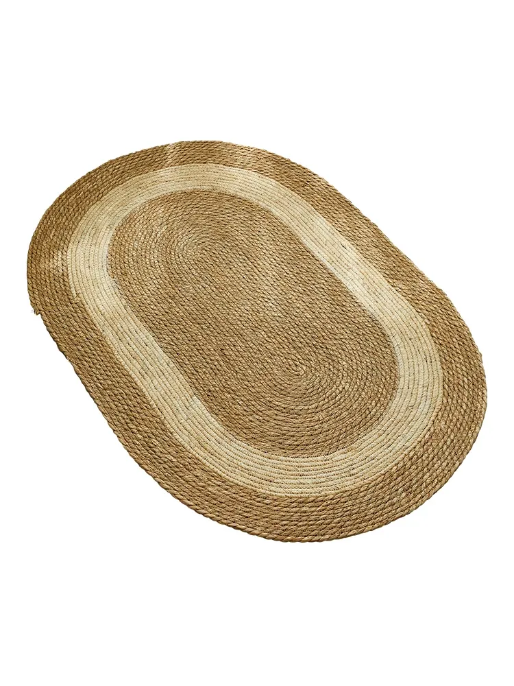 天然素材の藤編みラグマット - おしゃれな楕円形デザインで、寝室や民宿のインテリアに最適!茶卓や畳、窓辺にぴったりなカーペットで、心地よい空間を演出します。