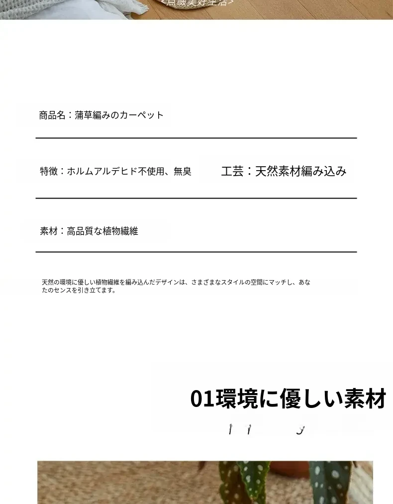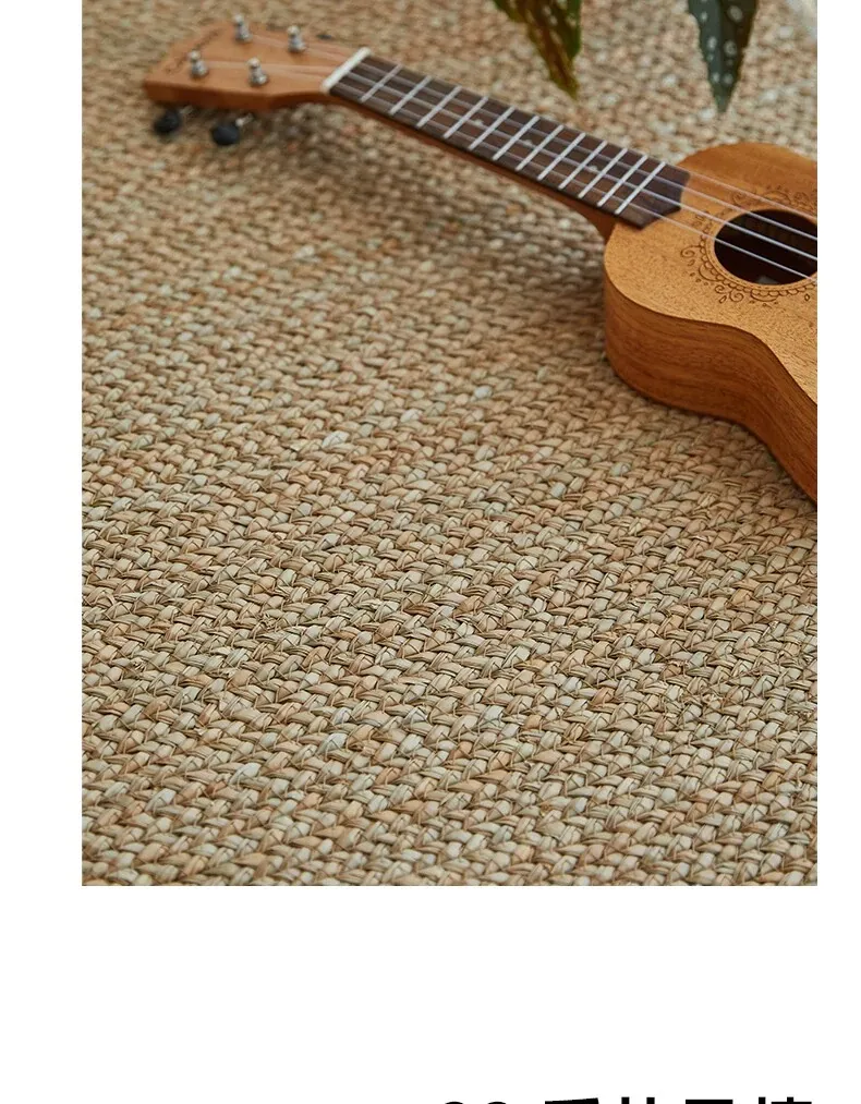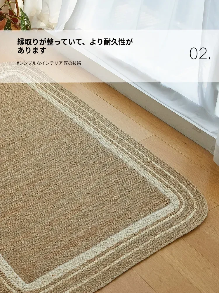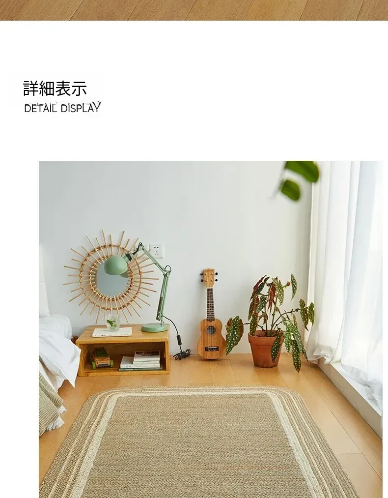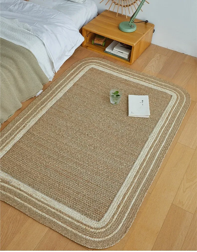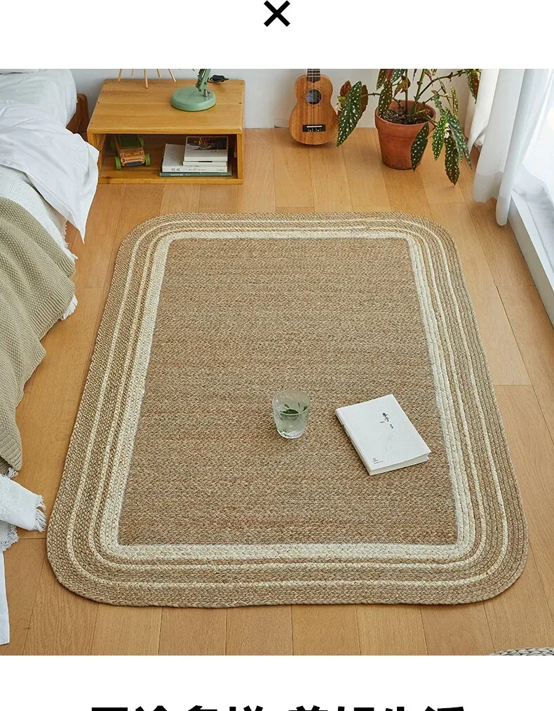 手作の草編みラグマット - 厚手デザインで客間やソファにぴったり!高級感あふれる民宿スタイルのベッドサイドマット。リラックス空間を演出するおしゃれアイテム!