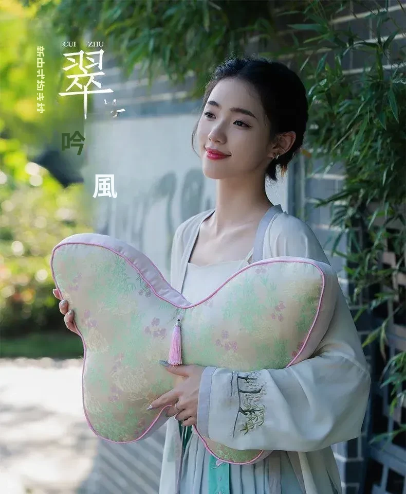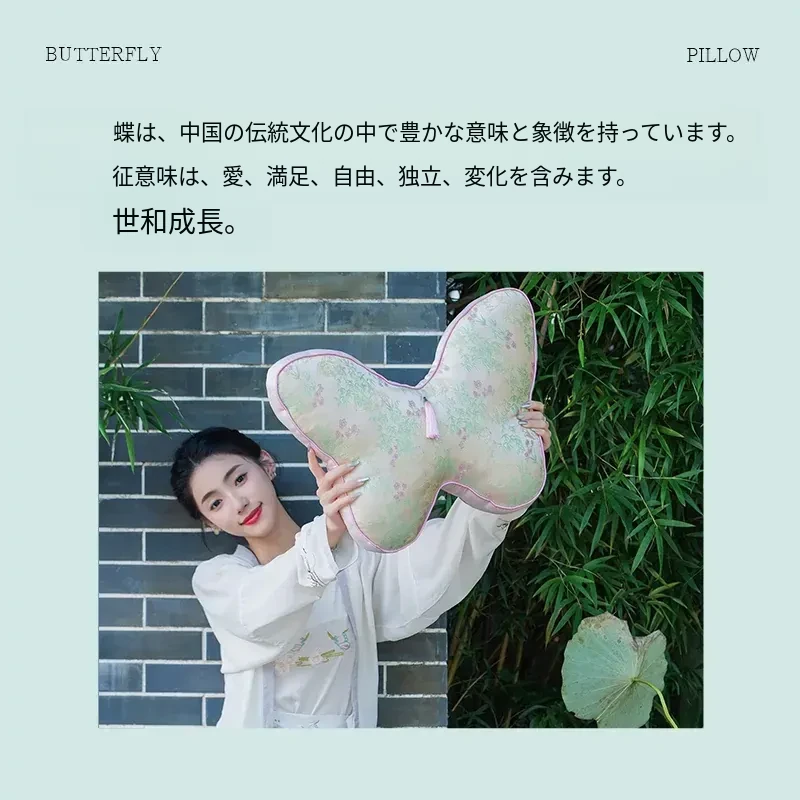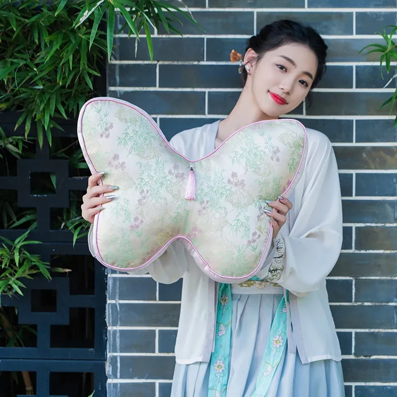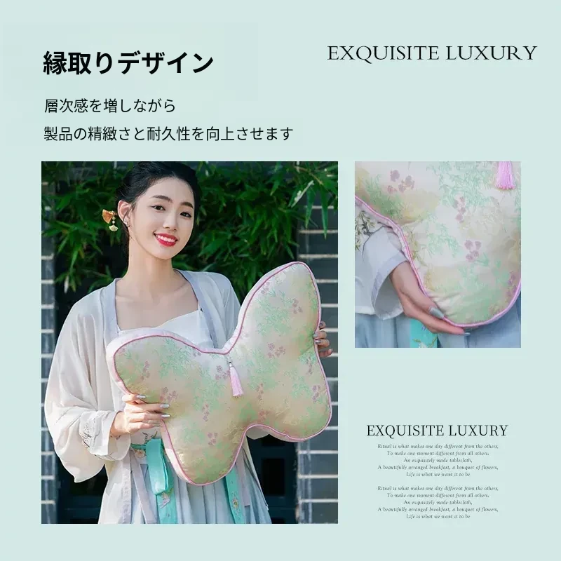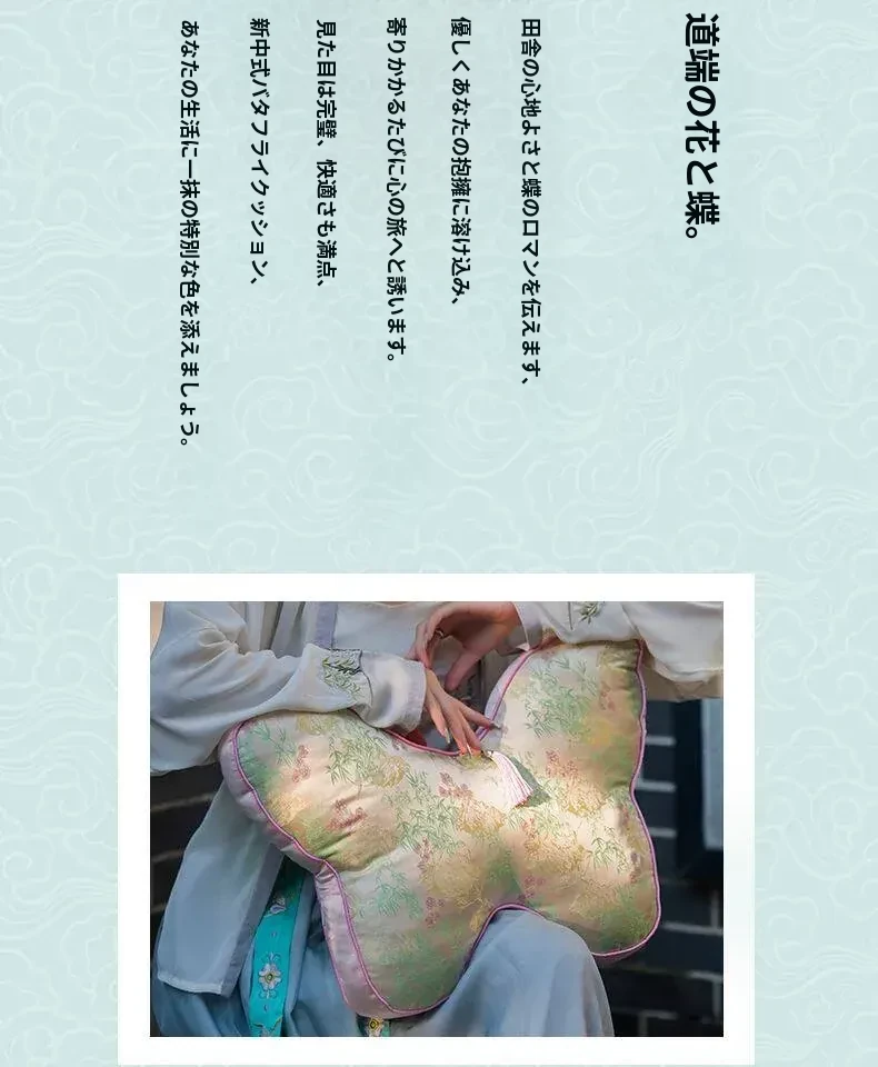新中式刺繍入り蝶のデザインクッション - レッドウッドソファ用、ベッドヘッドにも最適!腰をサポートするクッションカバー付き、心を和ませる中国風インテリアにぴったり!