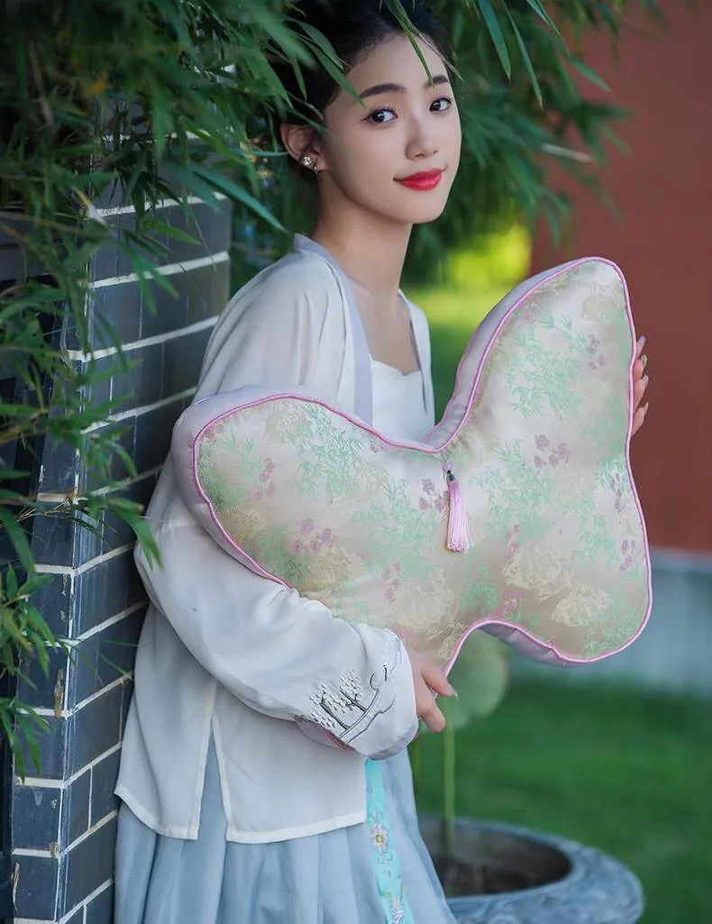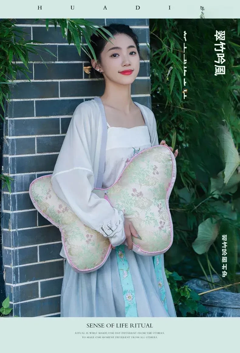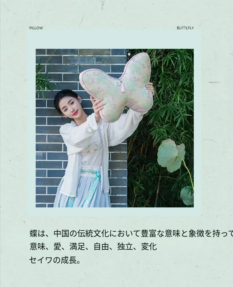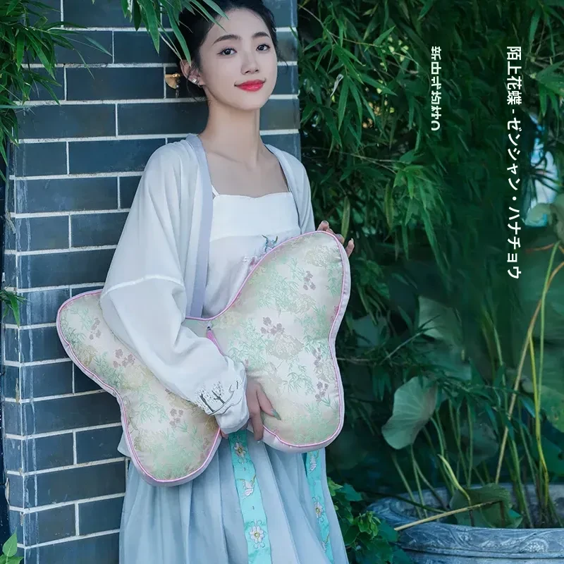 新中式刺繍入り蝶のデザインクッション - レッドウッドソファ用、ベッドヘッドにも最適!腰をサポートするクッションカバー付き、心を和ませる中国風インテリアにぴったり!