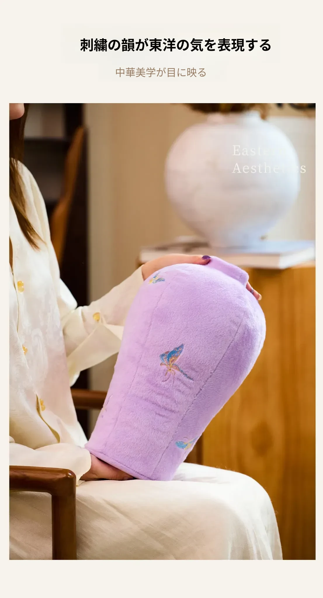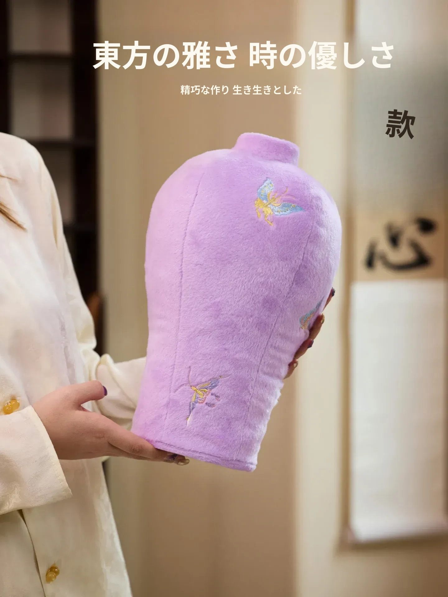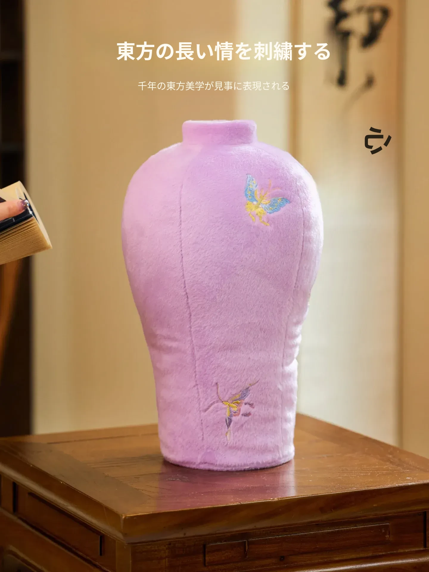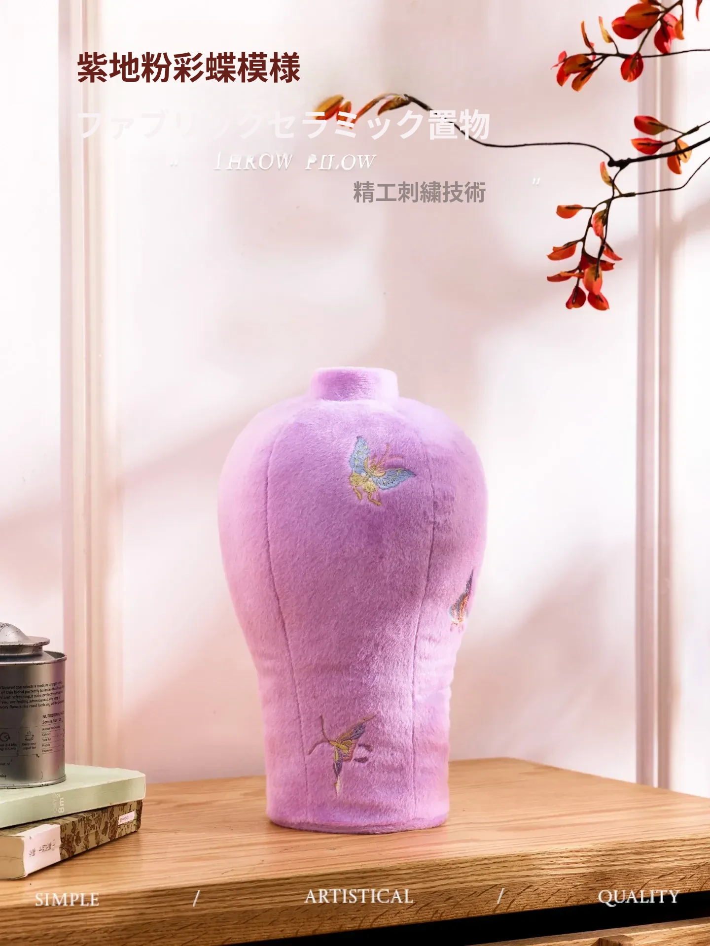 新中式刺繍花瓶クッション - 中国風のデザインで、リビングにぴったりなユニークなデスクトップインテリア!紫色の蝶が華やかさを演出する、心温まる毛布のようなプレゼントに最適!