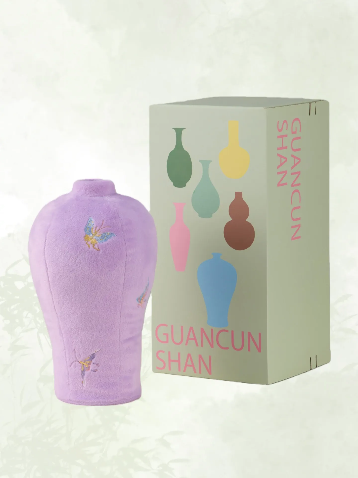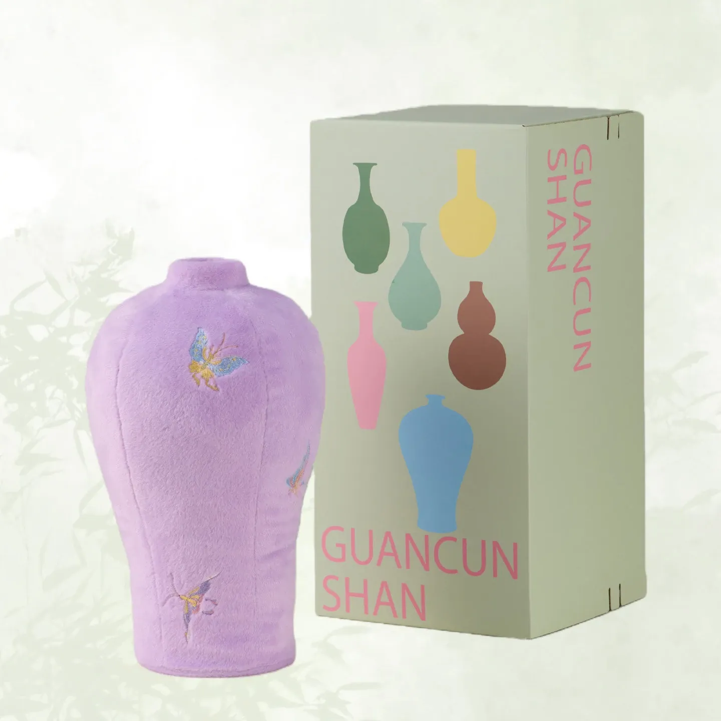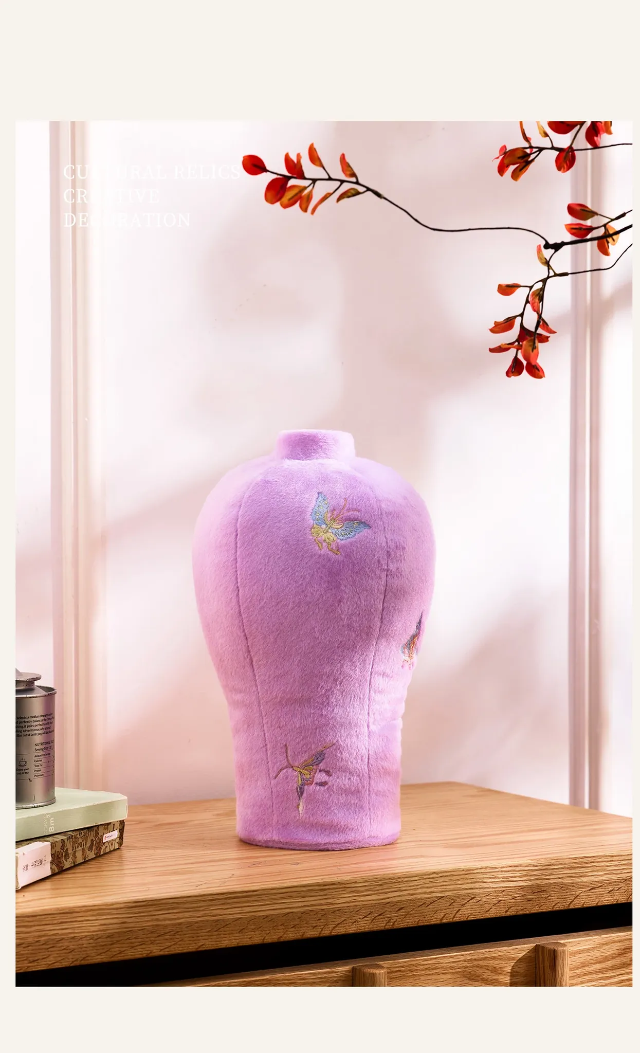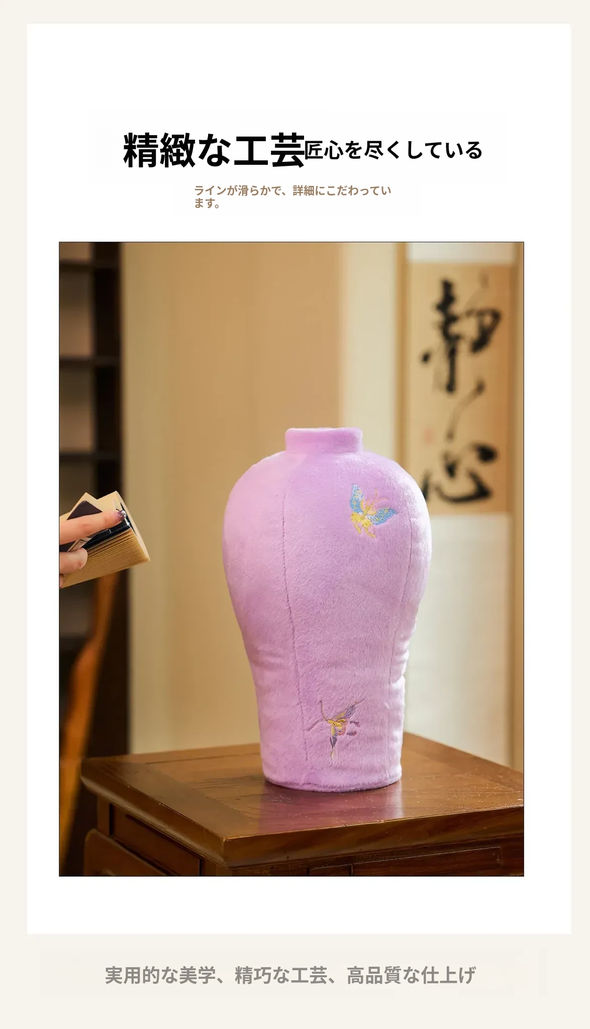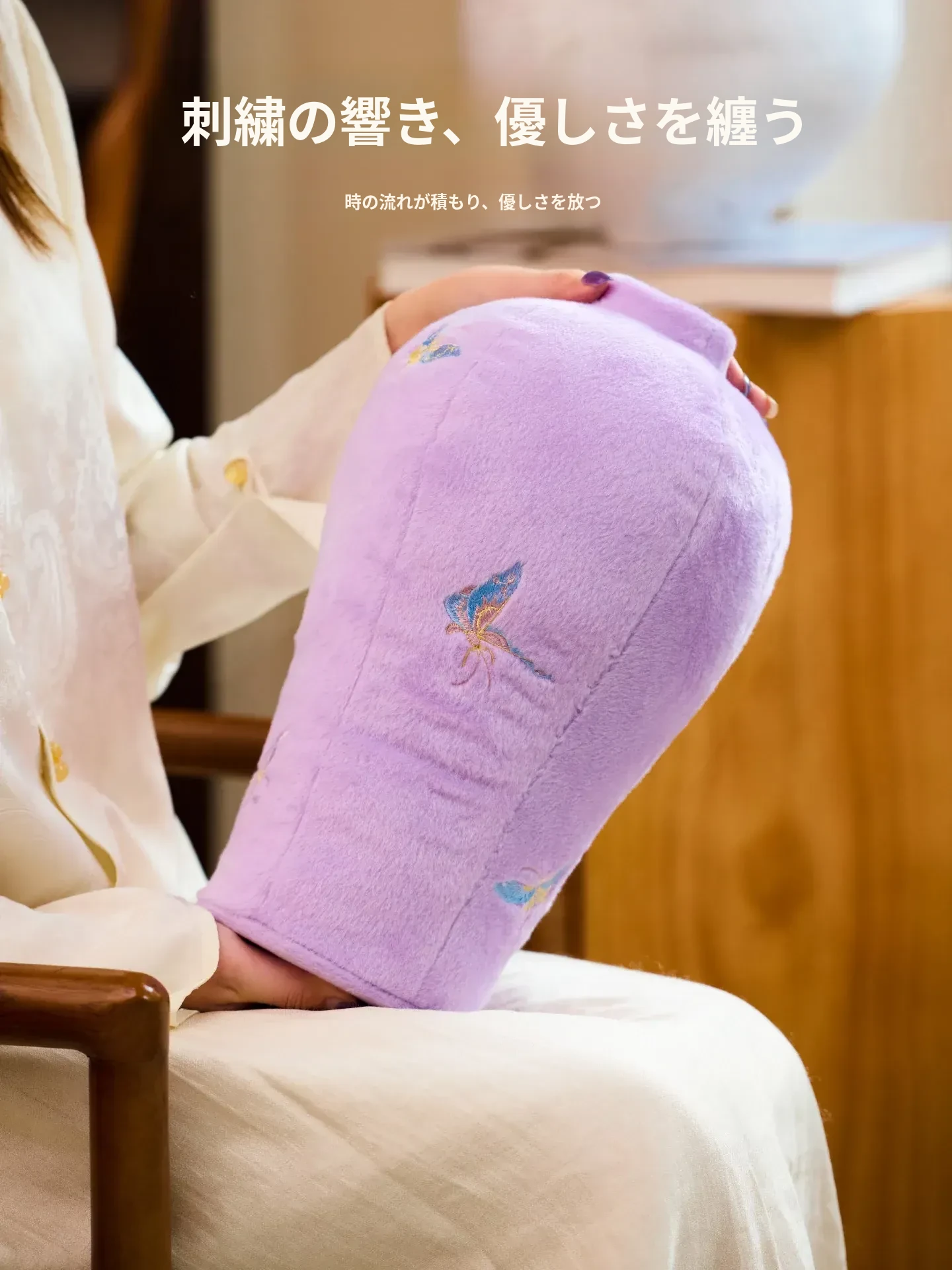 新中式刺繍花瓶クッション - 中国風のデザインで、リビングにぴったりなユニークなデスクトップインテリア!紫色の蝶が華やかさを演出する、心温まる毛布のようなプレゼントに最適!