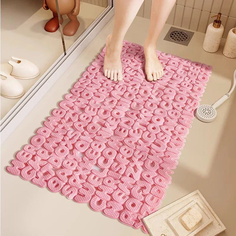 子供向け英字アルファベット吸盤バスルームマット - ピンク
