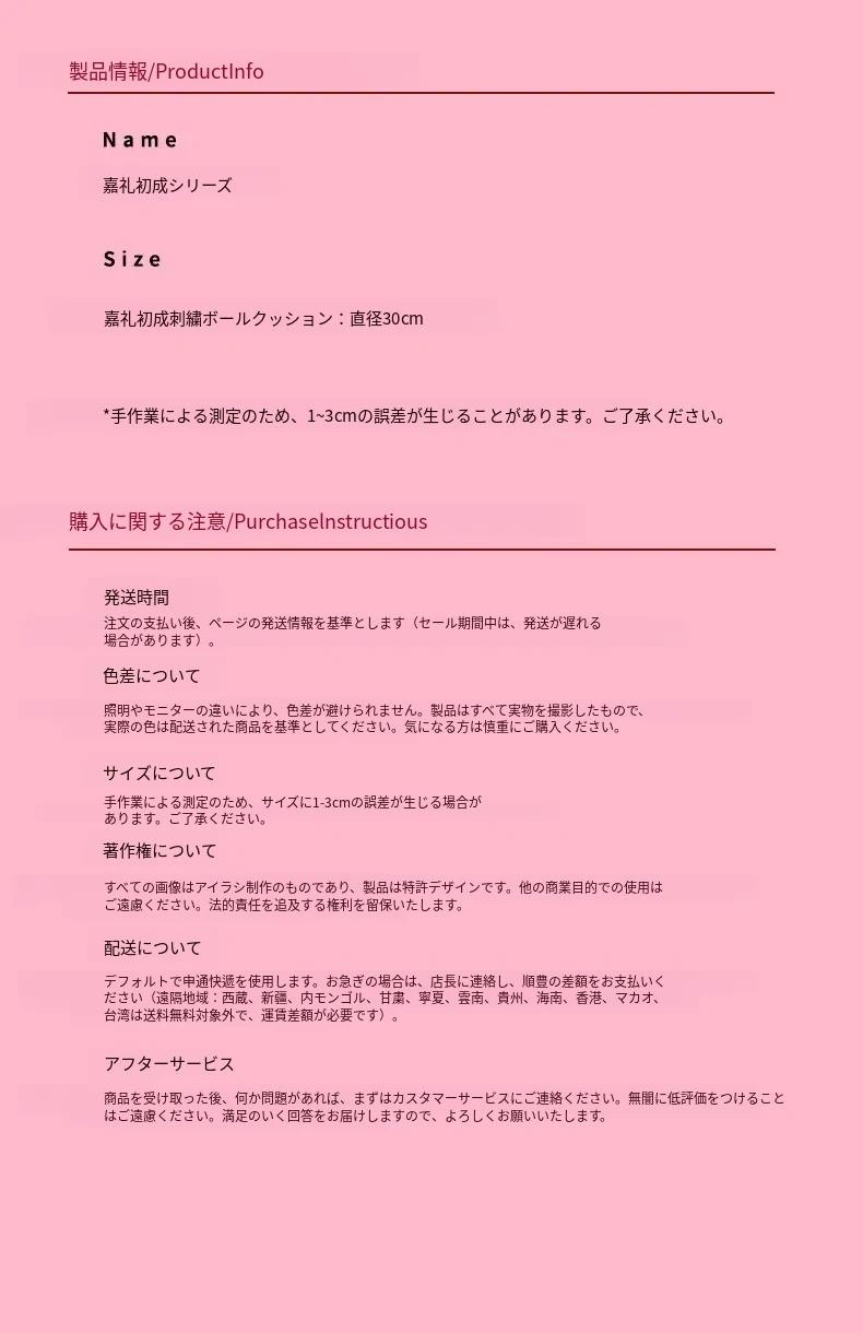 嘉礼初成刺繍ボールクッション