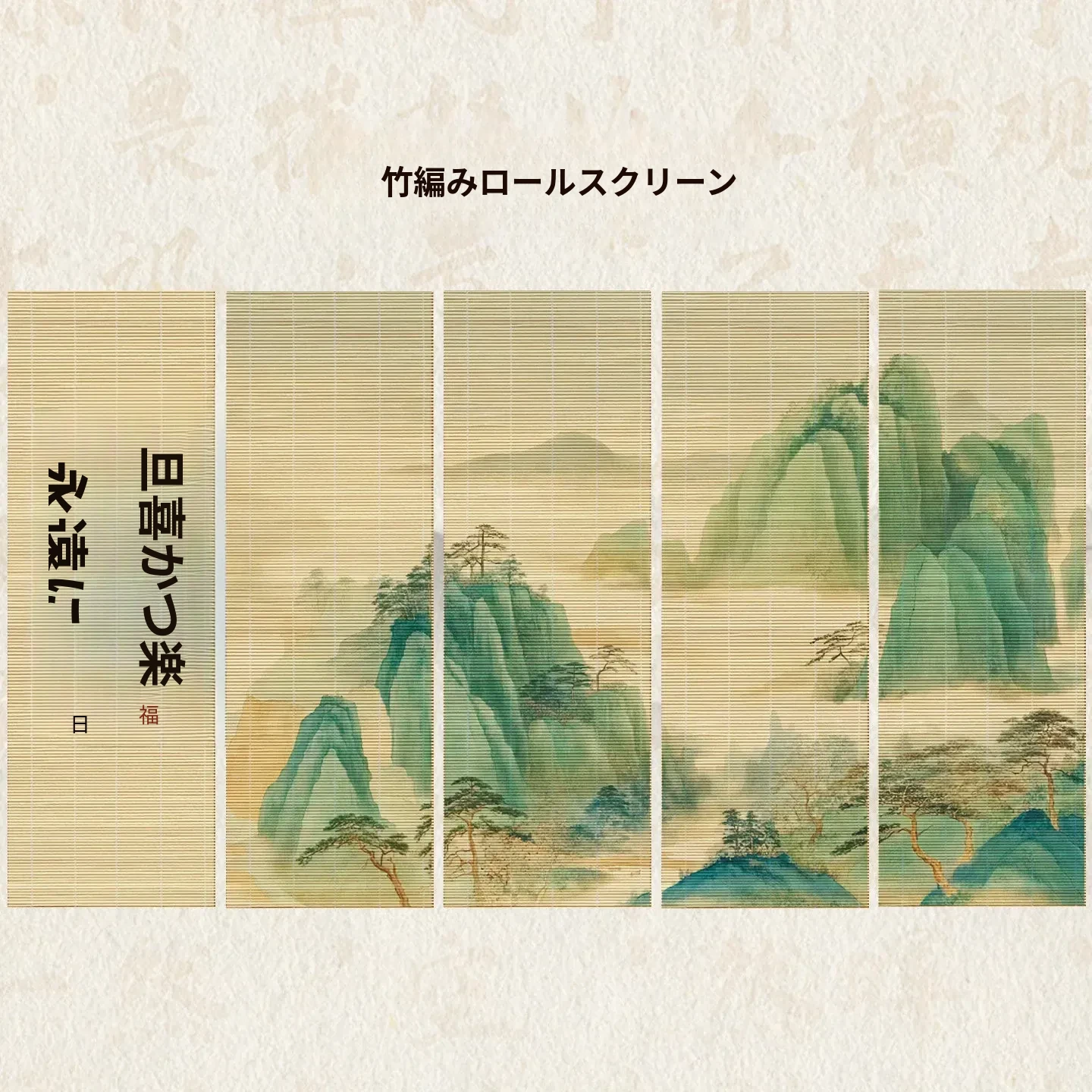 雲岫嘉楽図竹編巻き簾150*50cm5点セット