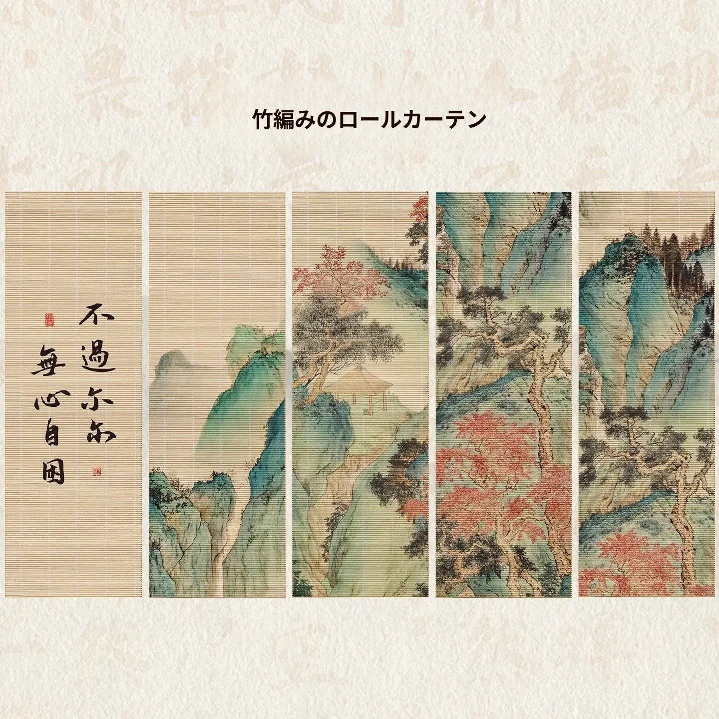 雲岫嘉楽図竹編巻き簾100*50cm5点セット