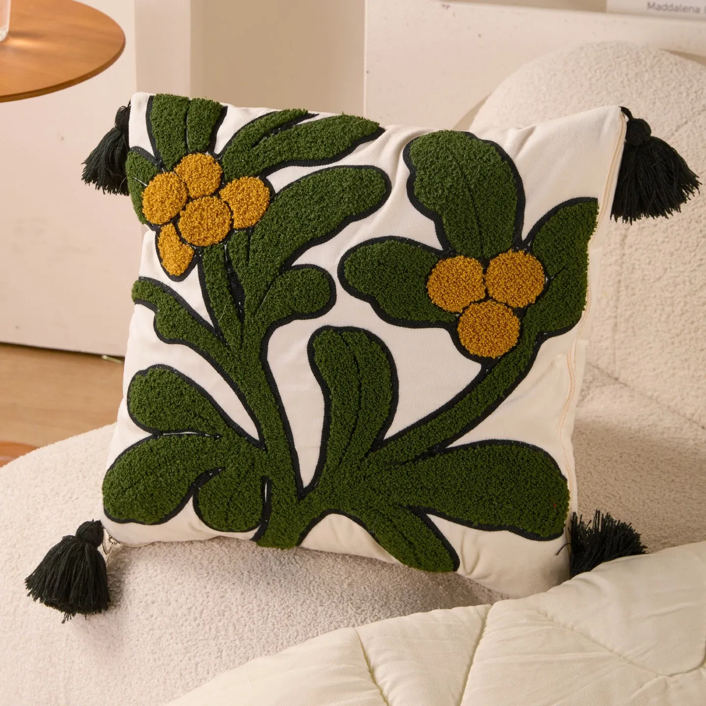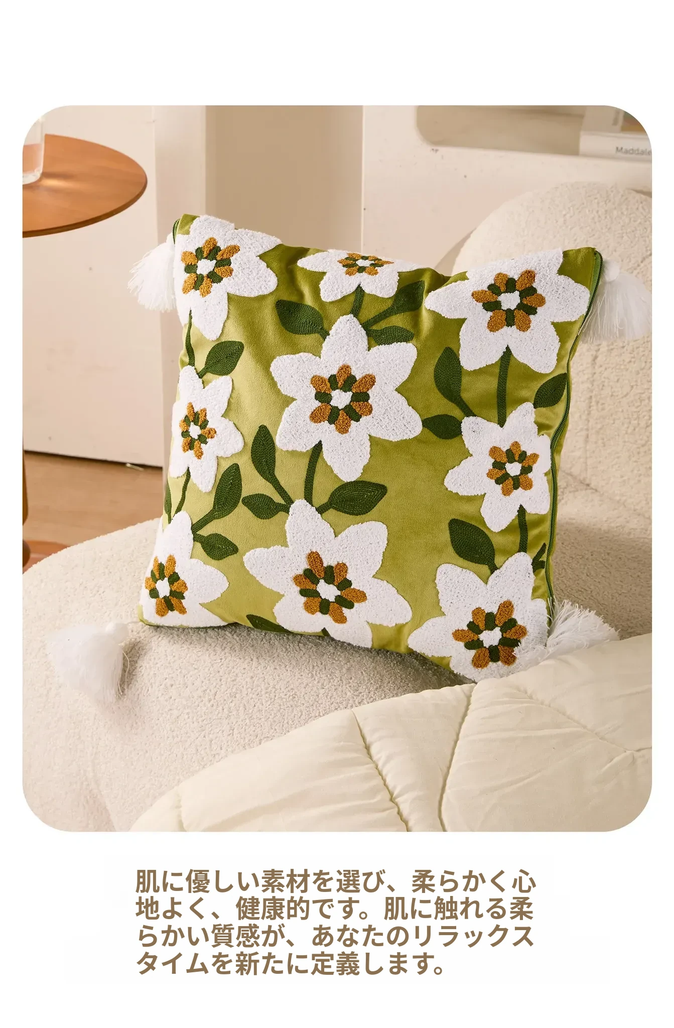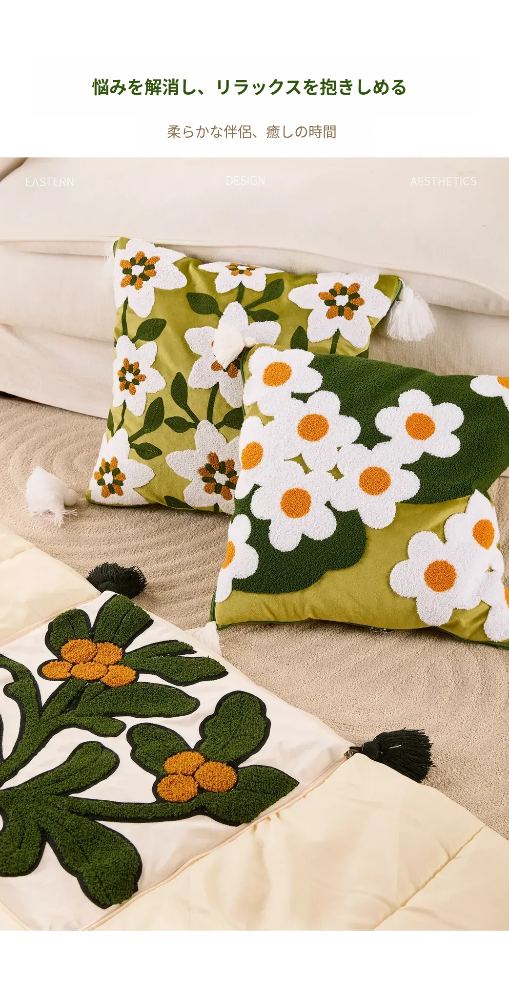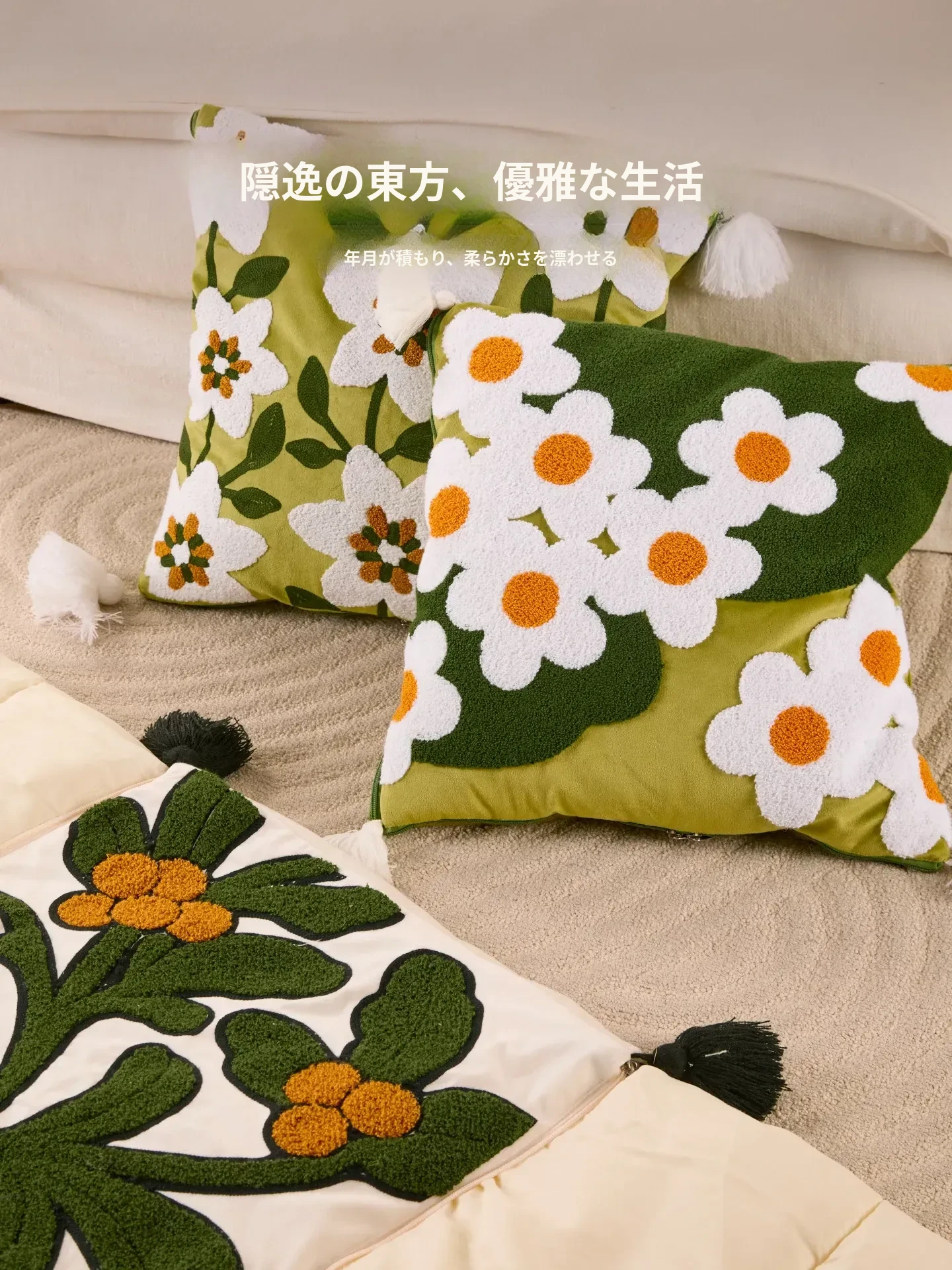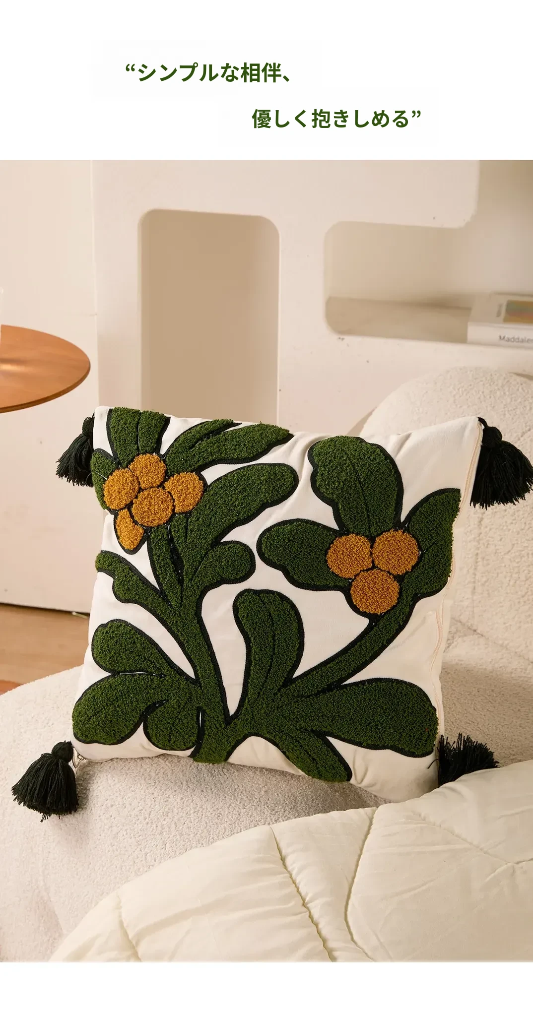 墨緑の花影クッションカバー