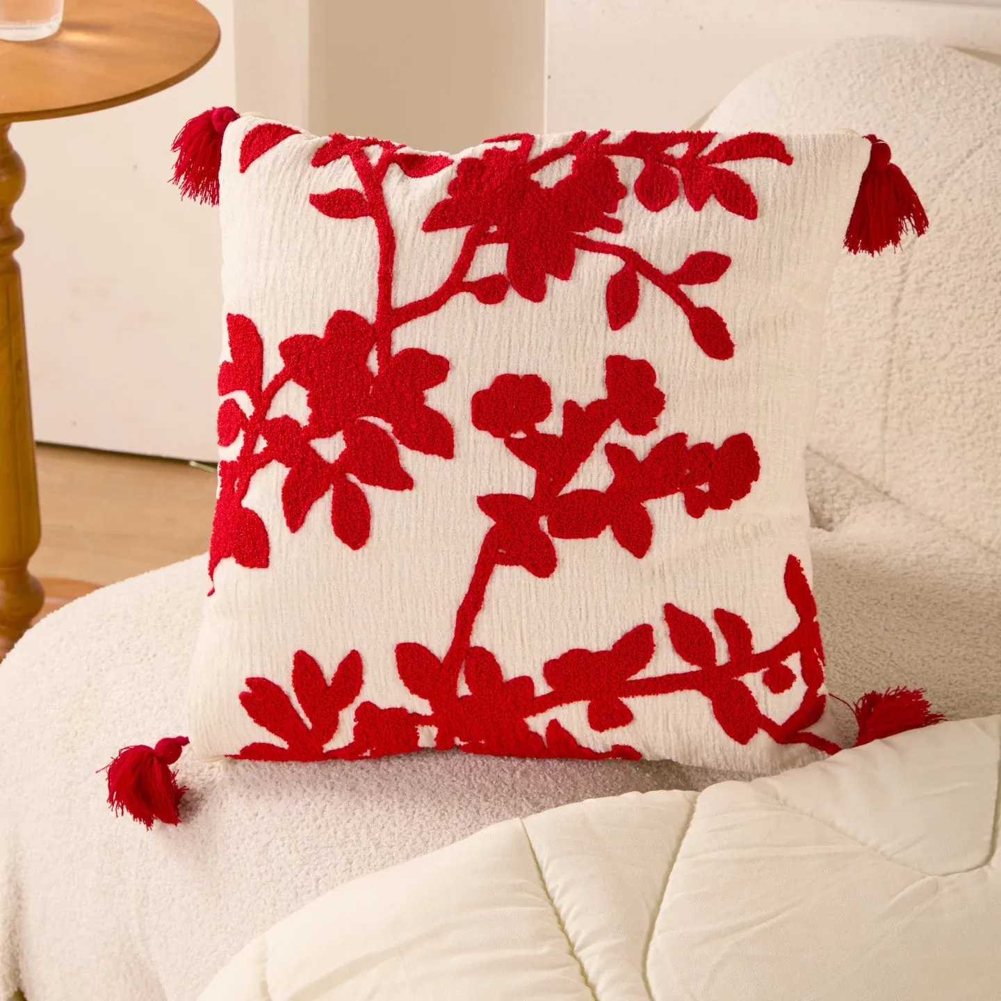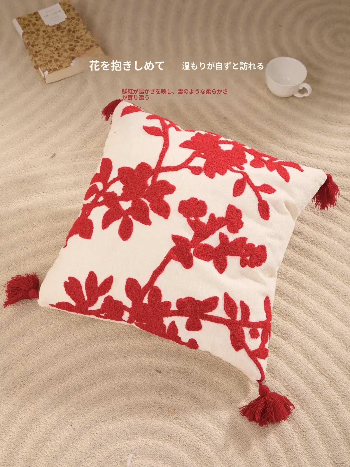 赤いフリースクッションカバー