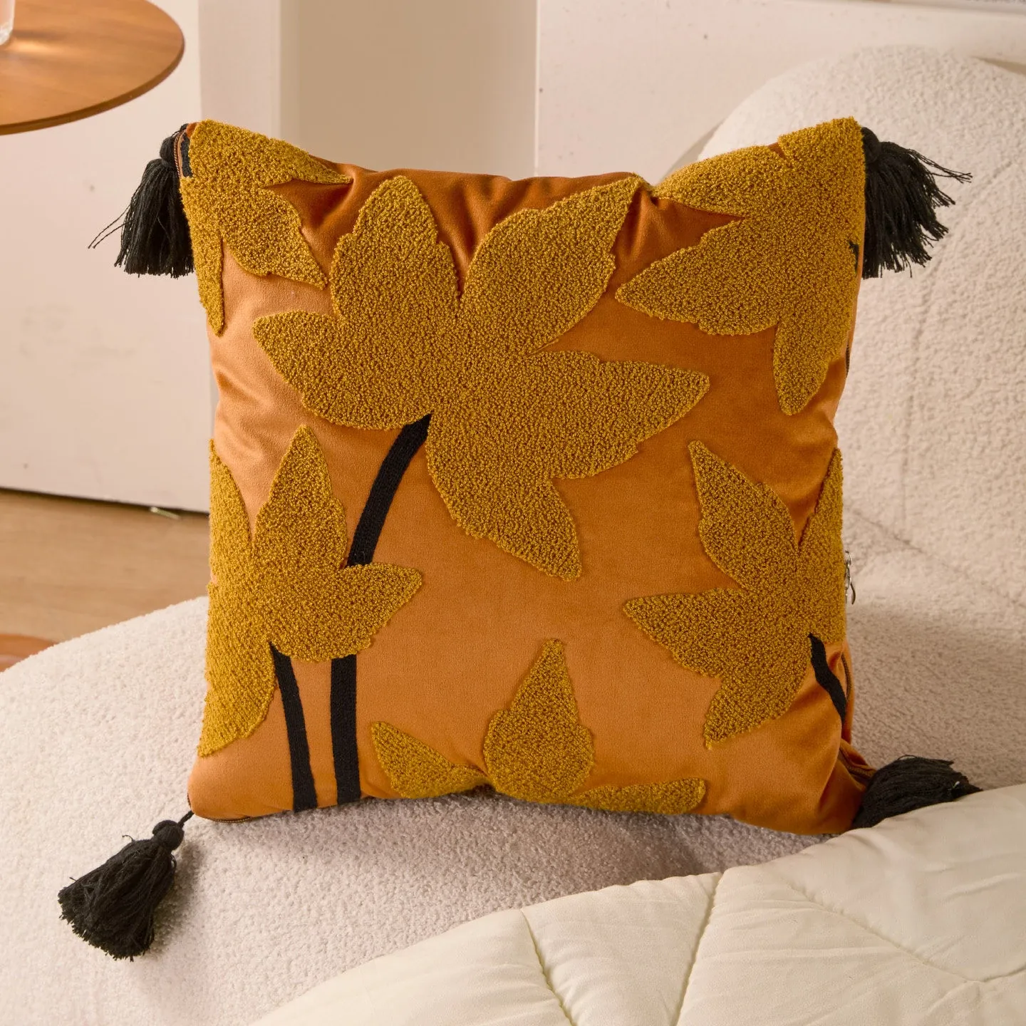 暖かいオレンジの葉の言葉クッションカバー