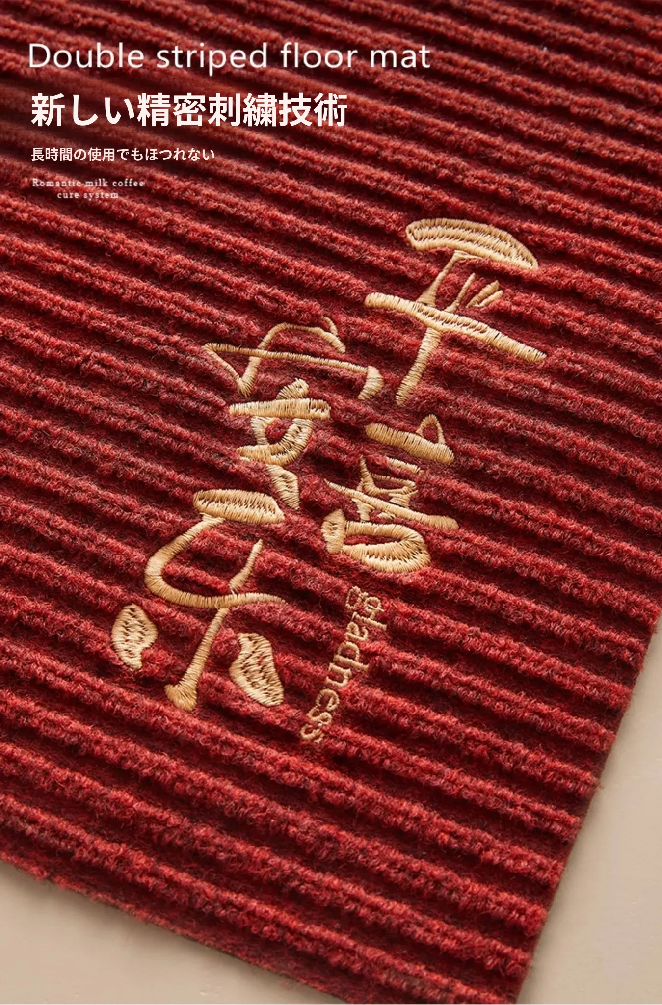 幸運出入平安の赤いダブルストライプ刺繍マット